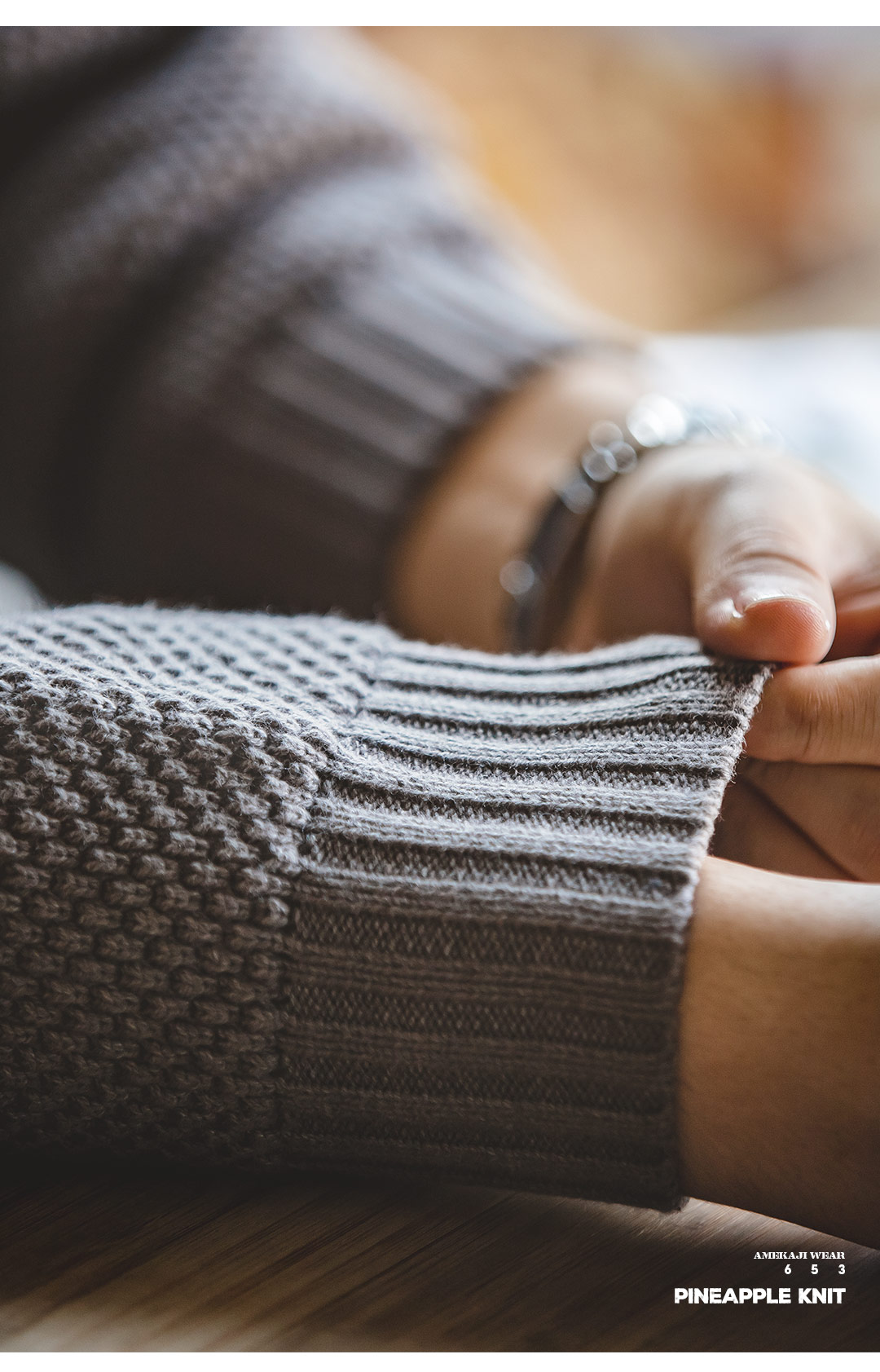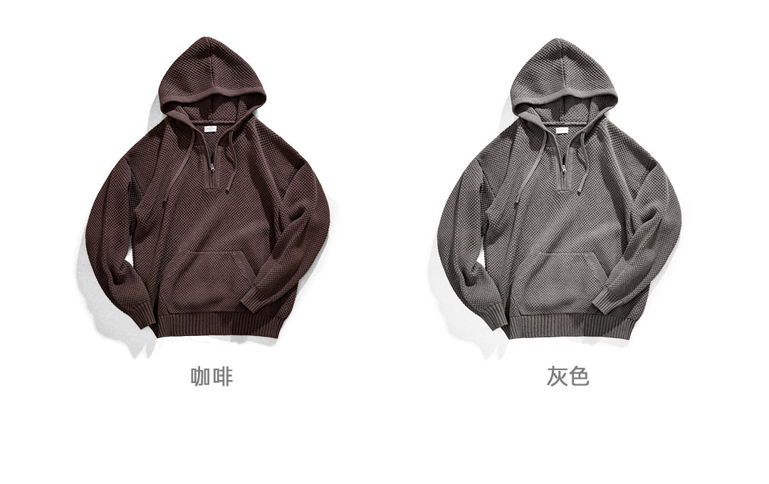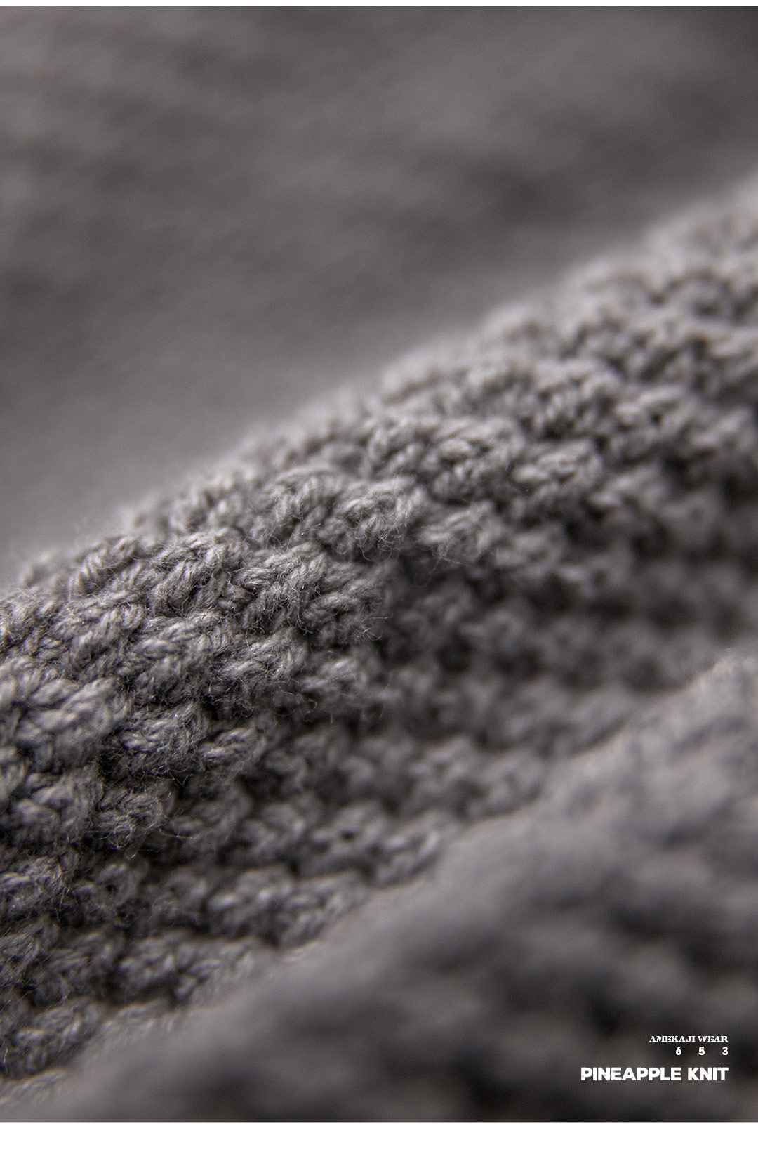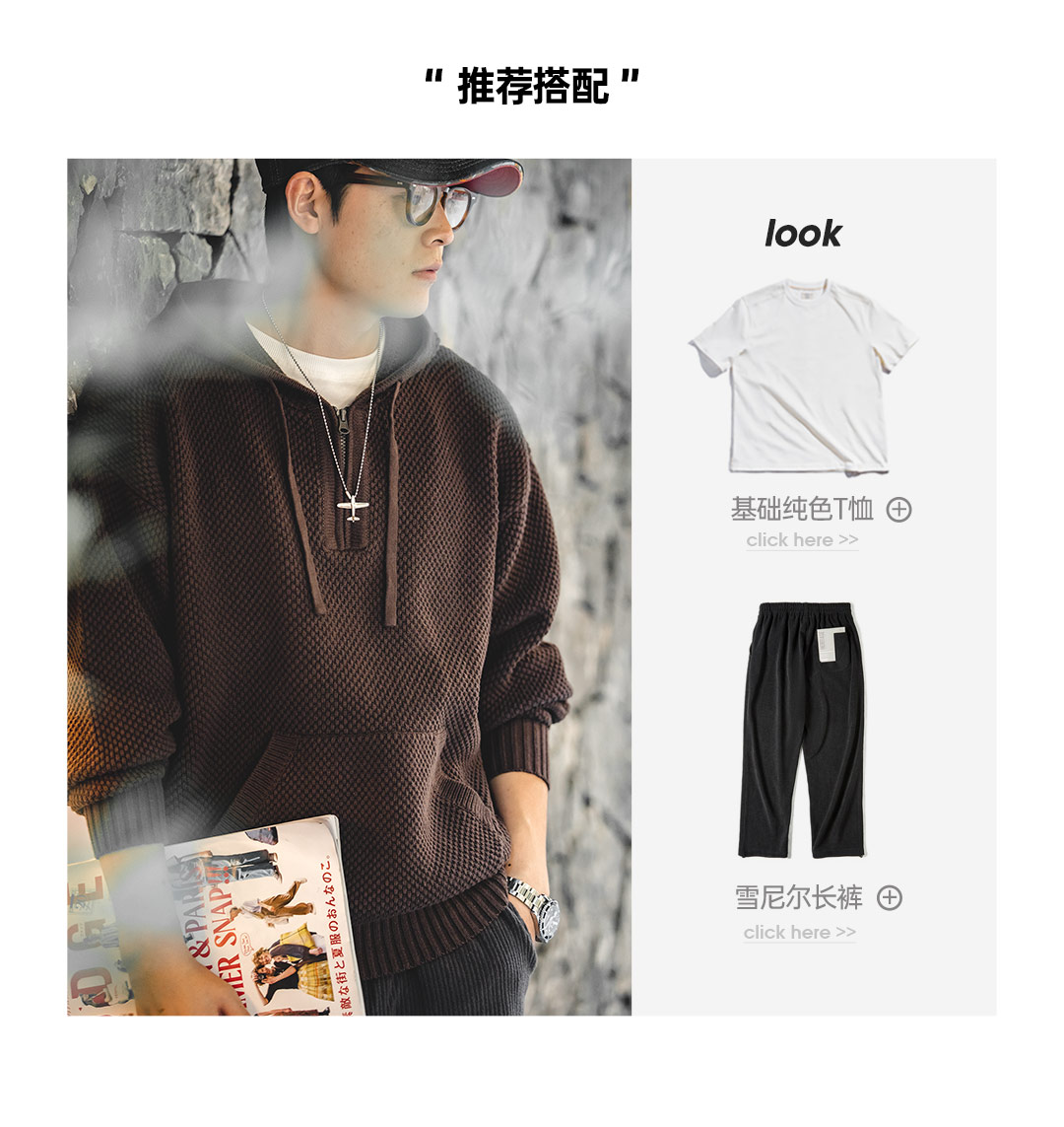 工装优选 美式休闲半拉链菠萝纹针织衫连帽立体加厚套头毛衣男秋