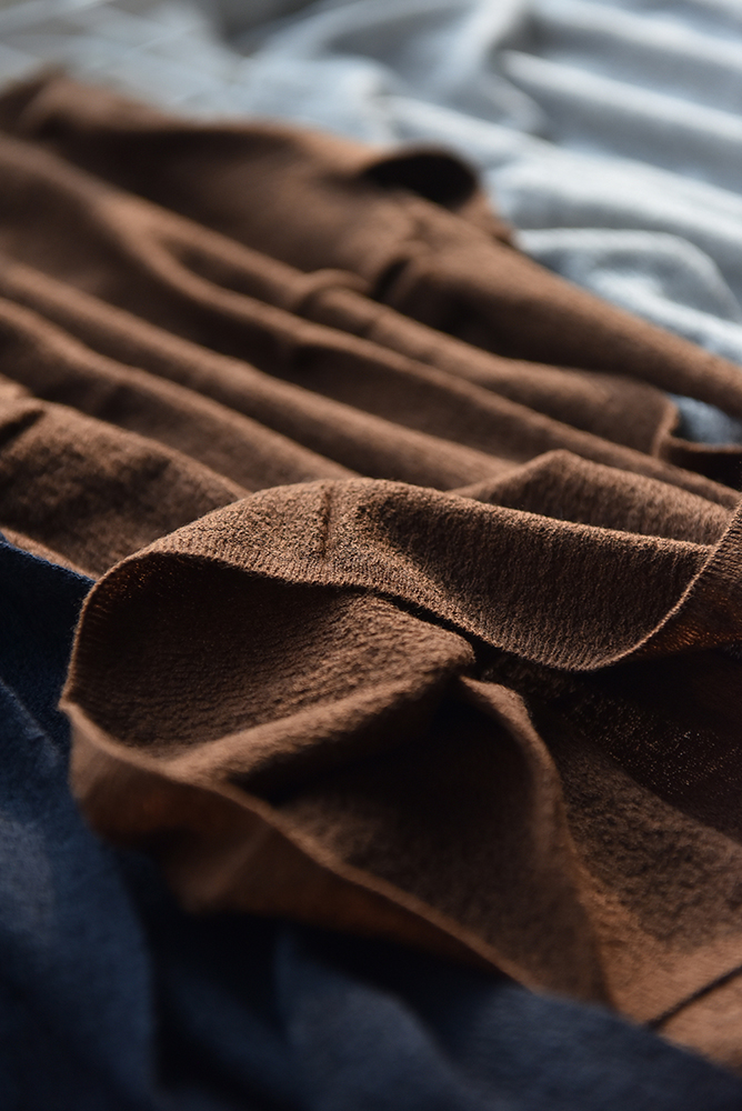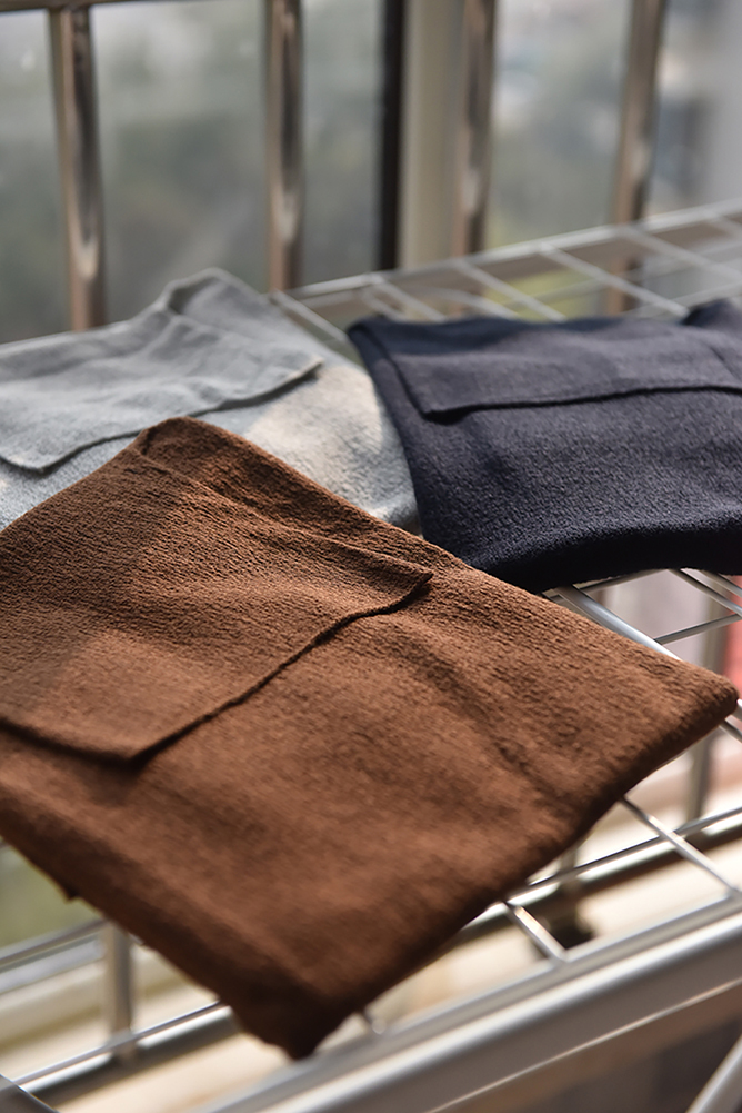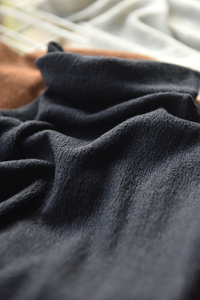 肌理效果主要是由不同的针织结构决定,而实现这些结构,需要使用不同类型的大型进口针织机器,从这一点看,也知道工厂的毛织实力和其考究程度。