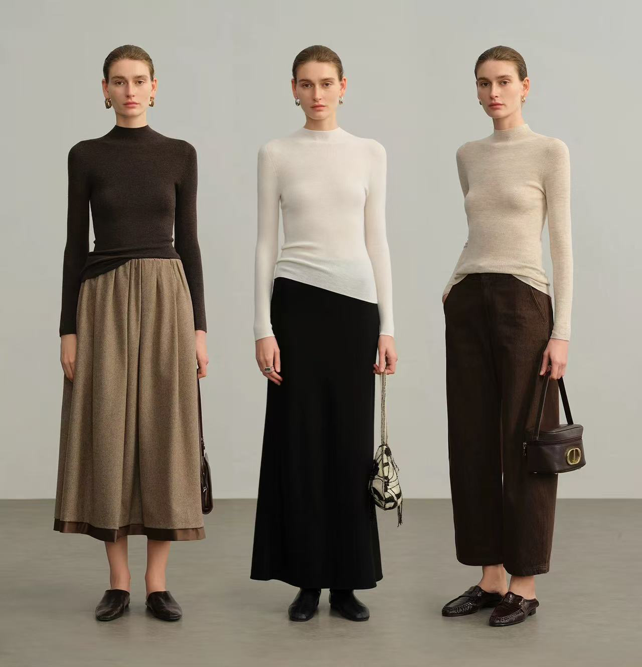 从版型上来说,都是属于既修身又不裹身的版型,如果之前收到了一字领和水袖的姑娘,肯定懂我说的感觉,既能完美呈现曼妙的线条感,又不给肌肤造成任何负担,上身好像没穿一样,轻盈保暖,这就是完美的“裸肤感”!