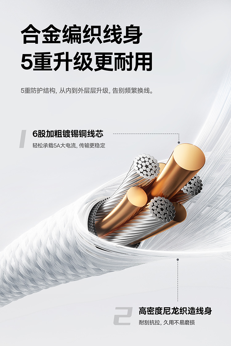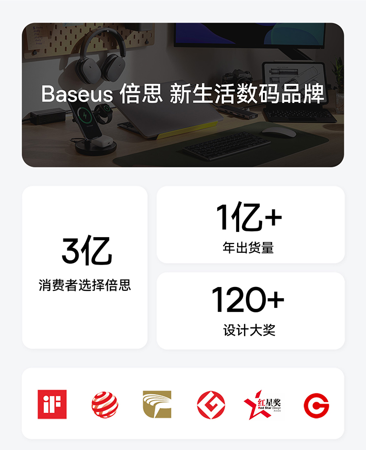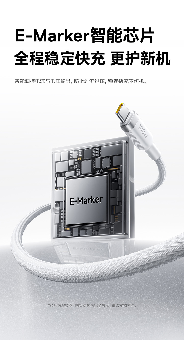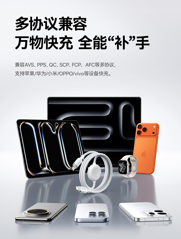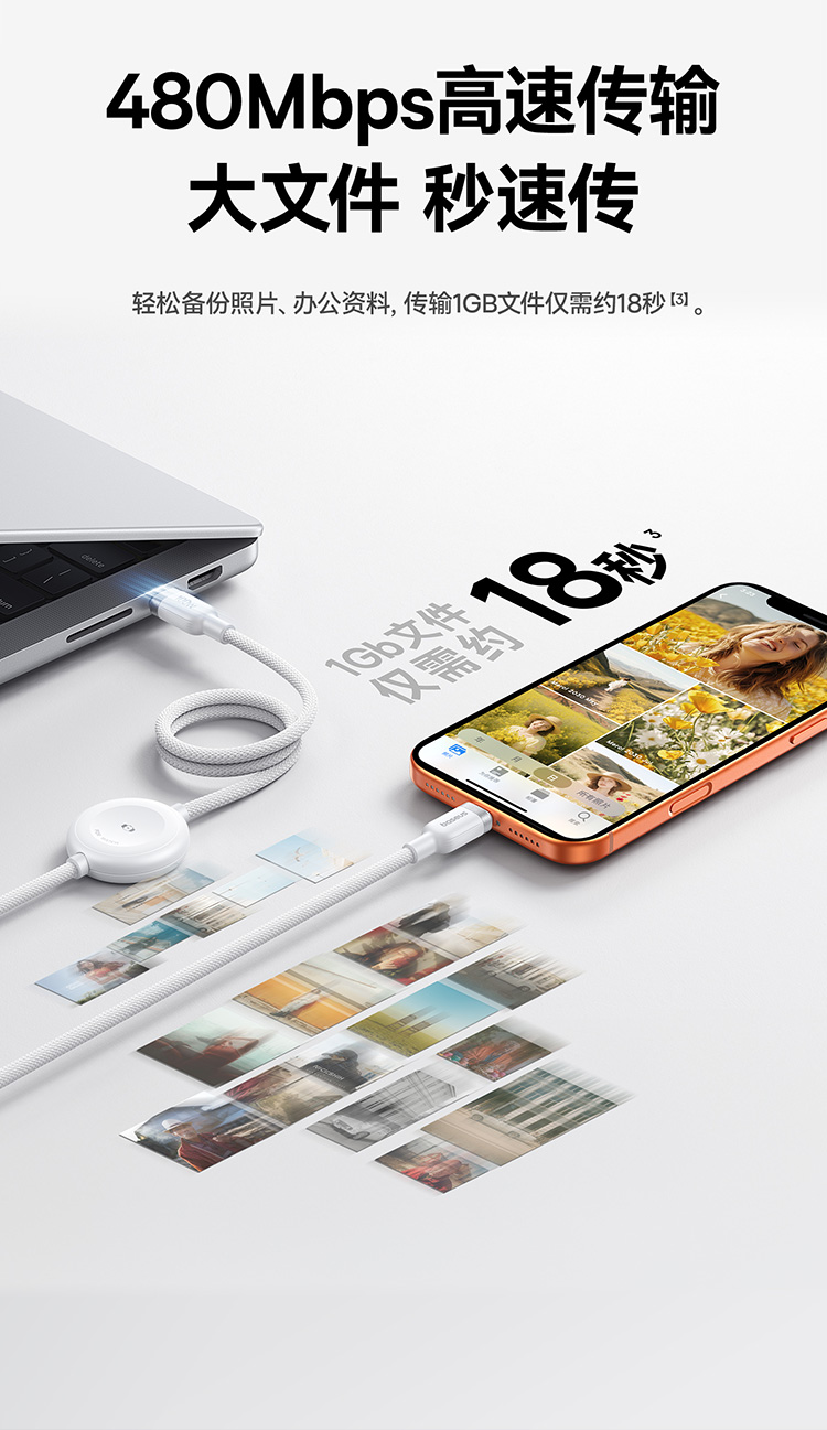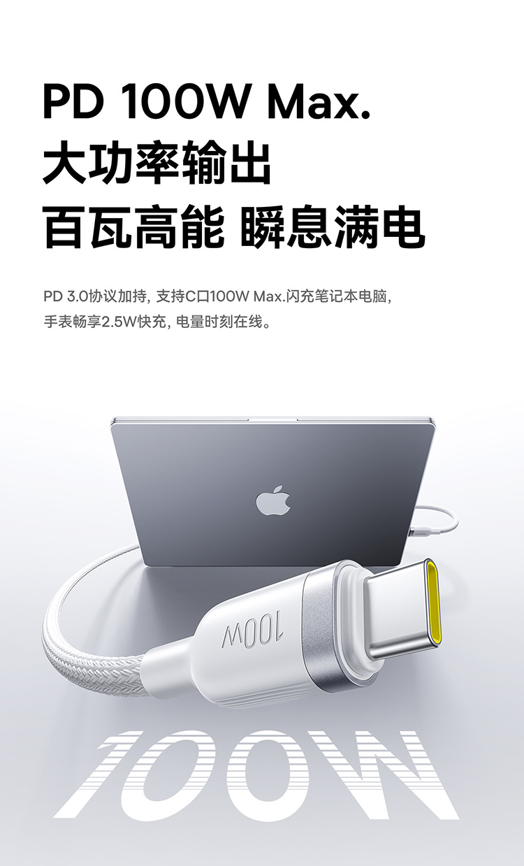 倍思 闪速系列4 一拖二快充充电线 USB-C to USB-C + 手表 100W