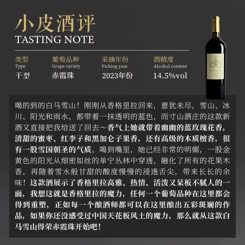 【白马雪山 纯净悠长】四川得荣赤霞珠干红葡萄酒750ml 2023年