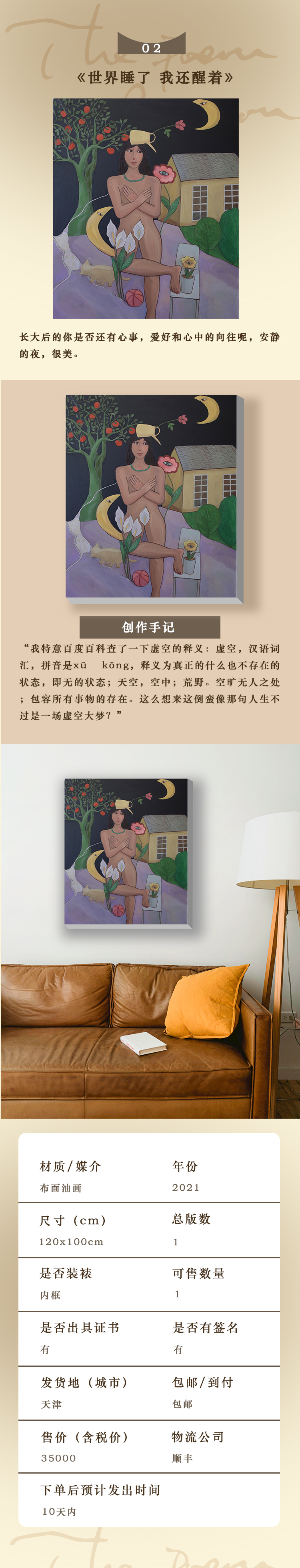 由于艺术品特殊性,本商品非质量问题不退不换