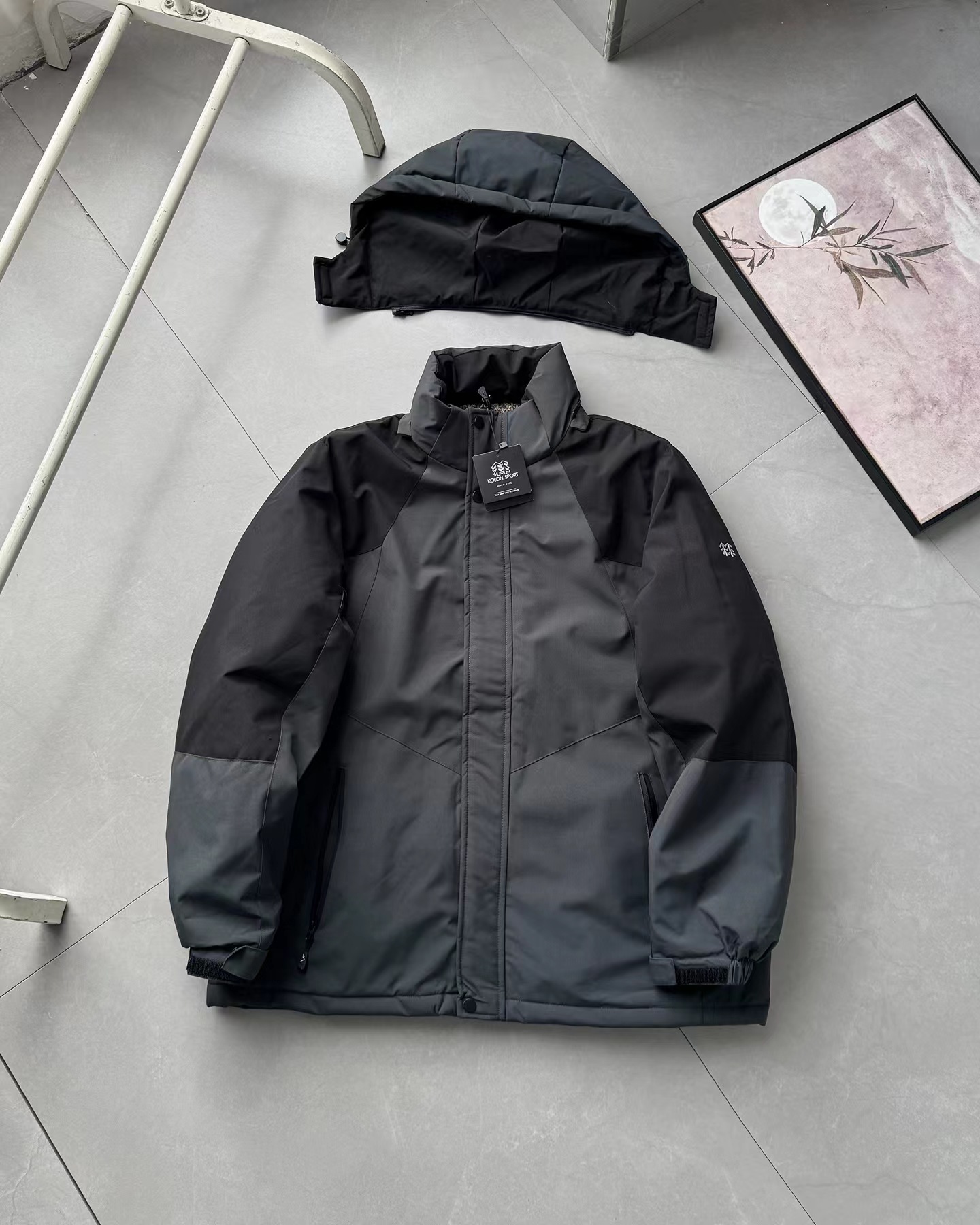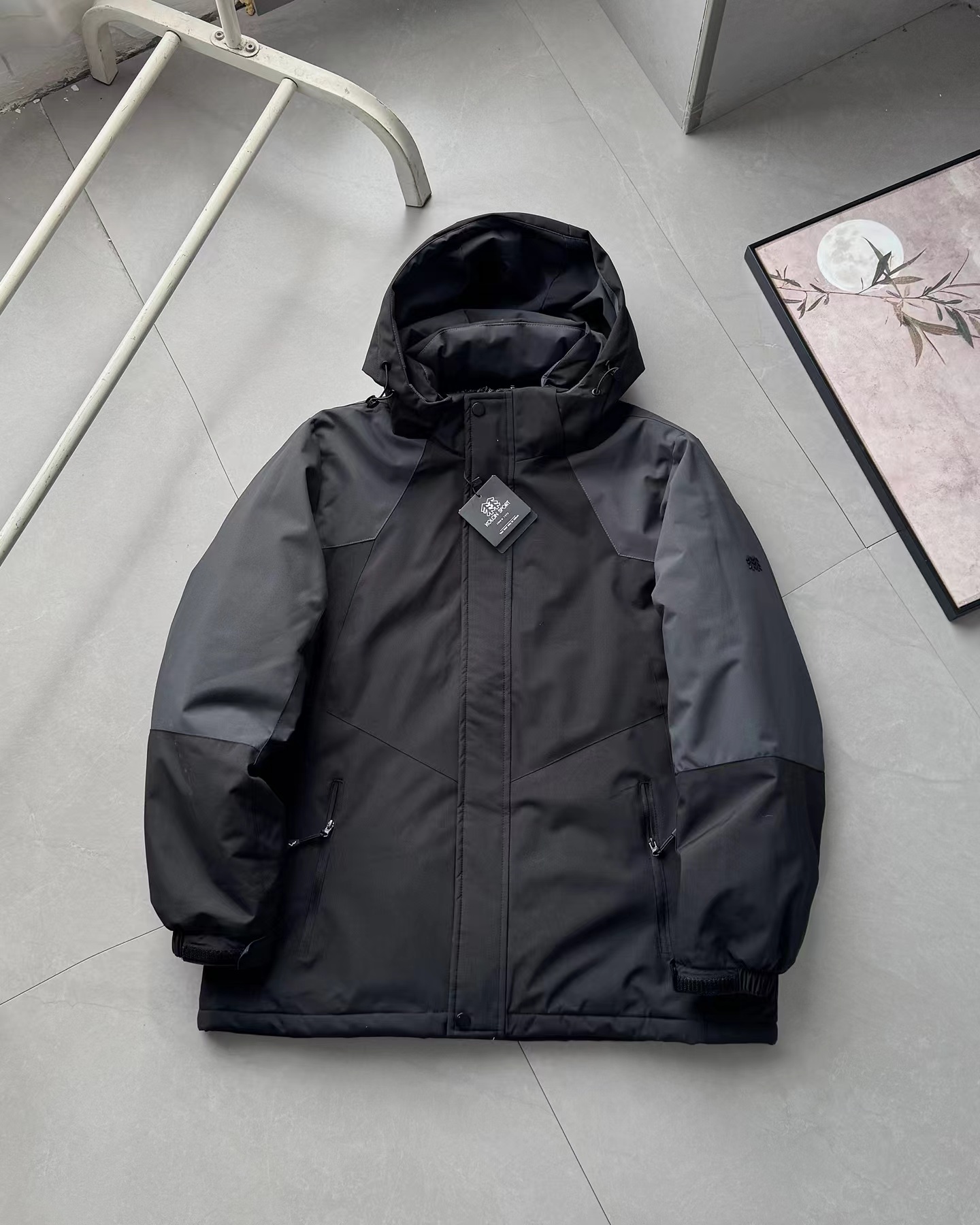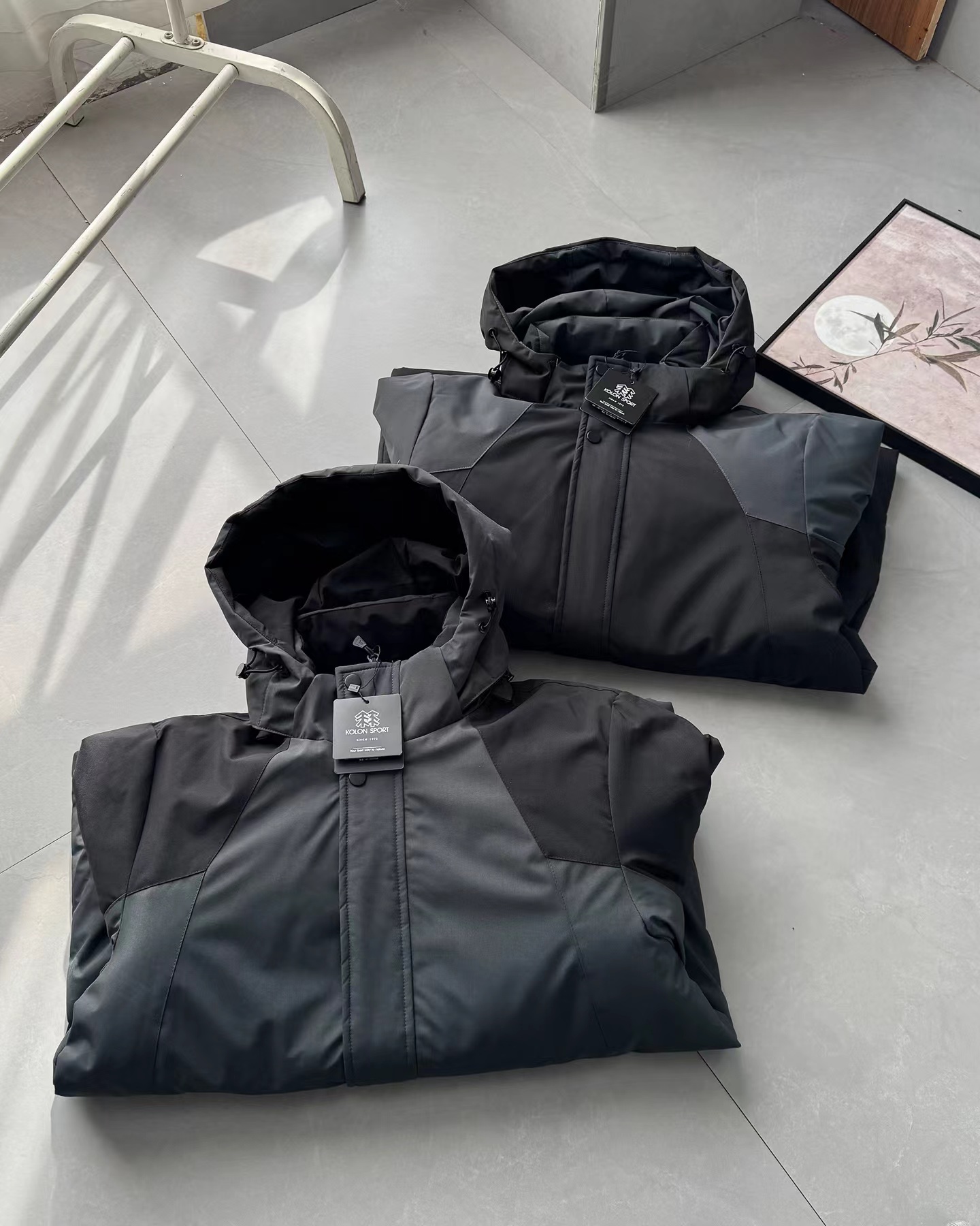 2025年新男款连帽棉衣!帽子可拆卸!主推爆品,又是一款非常好看的棉衣,算是在寒冷冬季给大家送来的温暖,这款真的很好看,版型采用修身立体剪裁设计,上身不再臃肿,很显身材!不分年龄胖瘦 谁穿谁好看!撞色拼接设计,更加潮流年轻时尚!内里的填充用料才用了100天然羽绒棉,这种填充物是由不同规格的超细纤维和羽绒经过特殊工艺生产制造,具有轻薄、手感细腻、柔软、保温好、洗后不易变形,不会透丝!不管蓬松度还是保暖性都是首屈 一指的,大家可以看看实拍图 蓬松度都能看得到!中度防水/ 做工精良/细节到位!兼顾实用美观!袖口防风设计!!实用性满分的一款棉服外套!