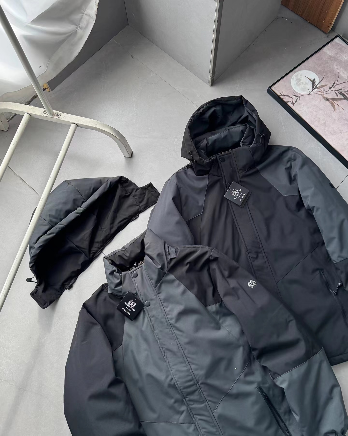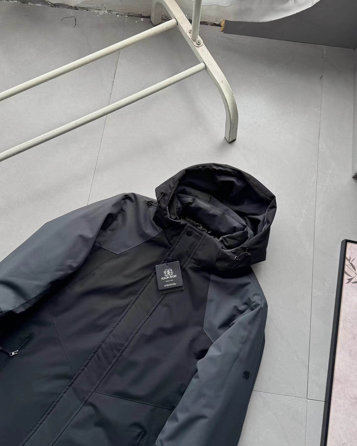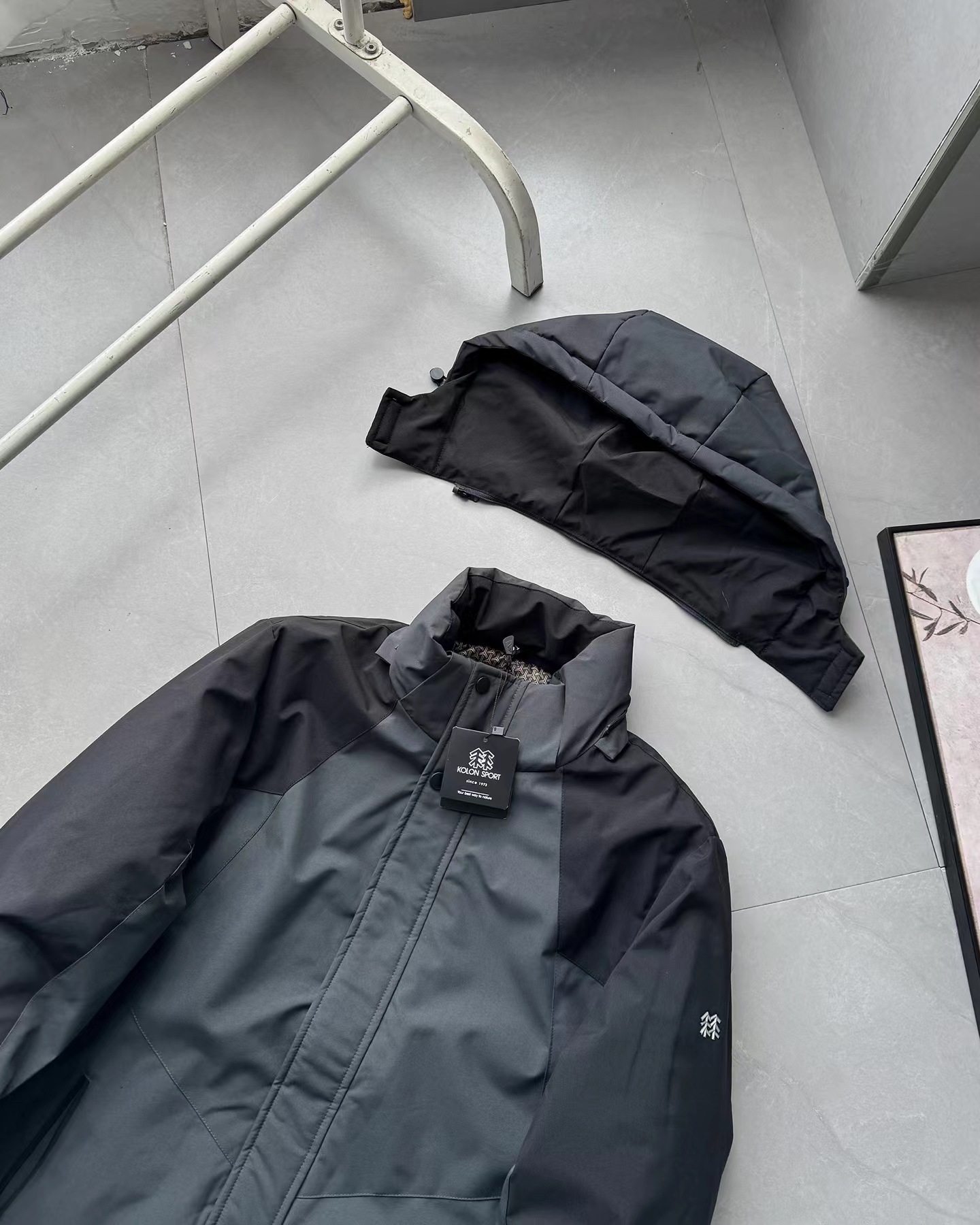 2025年新男款连帽棉衣!帽子可拆卸!主推爆品,又是一款非常好看的棉衣,算是在寒冷冬季给大家送来的温暖,这款真的很好看,版型采用修身立体剪裁设计,上身不再臃肿,很显身材!不分年龄胖瘦 谁穿谁好看!撞色拼接设计,更加潮流年轻时尚!内里的填充用料才用了100天然羽绒棉,这种填充物是由不同规格的超细纤维和羽绒经过特殊工艺生产制造,具有轻薄、手感细腻、柔软、保温好、洗后不易变形,不会透丝!不管蓬松度还是保暖性都是首屈 一指的,大家可以看看实拍图 蓬松度都能看得到!中度防水/ 做工精良/细节到位!兼顾实用美观!袖口防风设计!!实用性满分的一款棉服外套!