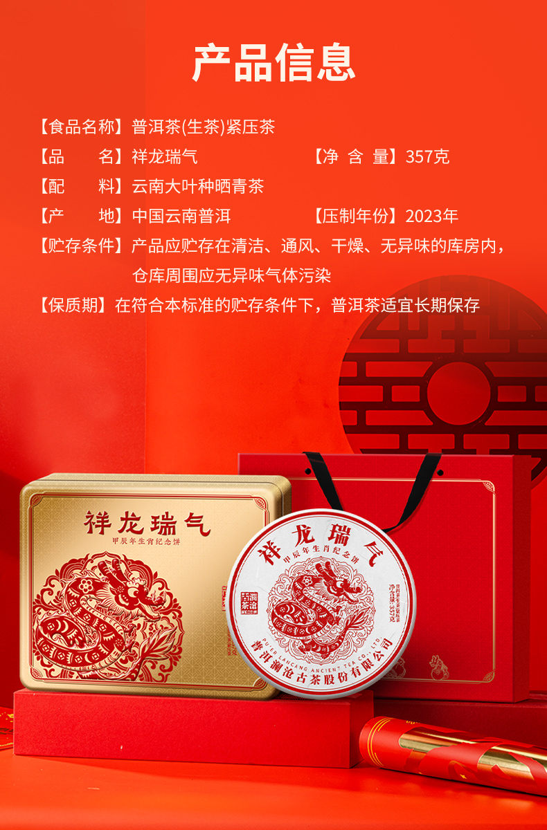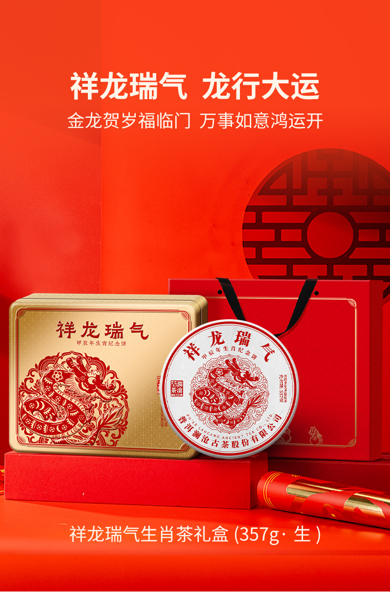 [生肖饼]澜沧古茶2024年祥龙瑞气普洱生茶357g