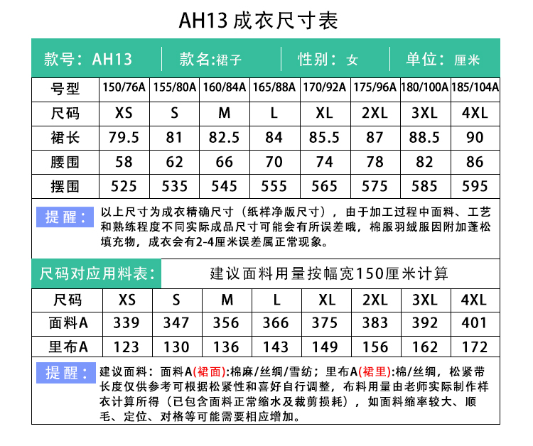 裁缝学苑AH13收腹高腰大摆半身裙纸样女装裙子样板图纸版型