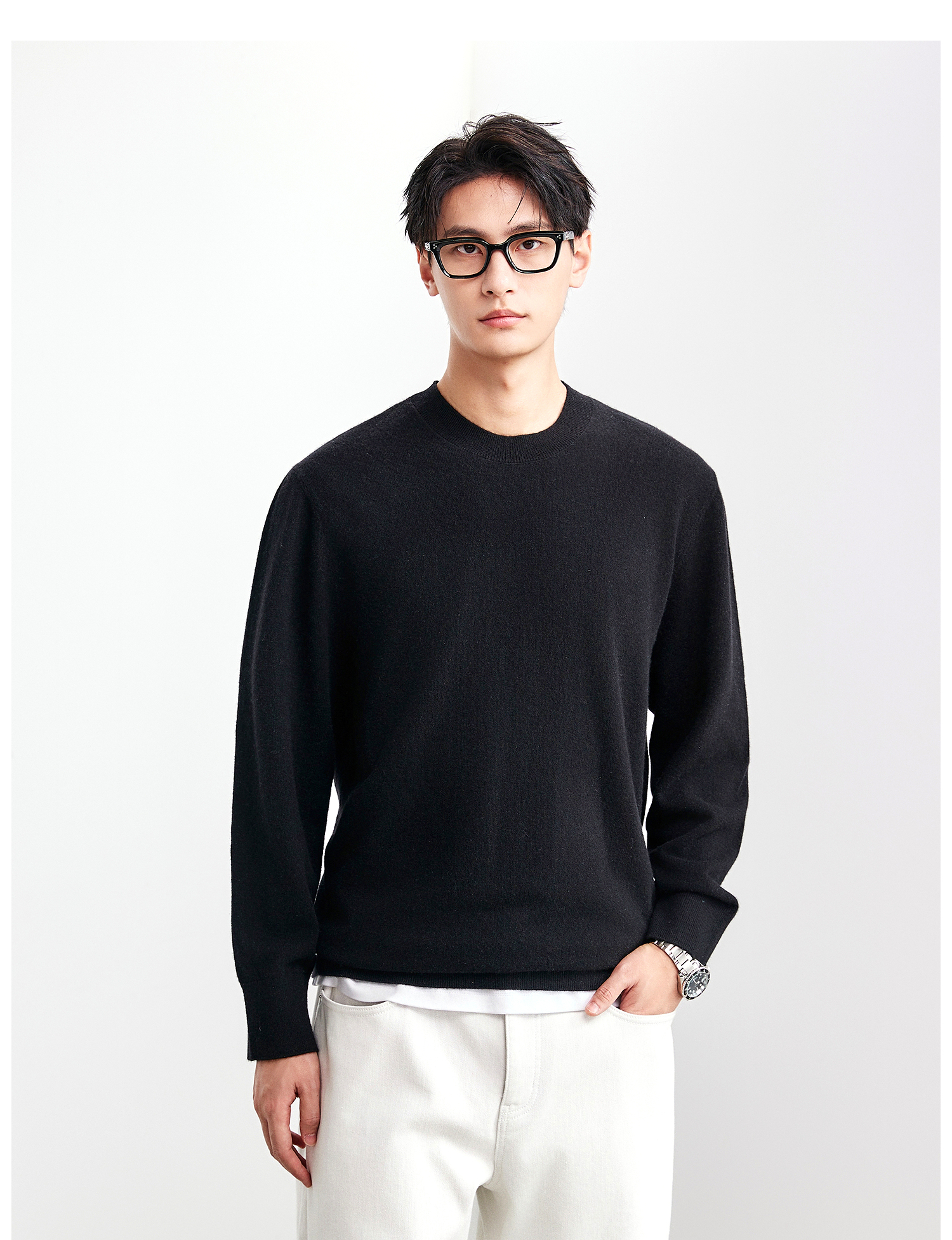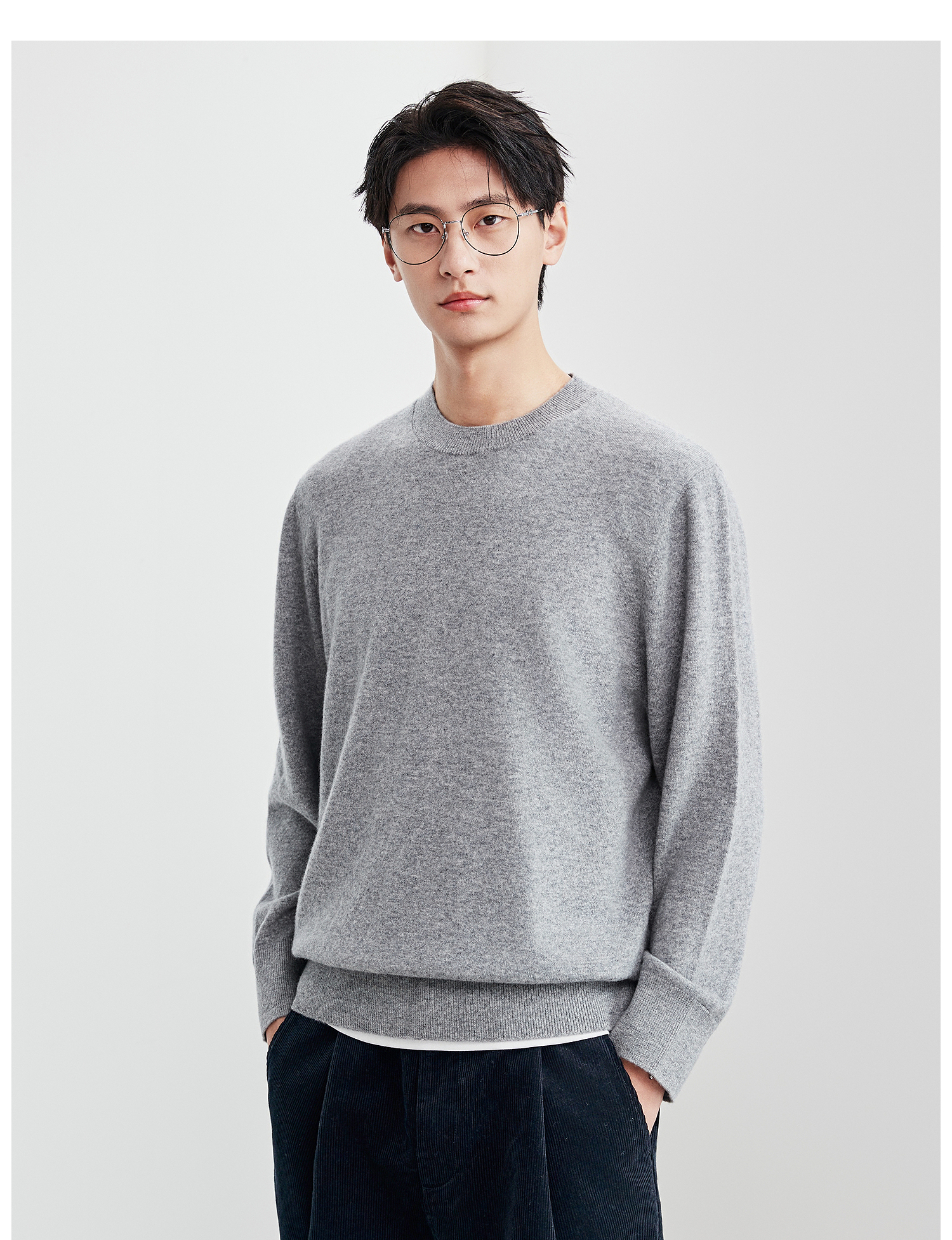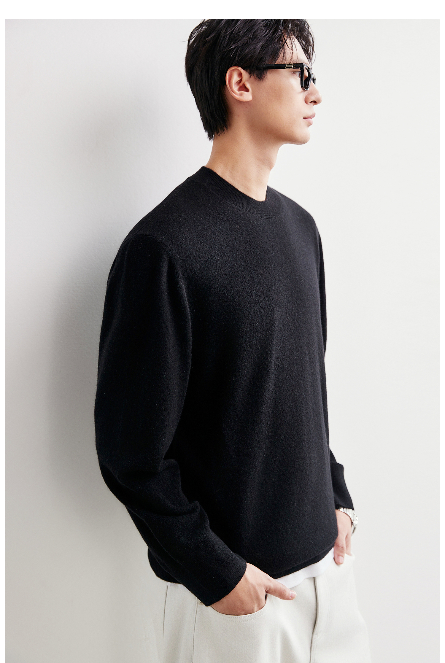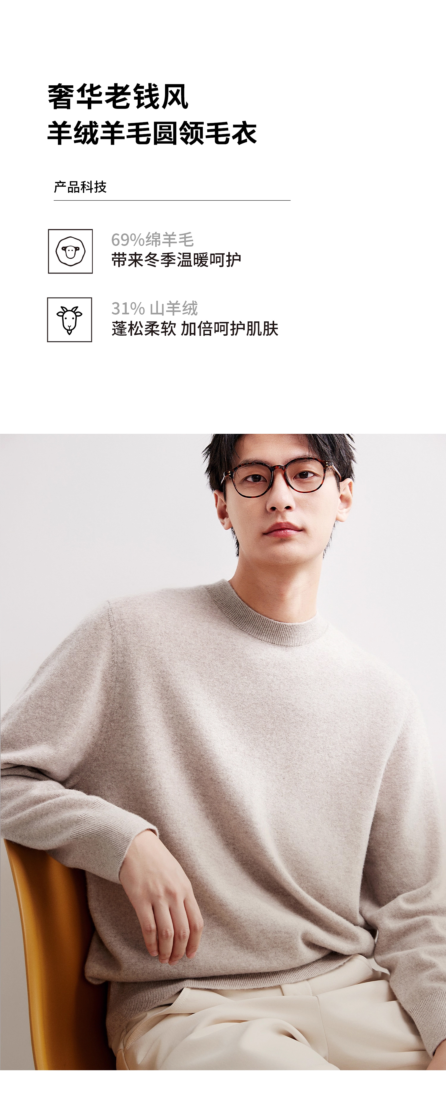 棉仓367826036-老钱风重磅美丽诺羊毛羊绒衫男 秋冬保暖针织圆领毛衣上衣