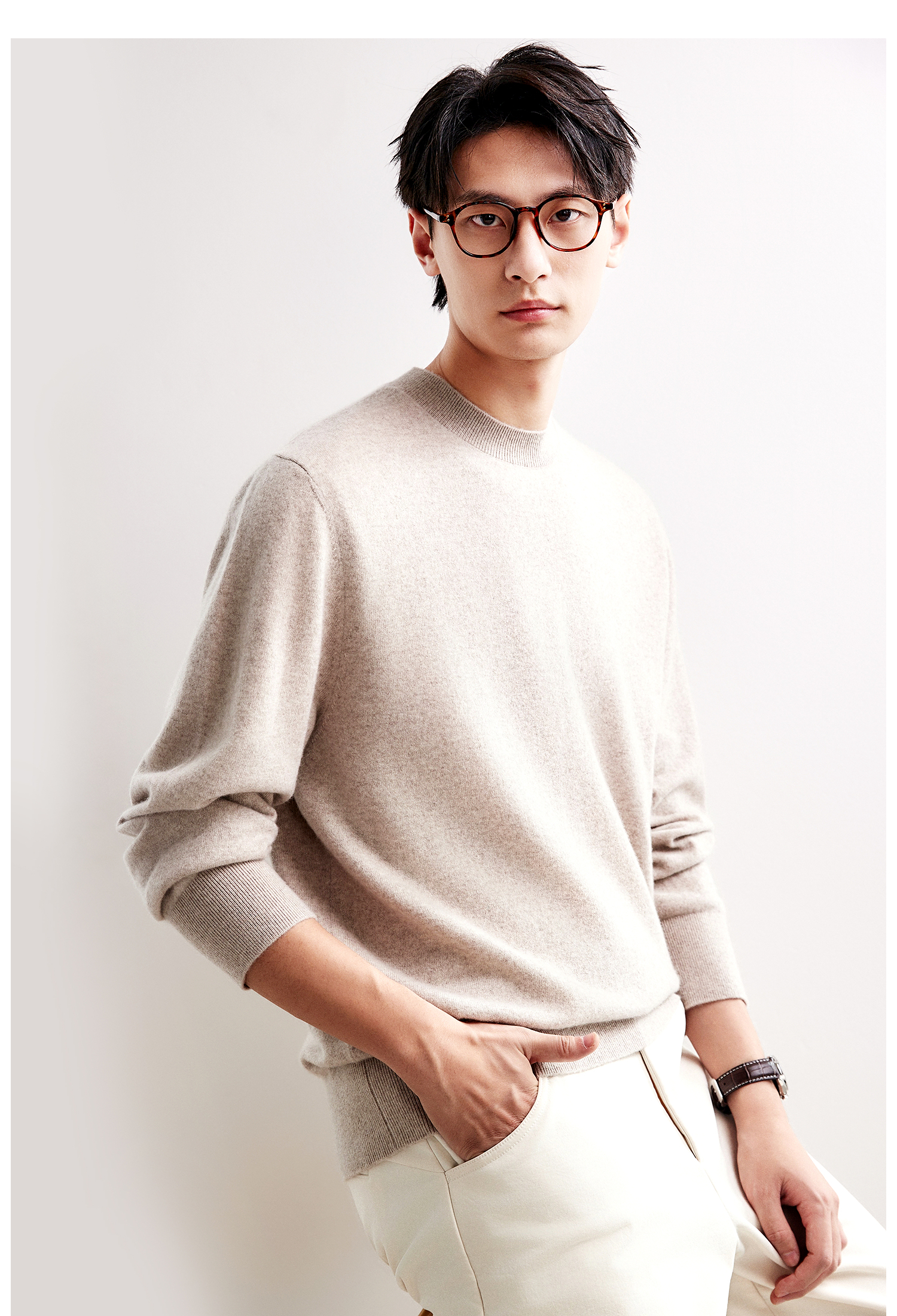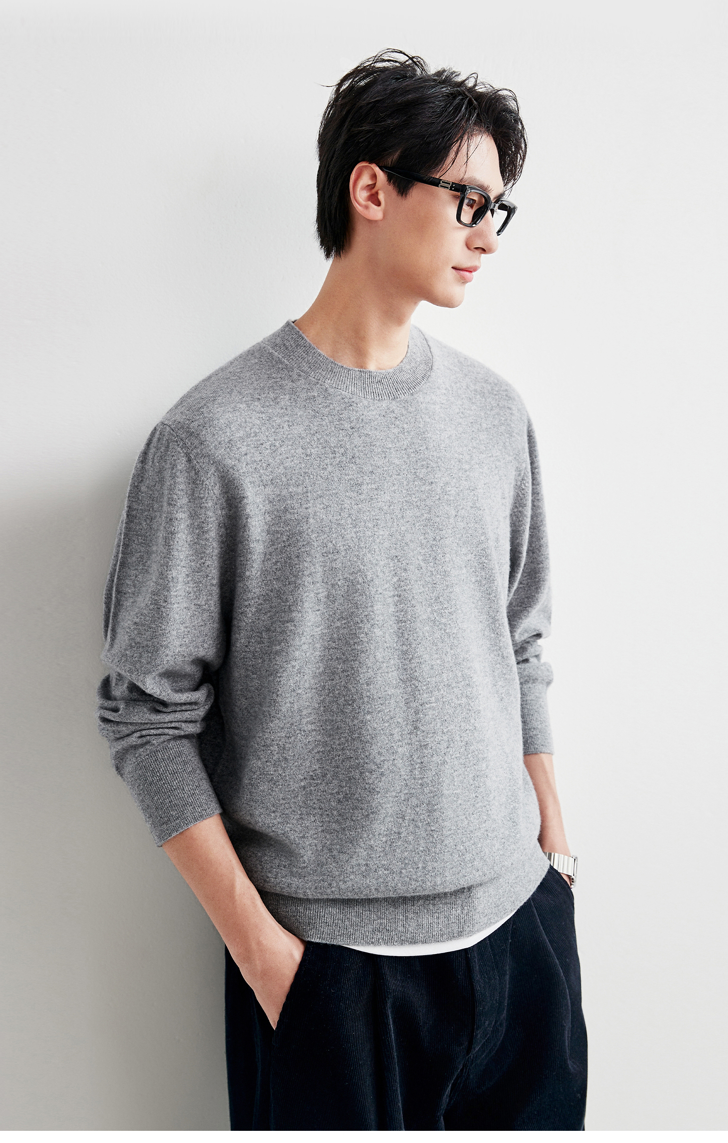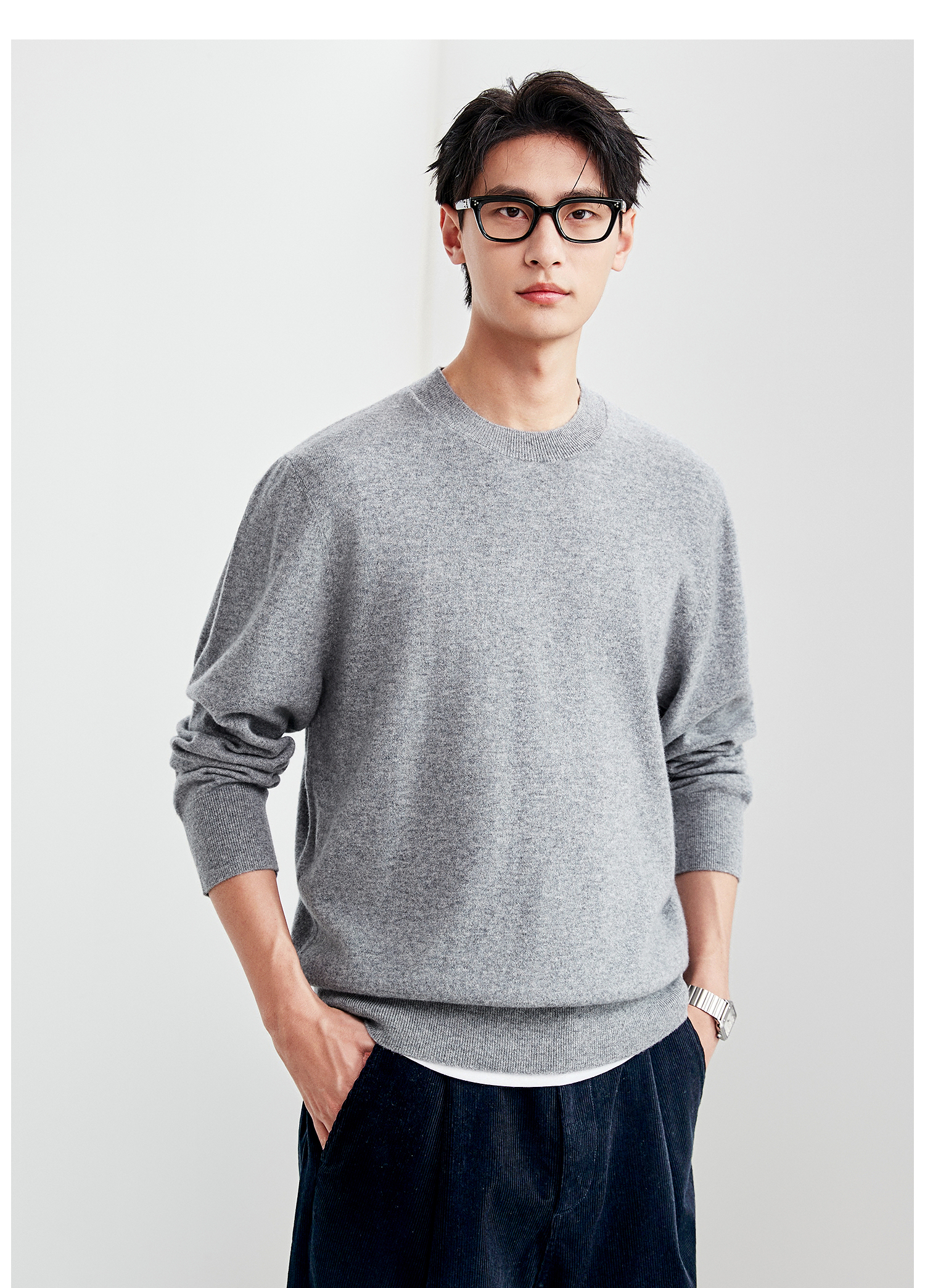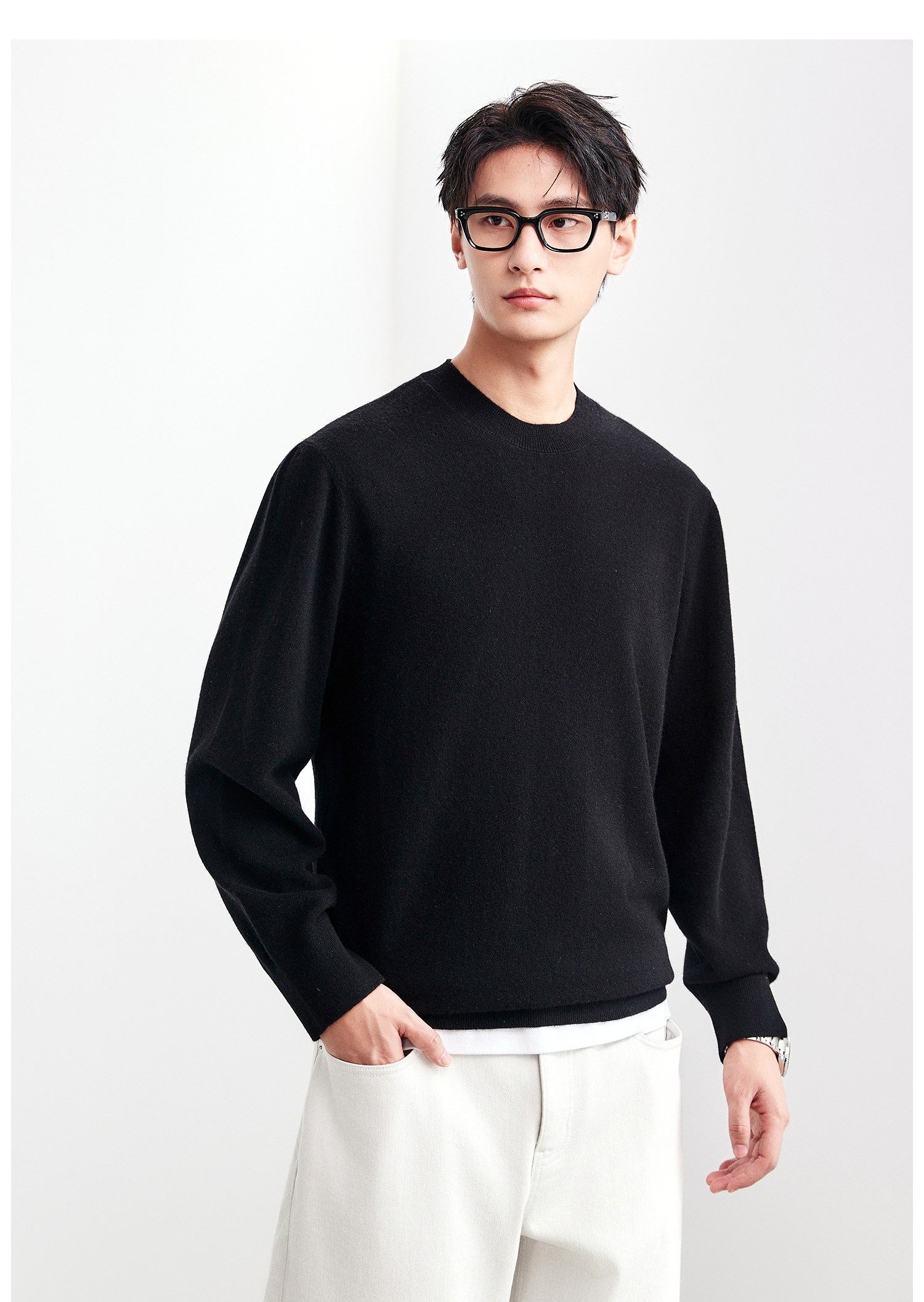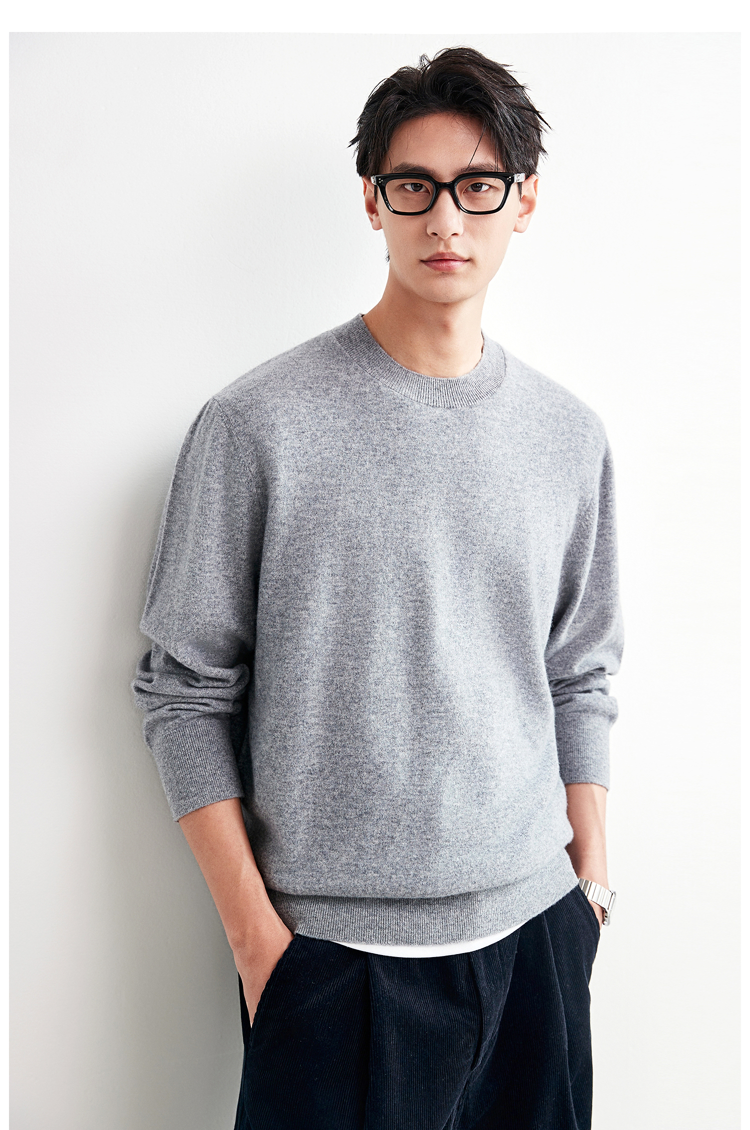棉仓367826036-老钱风重磅美丽诺羊毛羊绒衫男 秋冬保暖针织圆领毛衣上衣