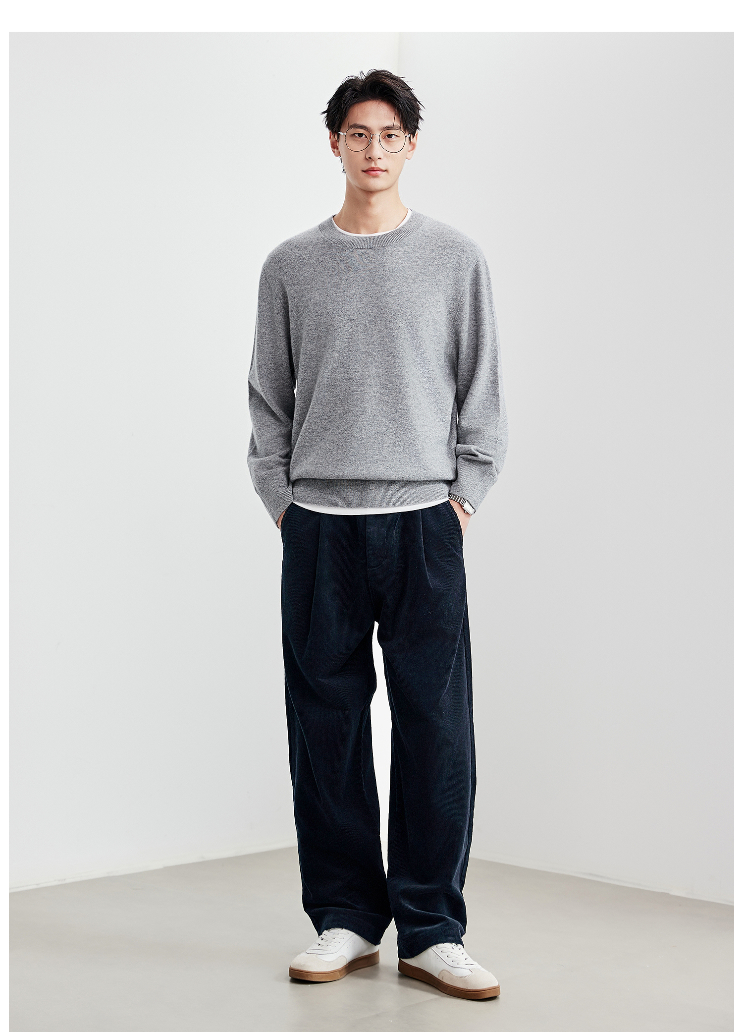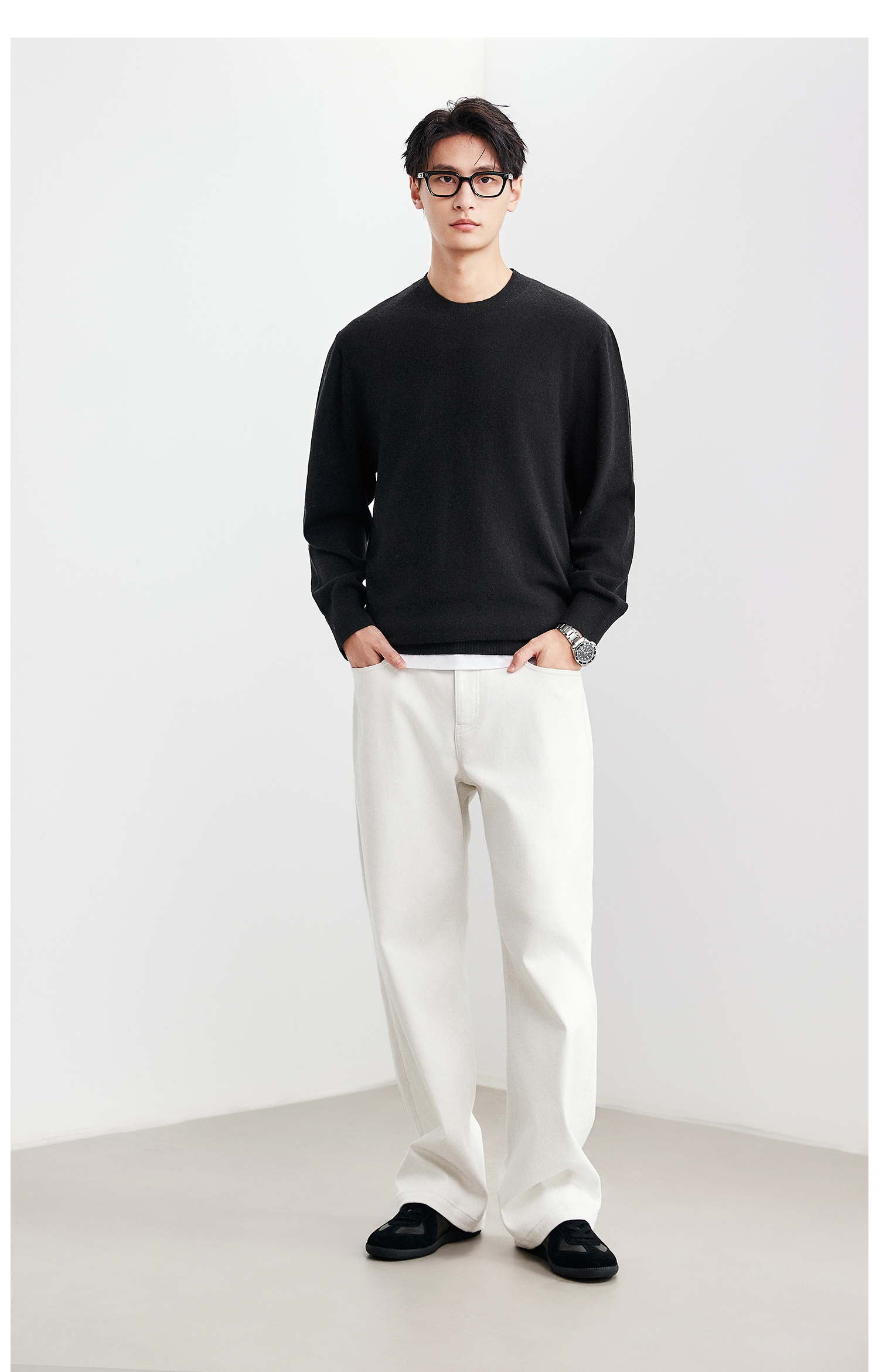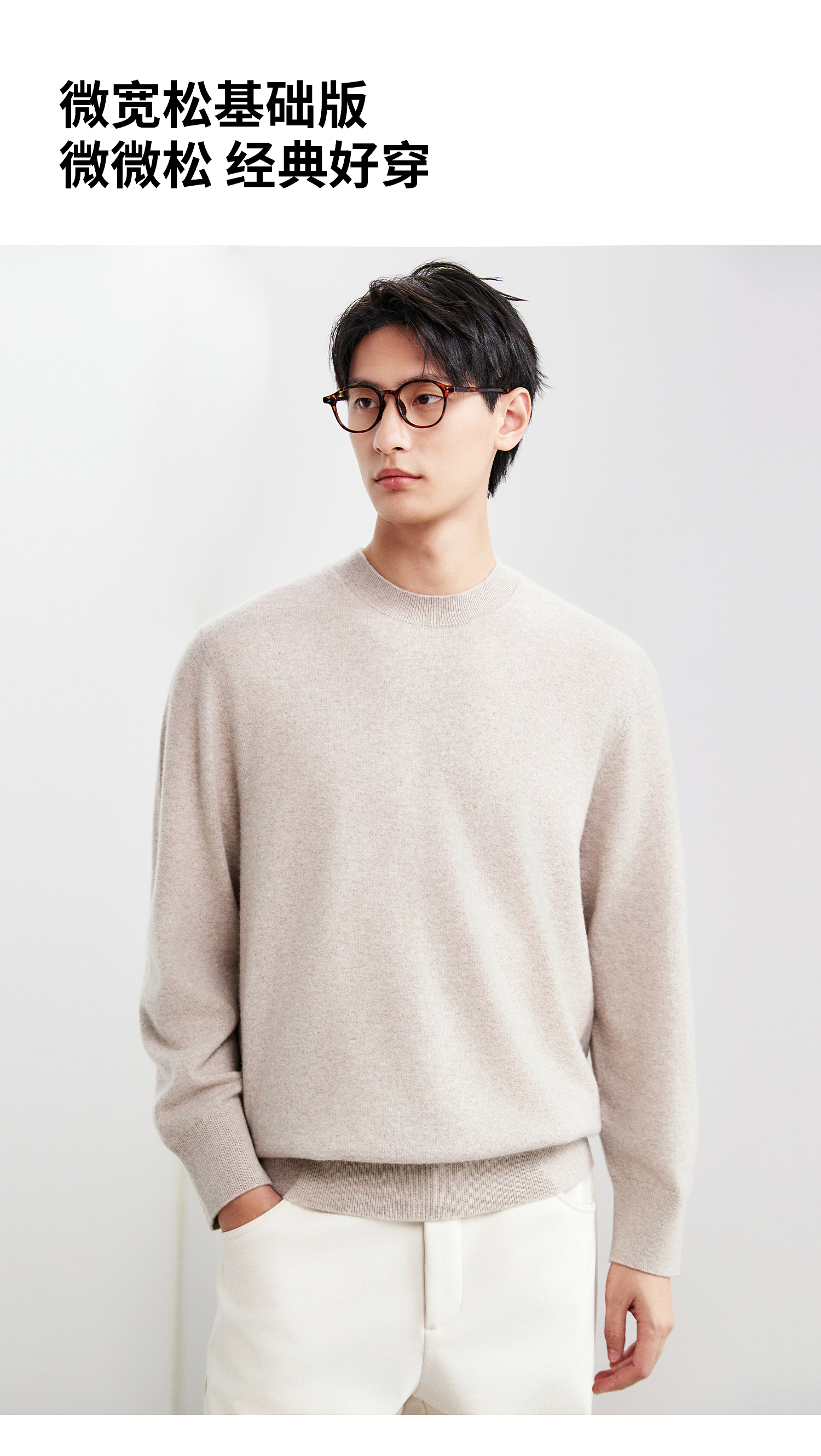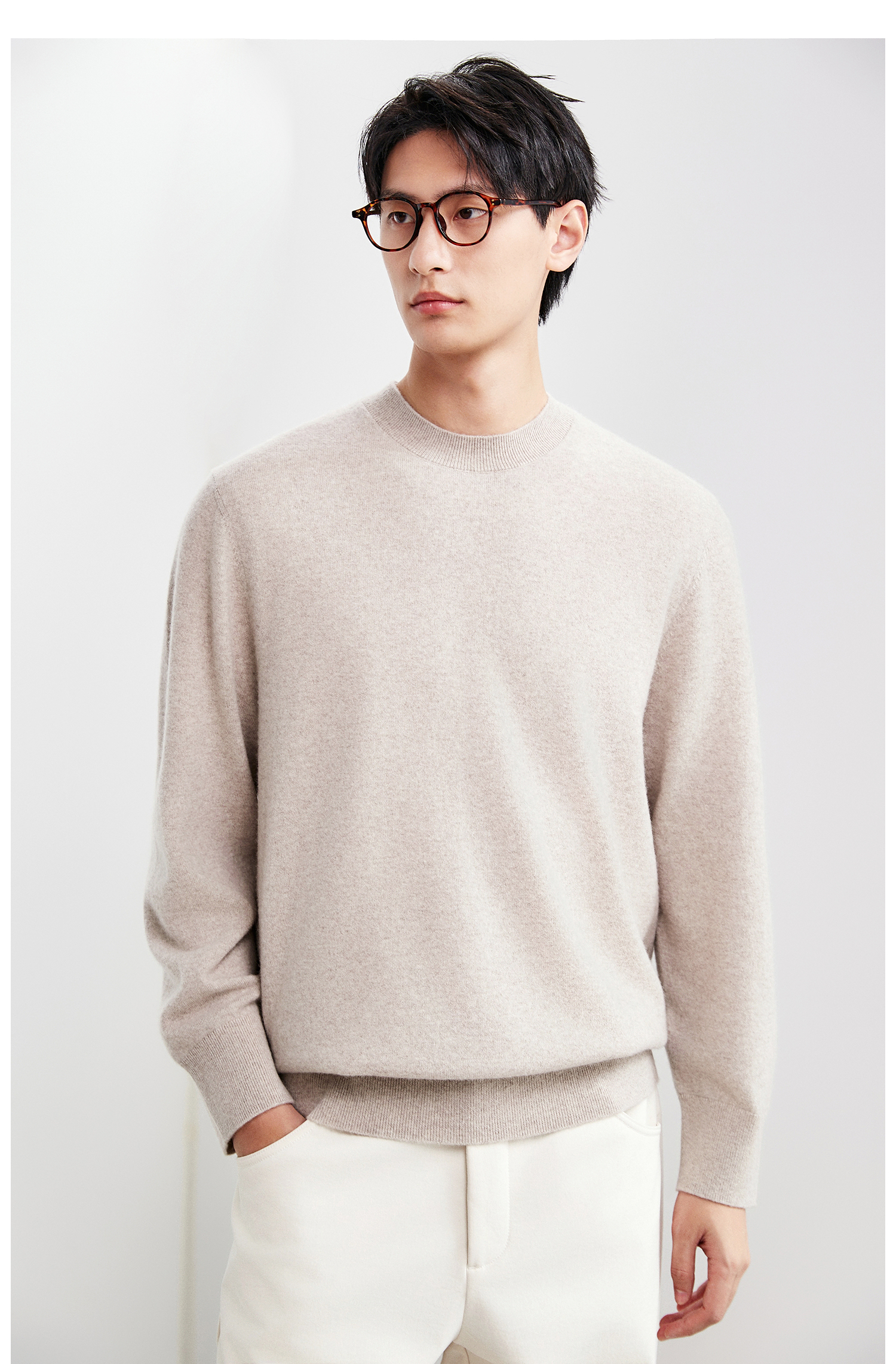 棉仓367826036-老钱风重磅美丽诺羊毛羊绒衫男 秋冬保暖针织圆领毛衣上衣