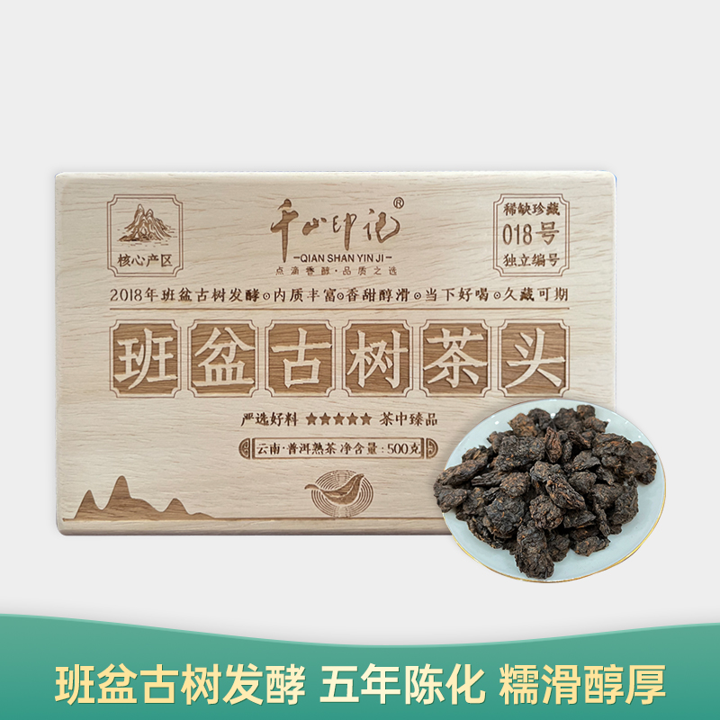 【会员日直播】班盆古树熟茶头 2018年普洱熟茶 千山印记 500g/箱 买一送一