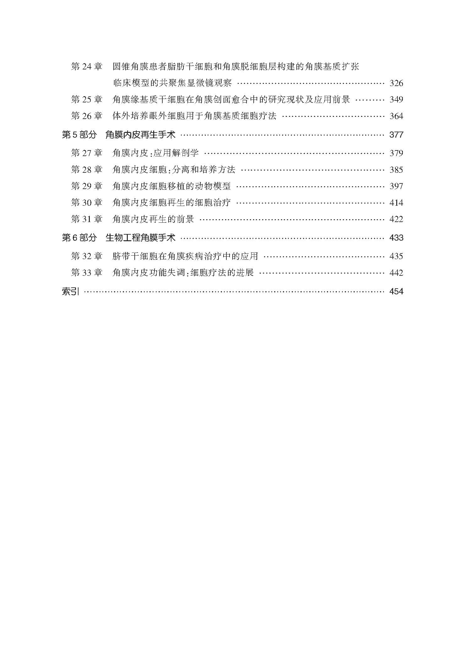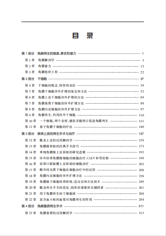 5.多角度探讨:书中不仅关注角膜上皮、基质和内皮的再生,还深入探讨了干细胞的特性、体外扩增方法及生物工程角膜的开发,全面覆盖了角膜再生的各个关键环节。