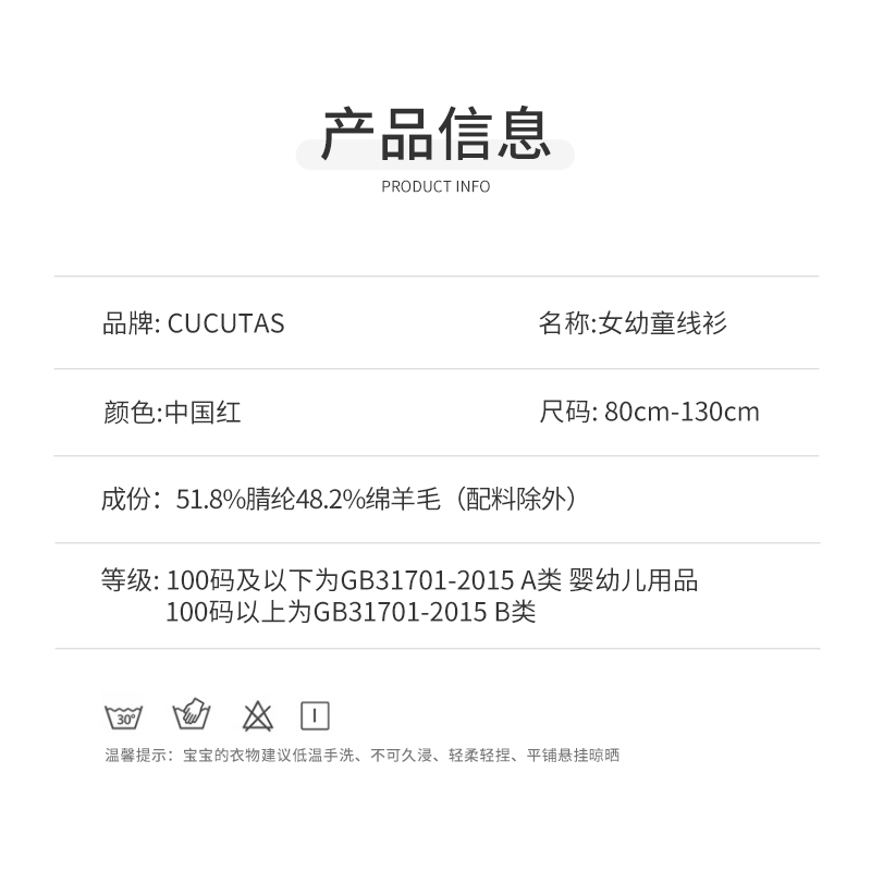 Cucutas女幼童线衫CY25WIW643中国红90#-130#