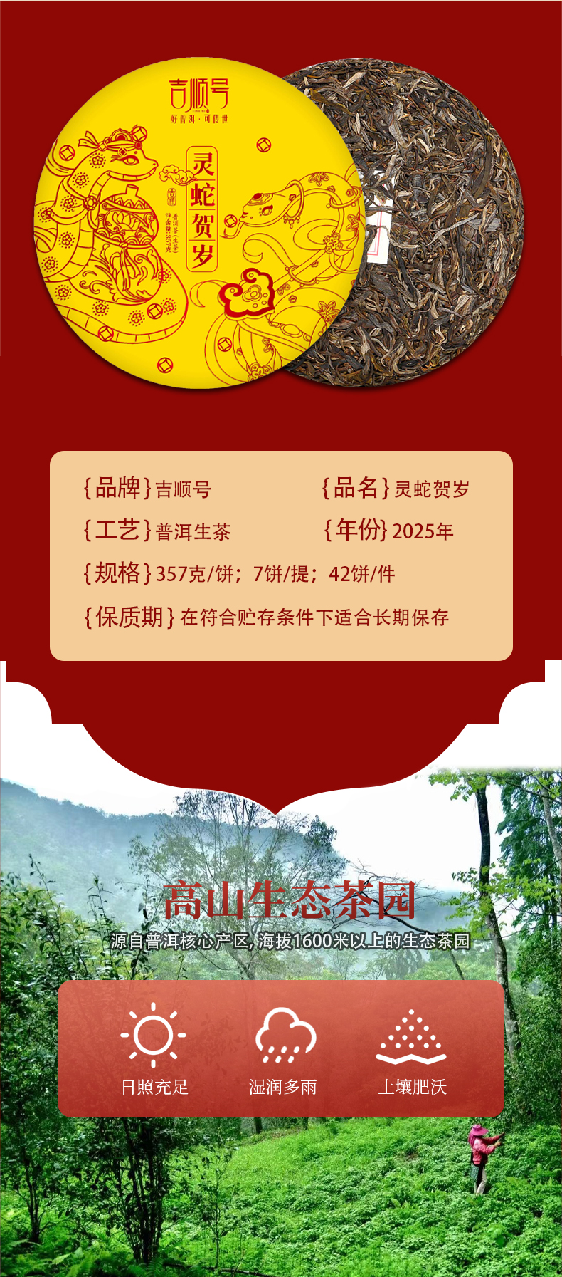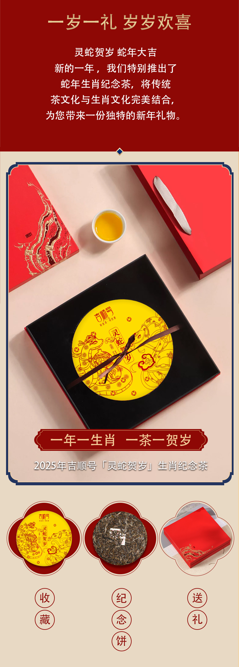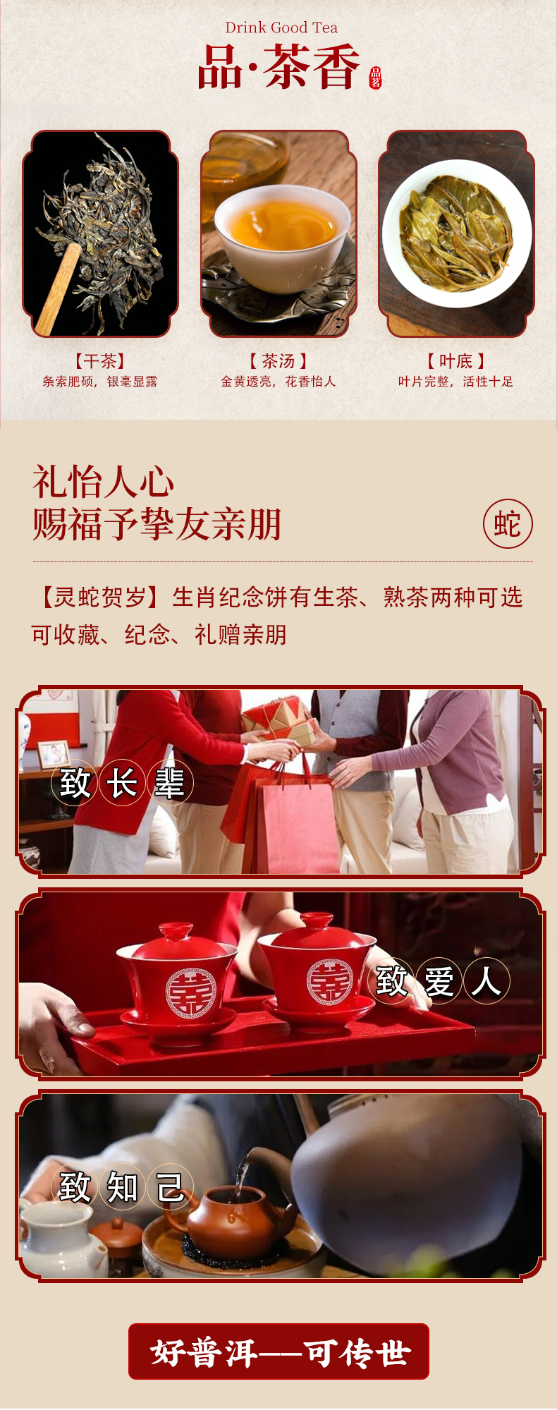 2025年生肖纪念饼生茶“灵蛇贺岁”普洱生茶饼357克(买1送1)