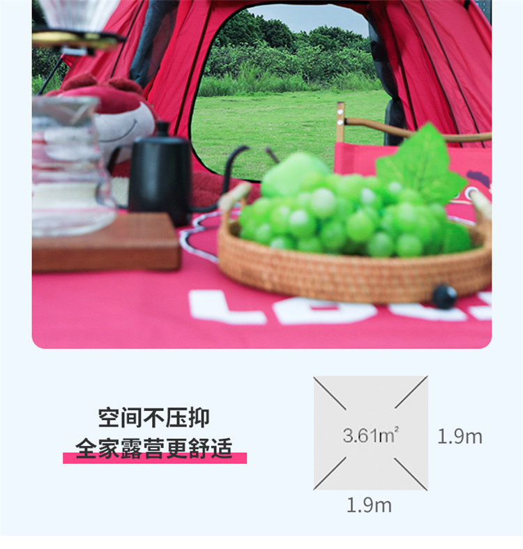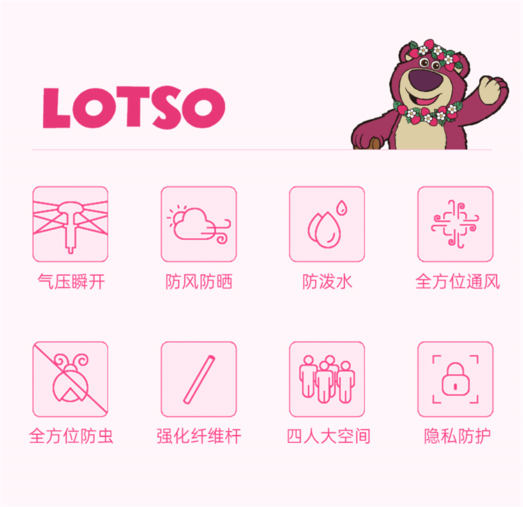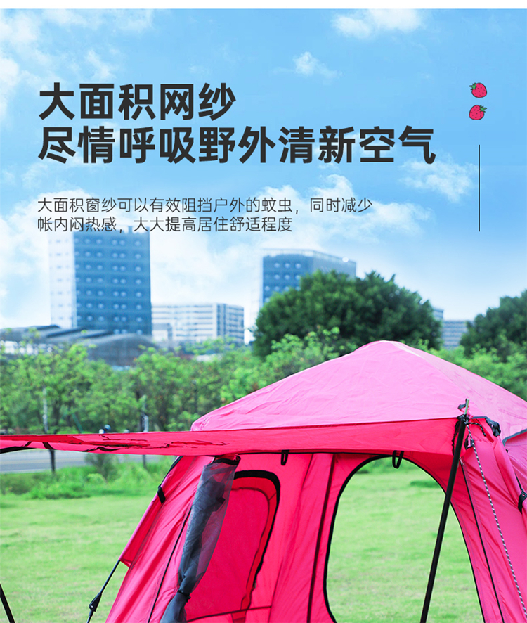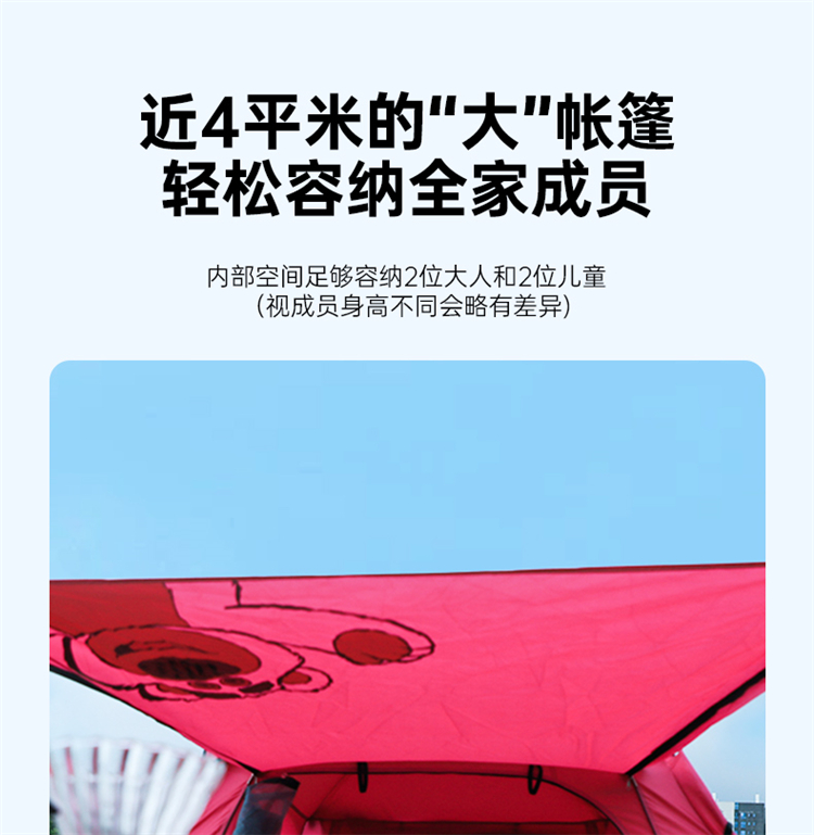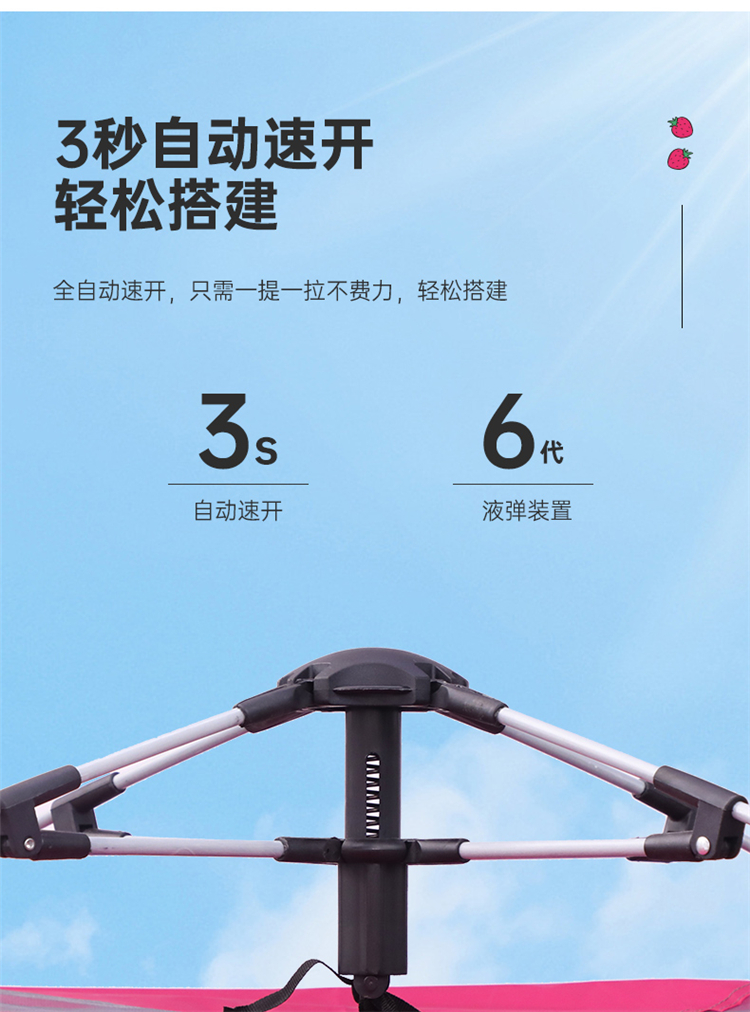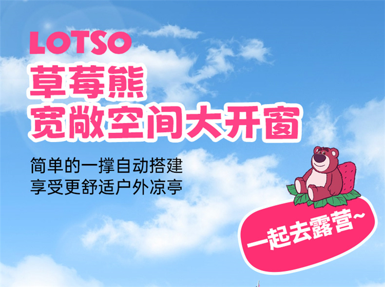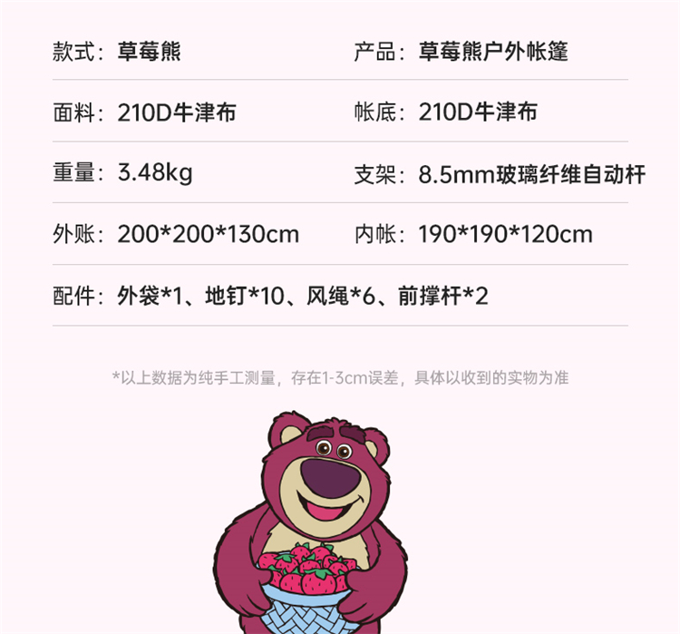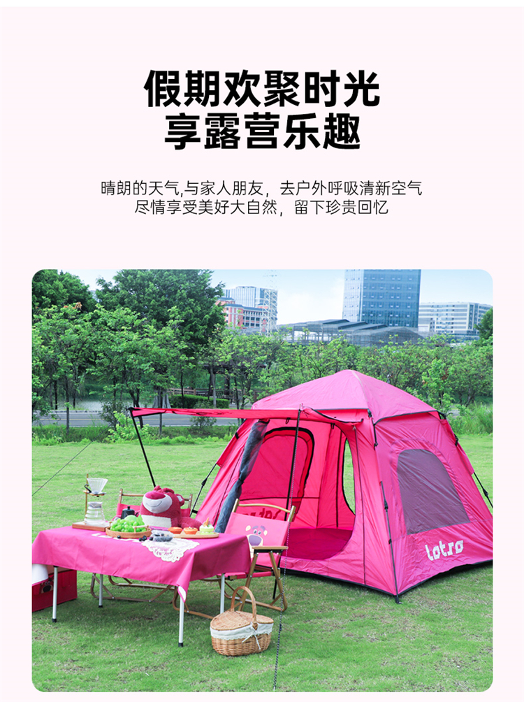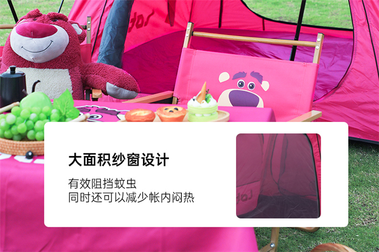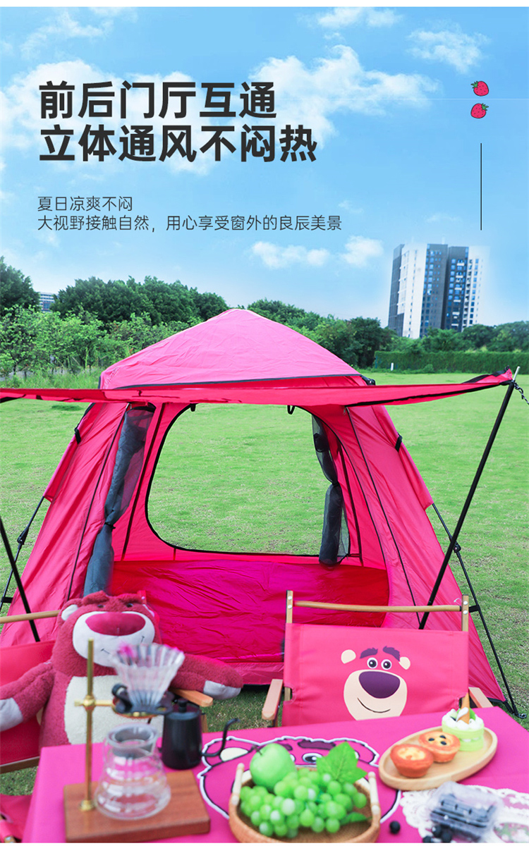 【推荐】麦斯卡×迪士尼草莓熊帐篷户外便携式折叠自动野营野餐过夜沙滩帐露营帐篷