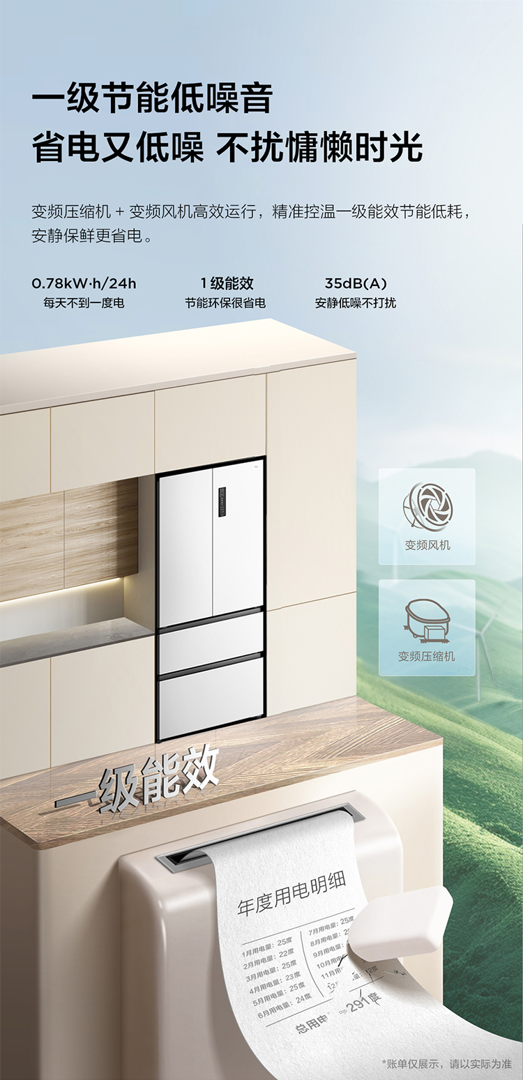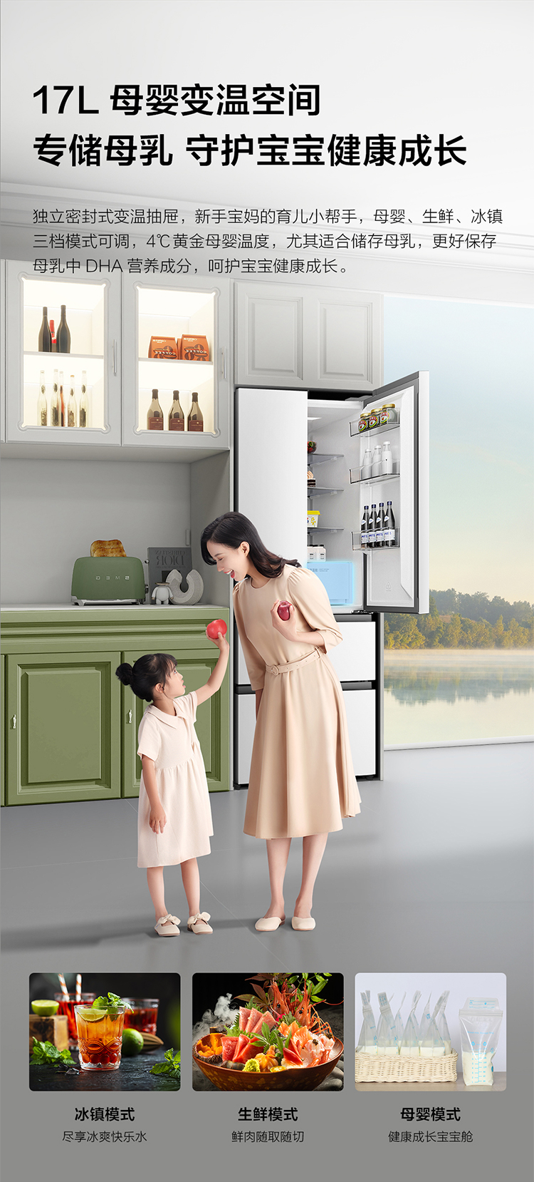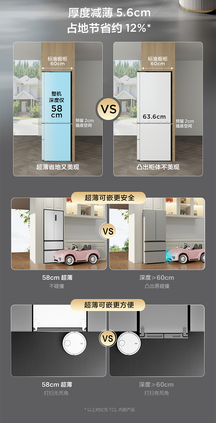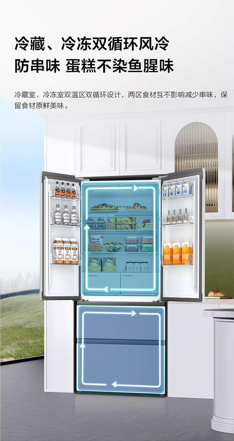 TCL小清柠460升法式多门四开门双净味58cm超薄机身一级能效冰箱 R460T5-D