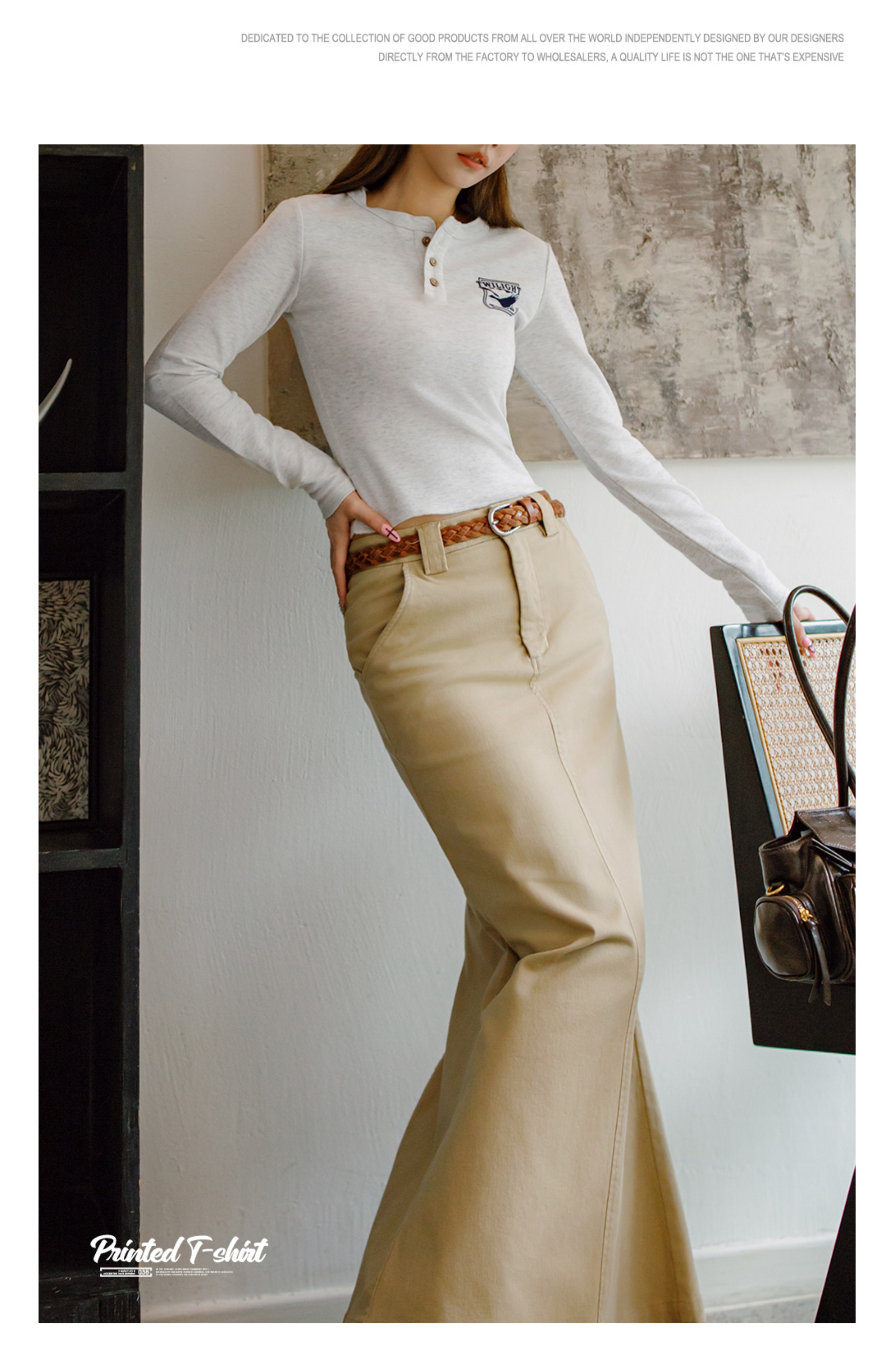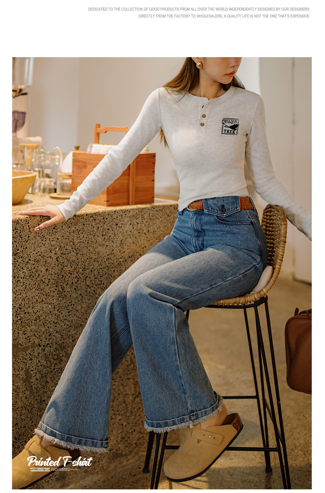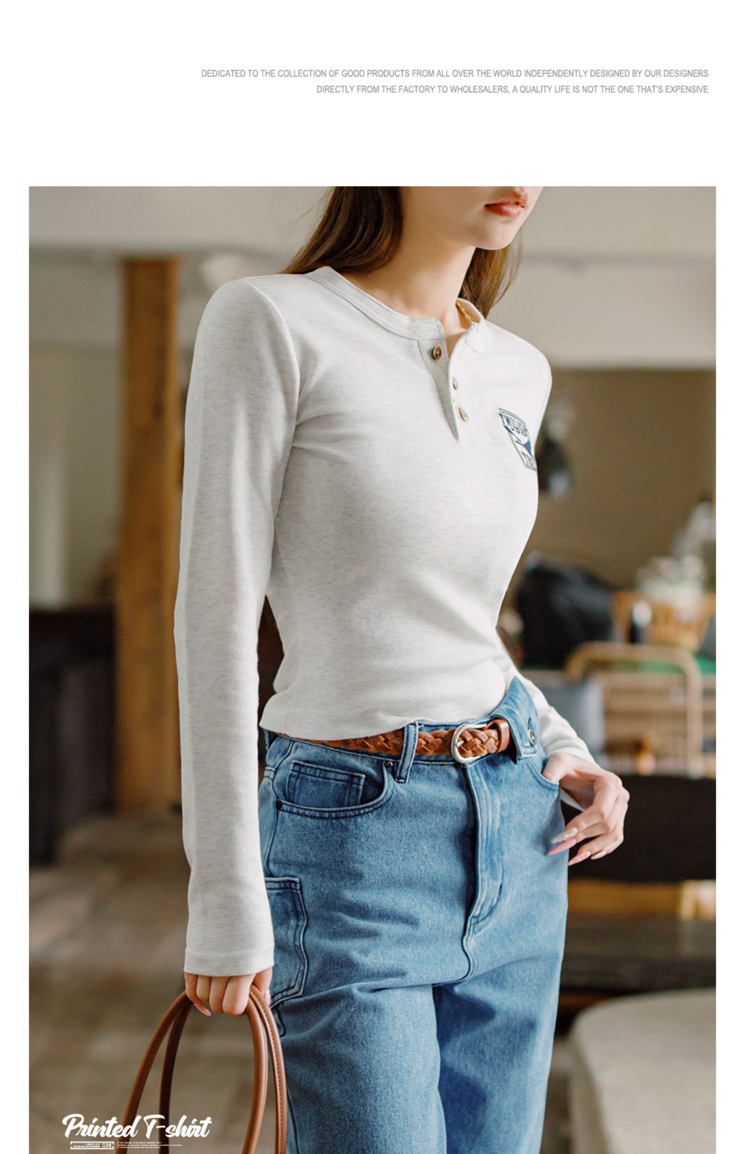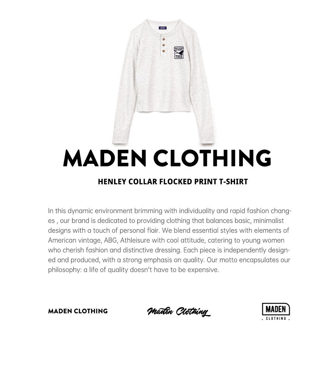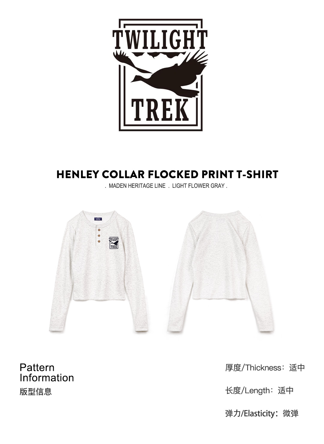 马登暮光之城印花亨利衫格雷系高智风打底衫复古柔感浅春系长袖女