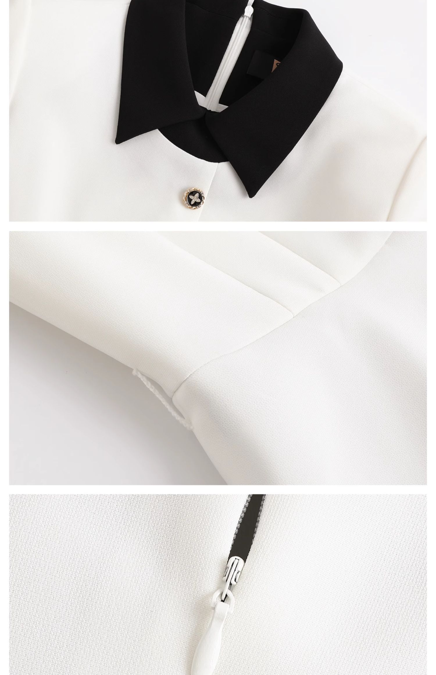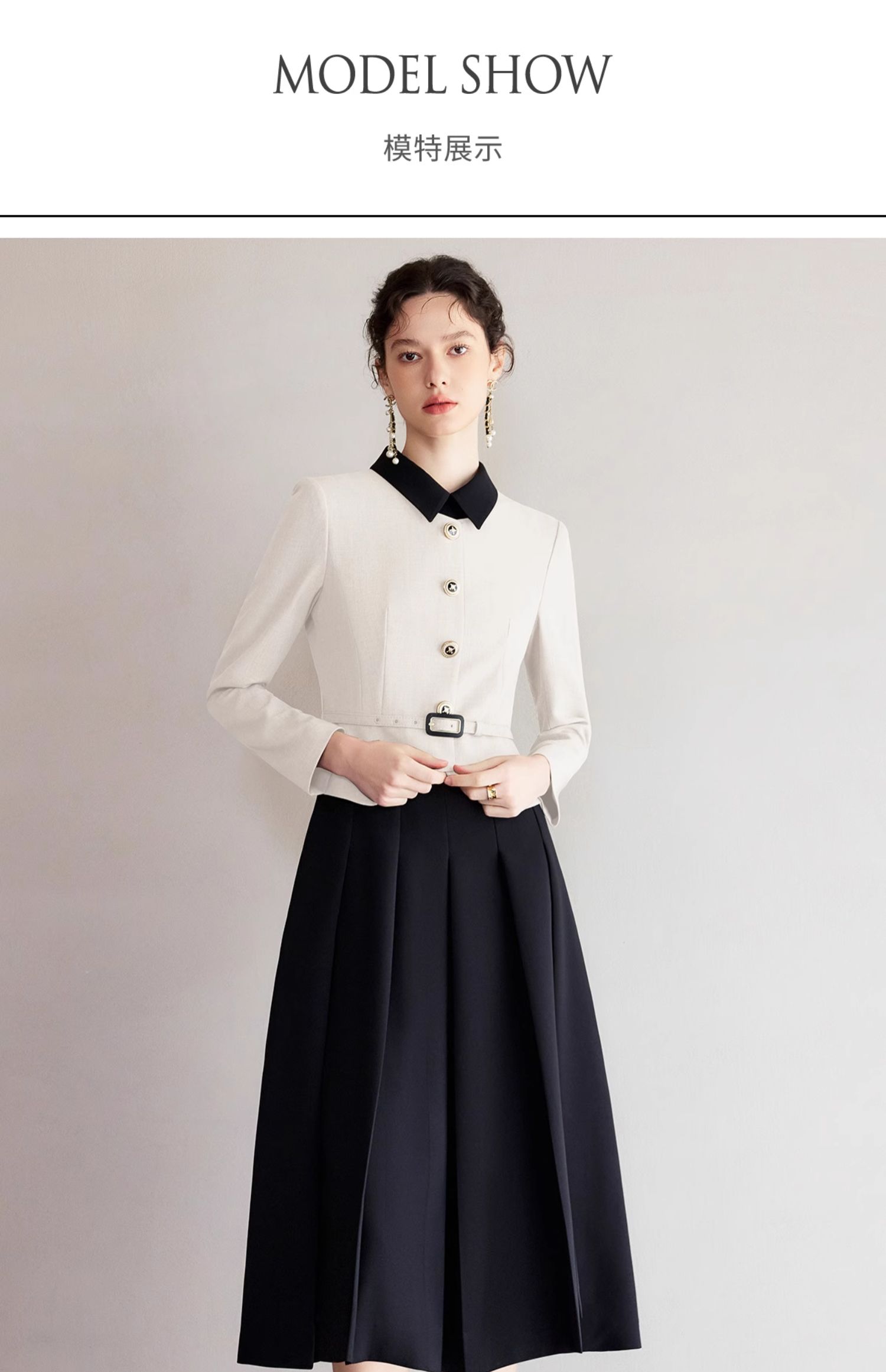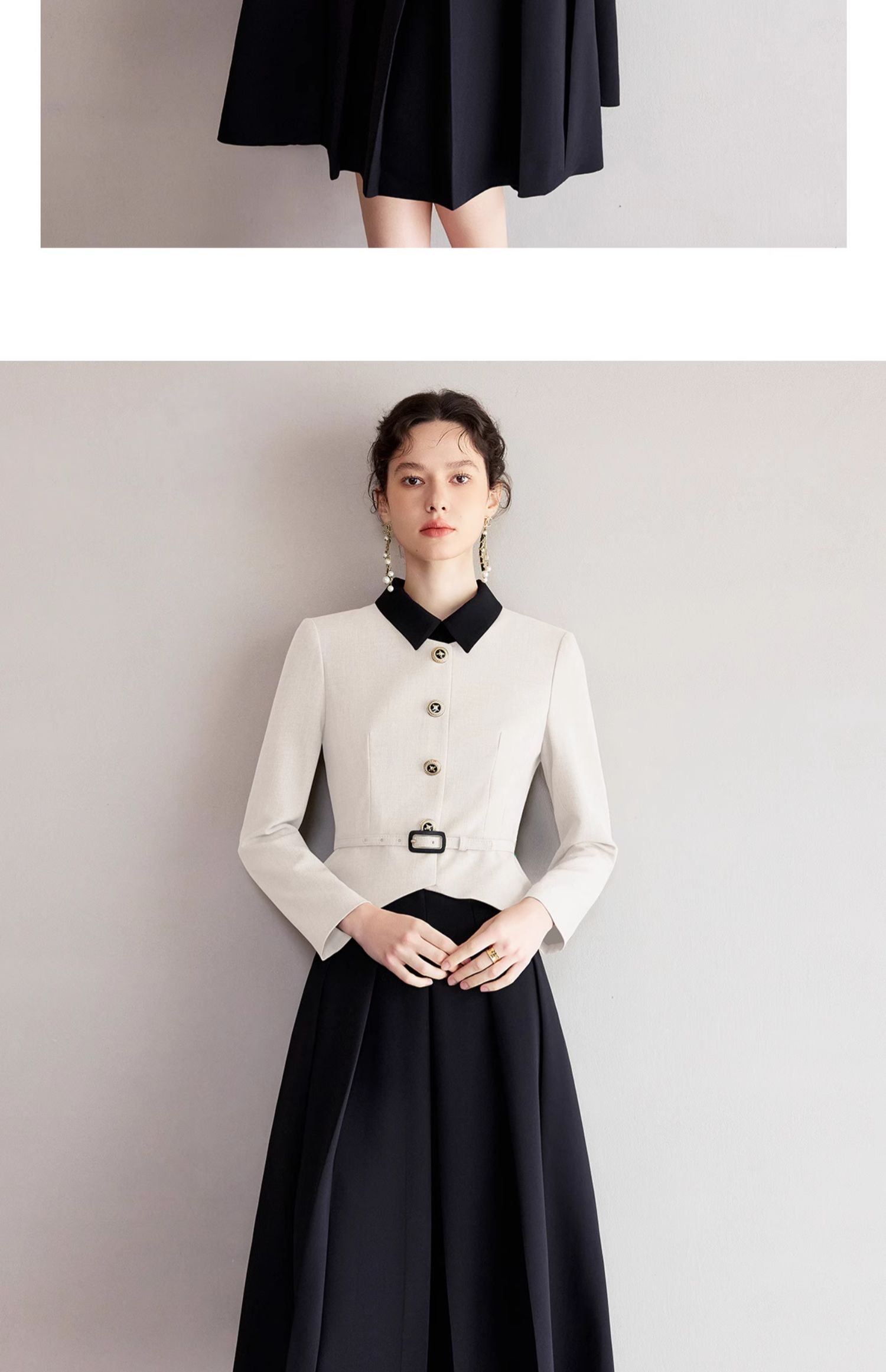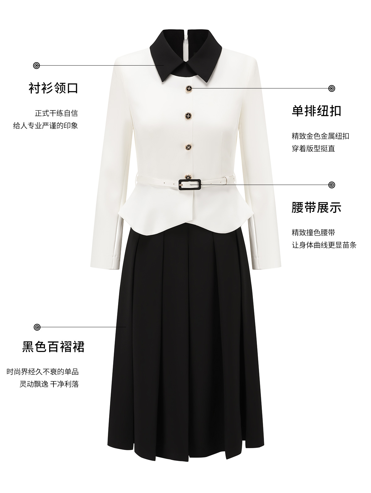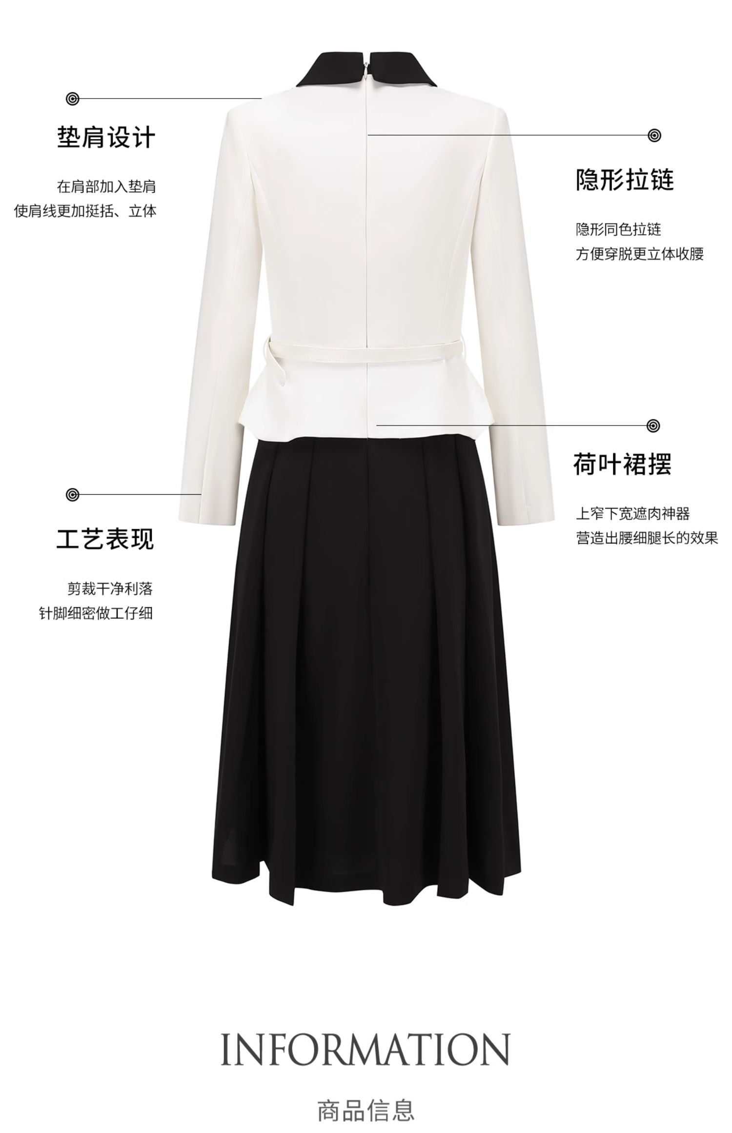 AD黑白拼色小翻领西装伞裙套裙女2025春季新款假两件职业装连衣裙