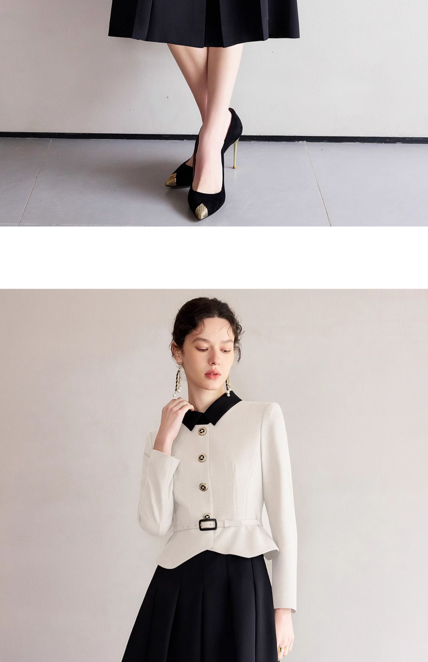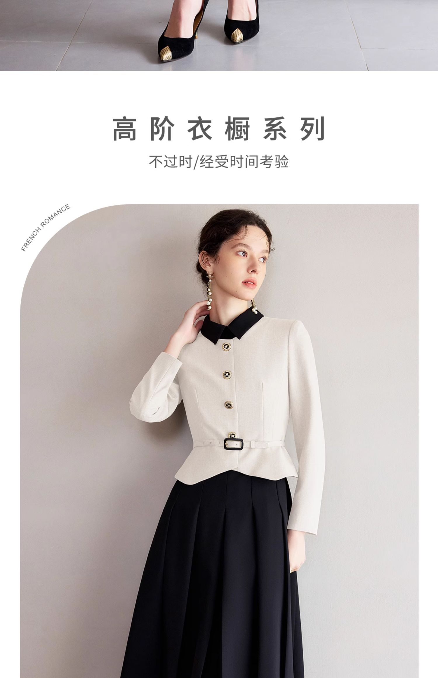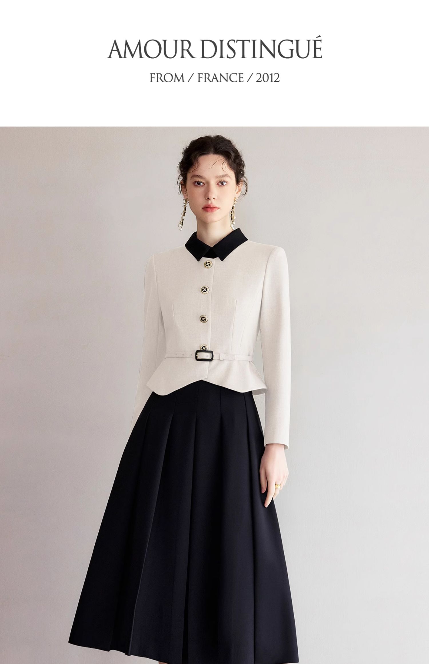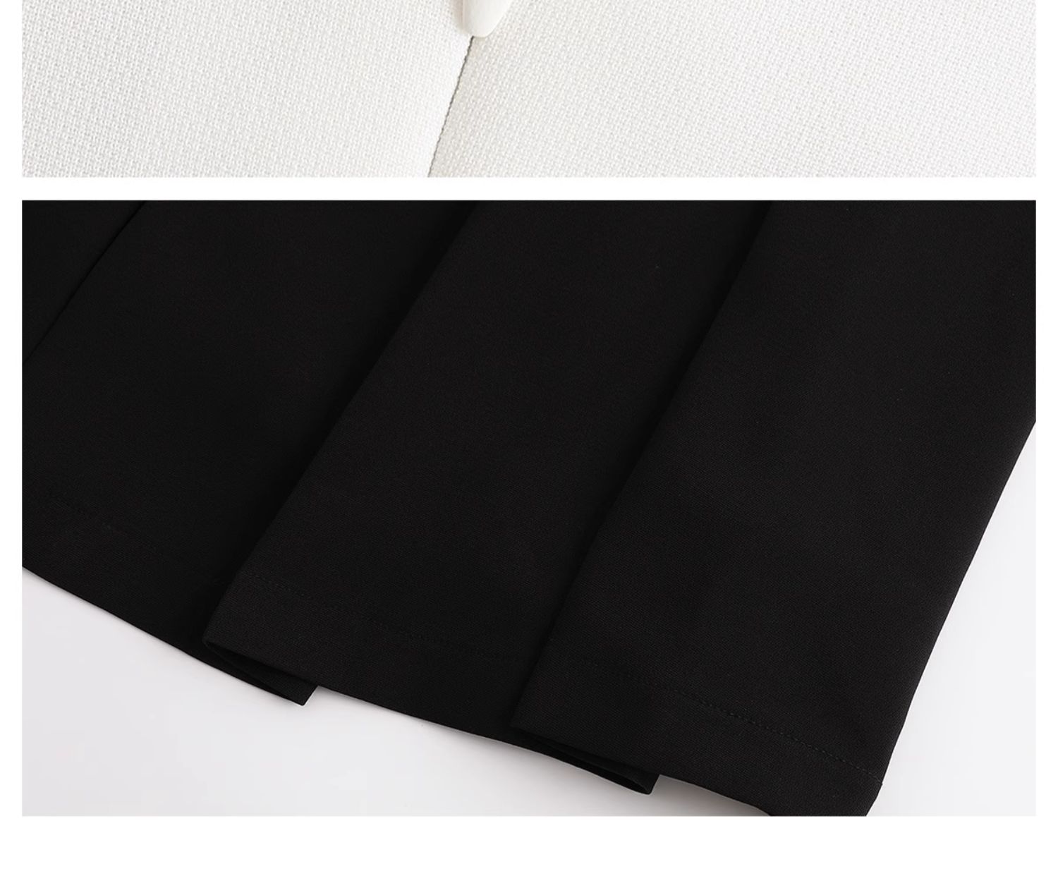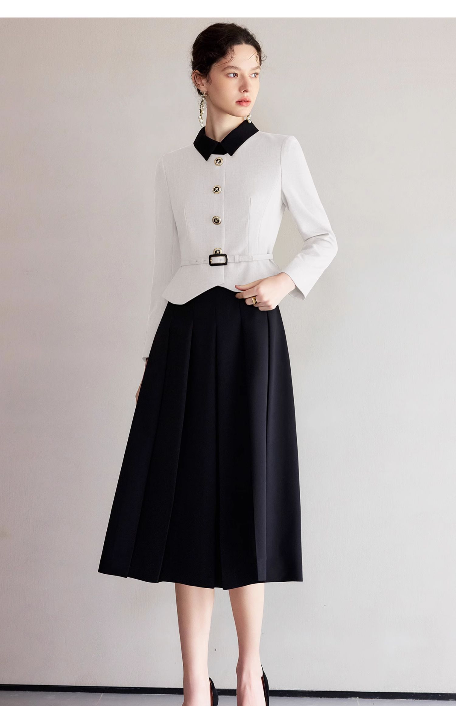 AD黑白拼色小翻领西装伞裙套裙女2025春季新款假两件职业装连衣裙