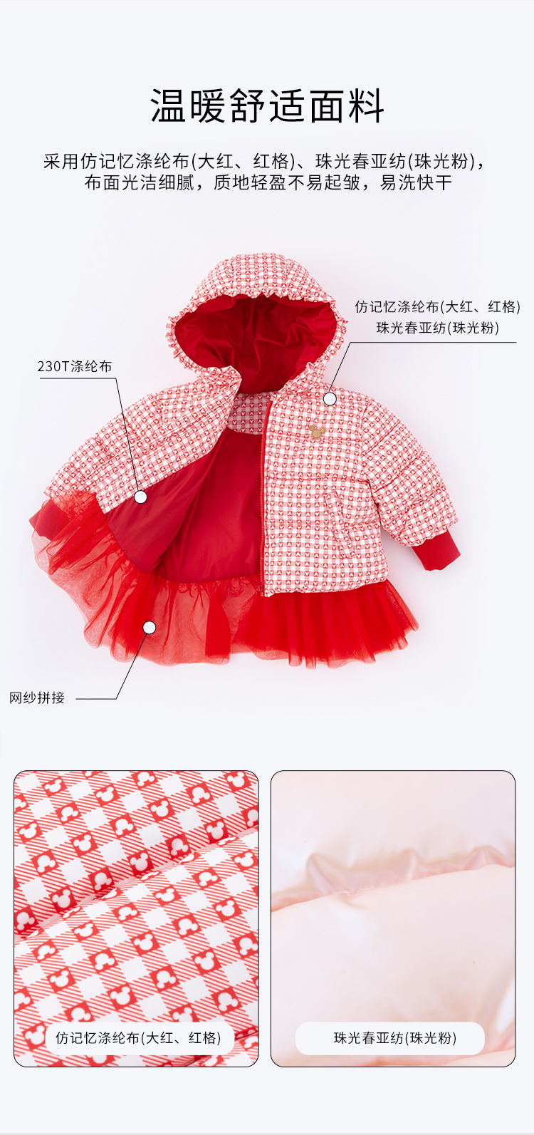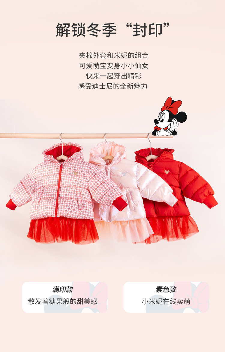 迪士尼童装 女童棉服外套加厚儿童冬棉袄女孩假两件宝宝冬装衣服214S1579