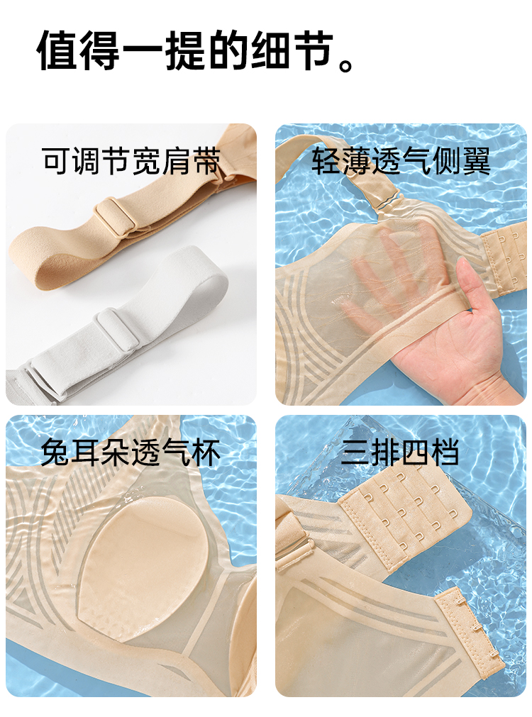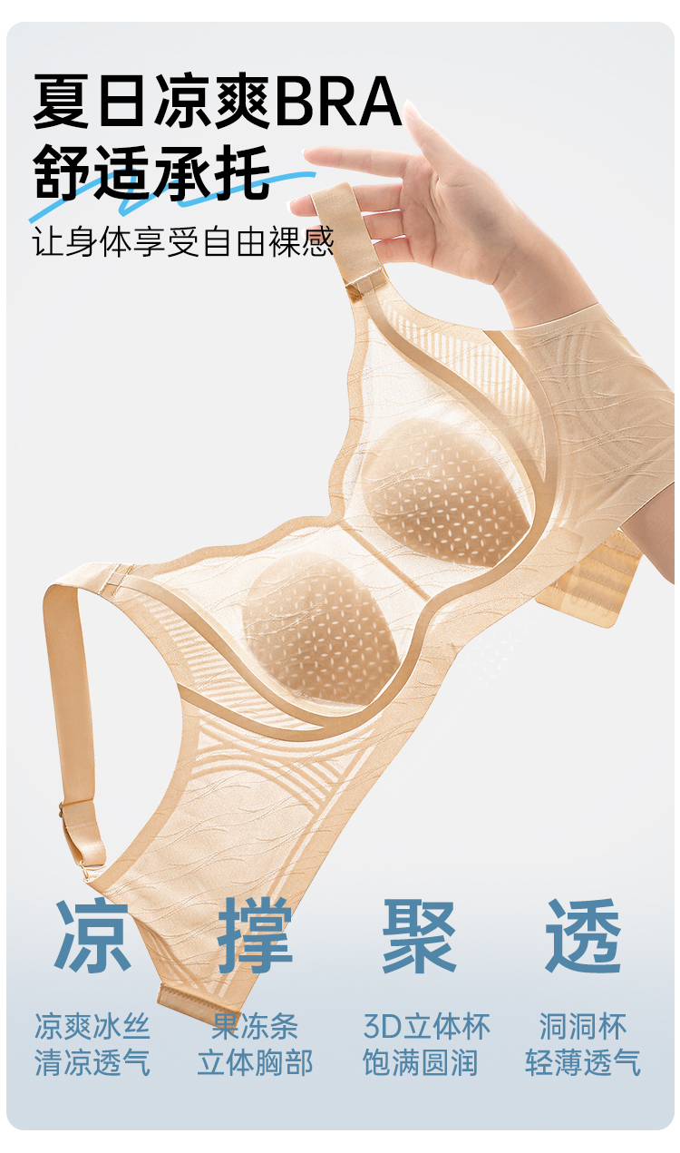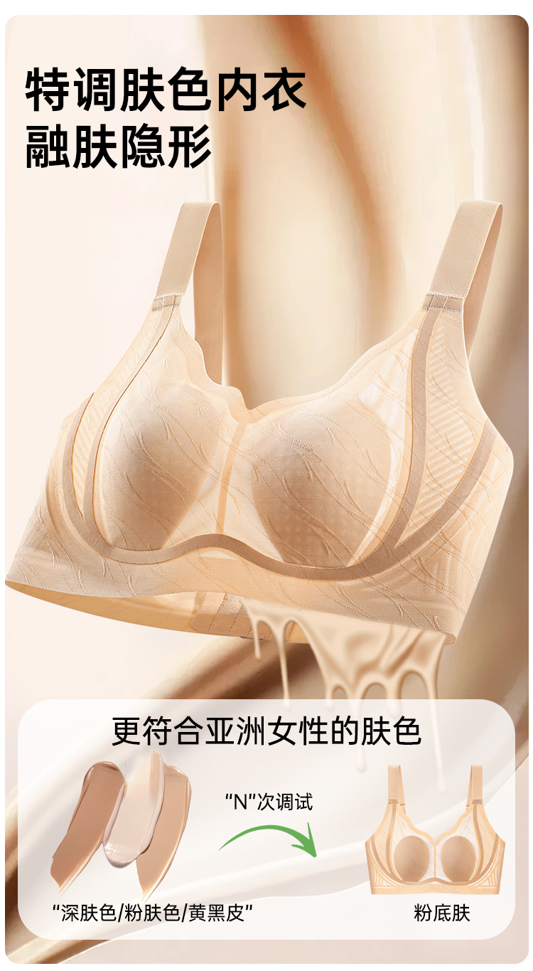 【298选3】D1-【B-D杯】【山茶花养肤 10A抑菌】润微超薄透气无痕粉底液内衣女收副乳文胸 提拉冰柔