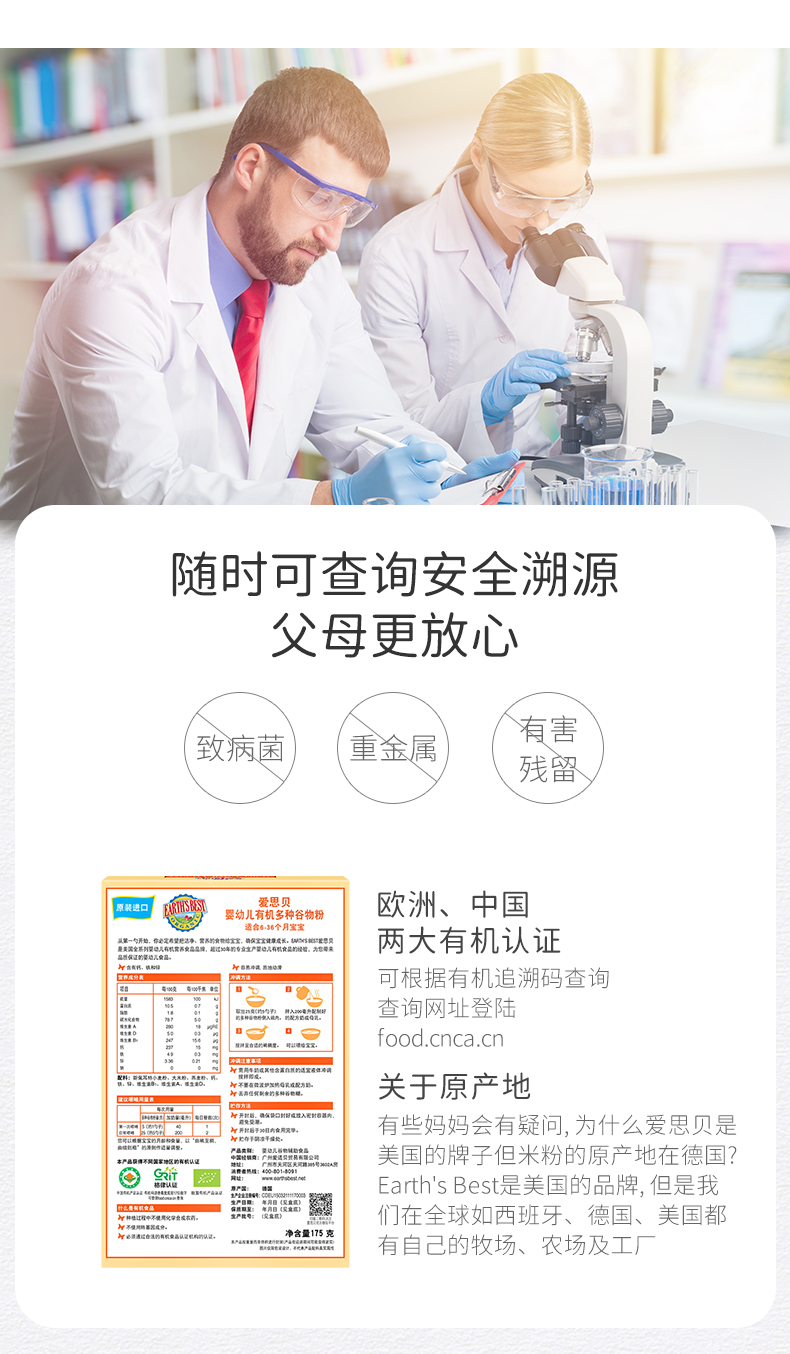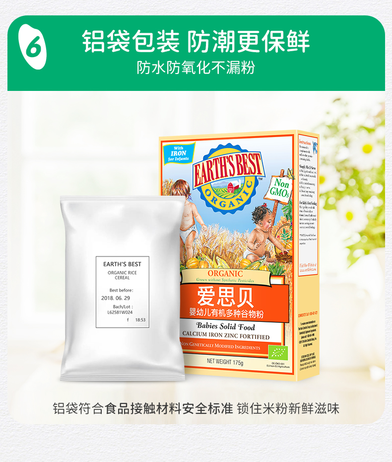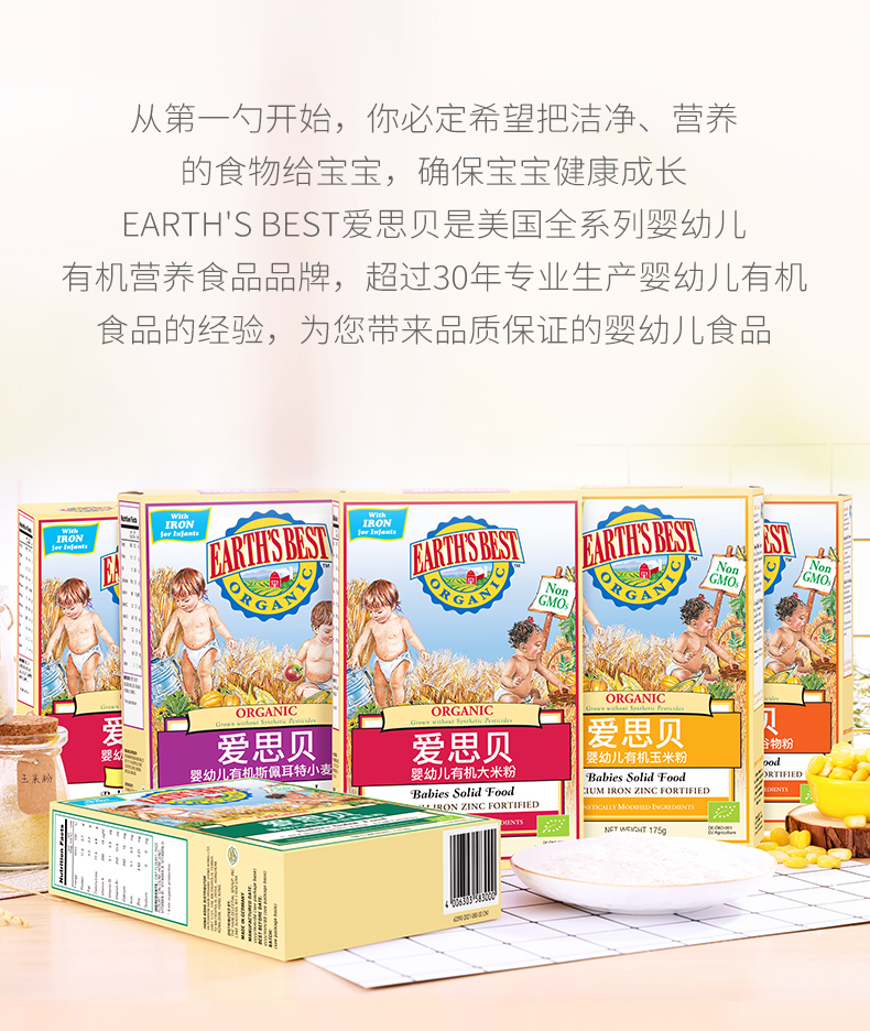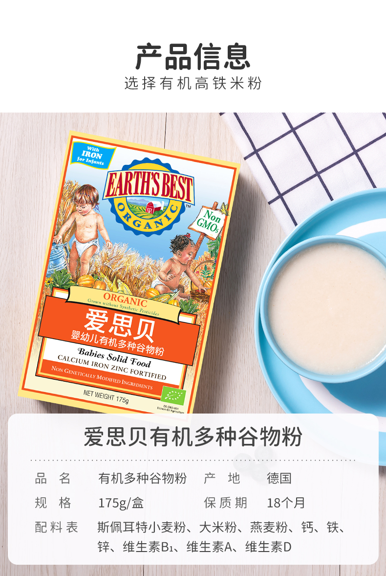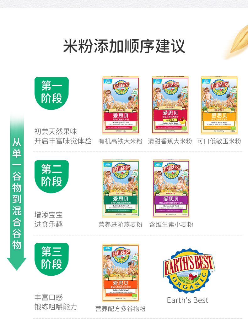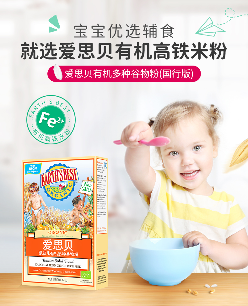 【国行版3段】美国EARTH'SBEST爱思贝婴幼儿有机多种谷物粉 175g