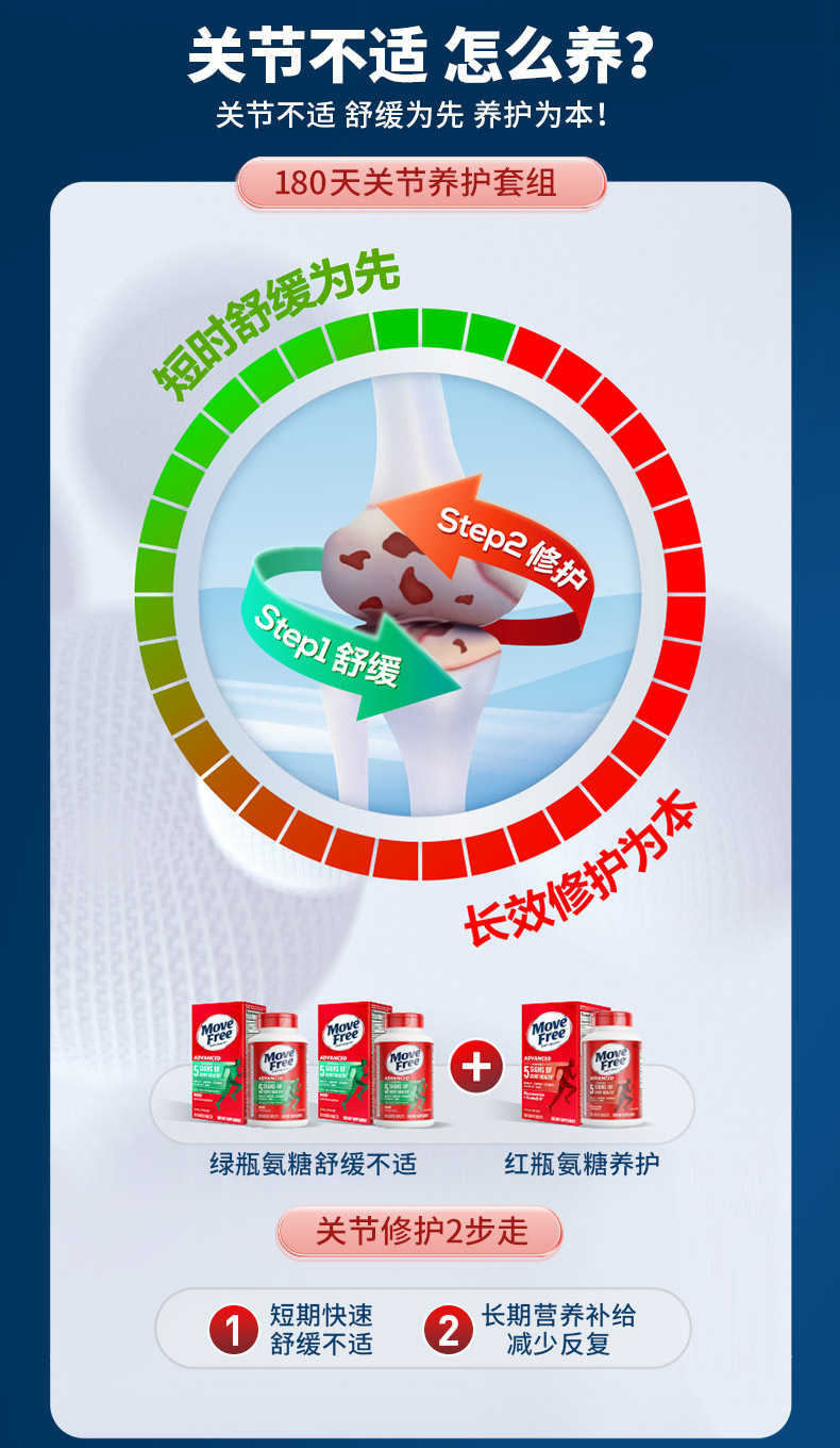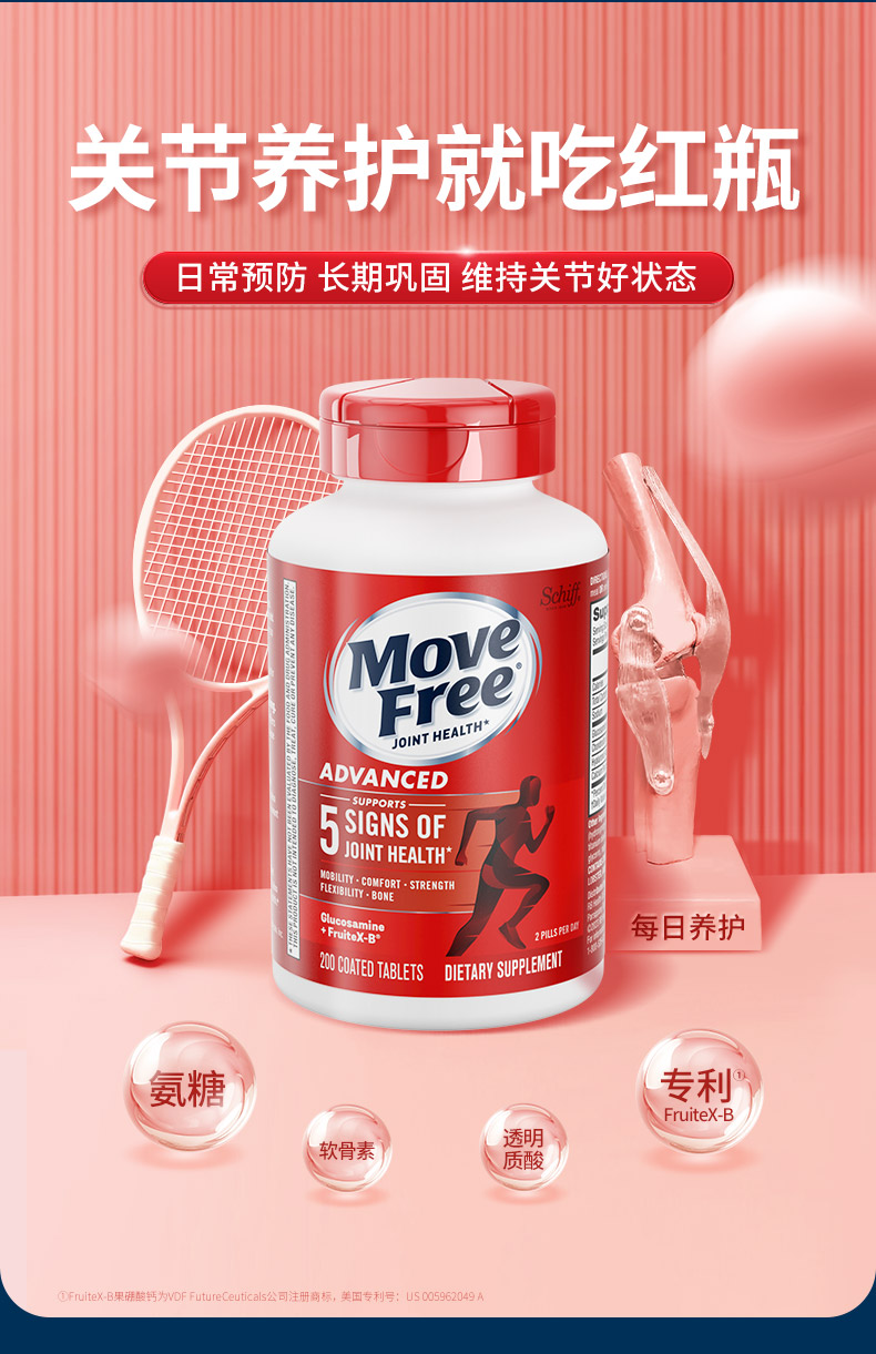 MoveFree益节红瓶氨糖软骨素日常养护关节骨胶原美国原装进口