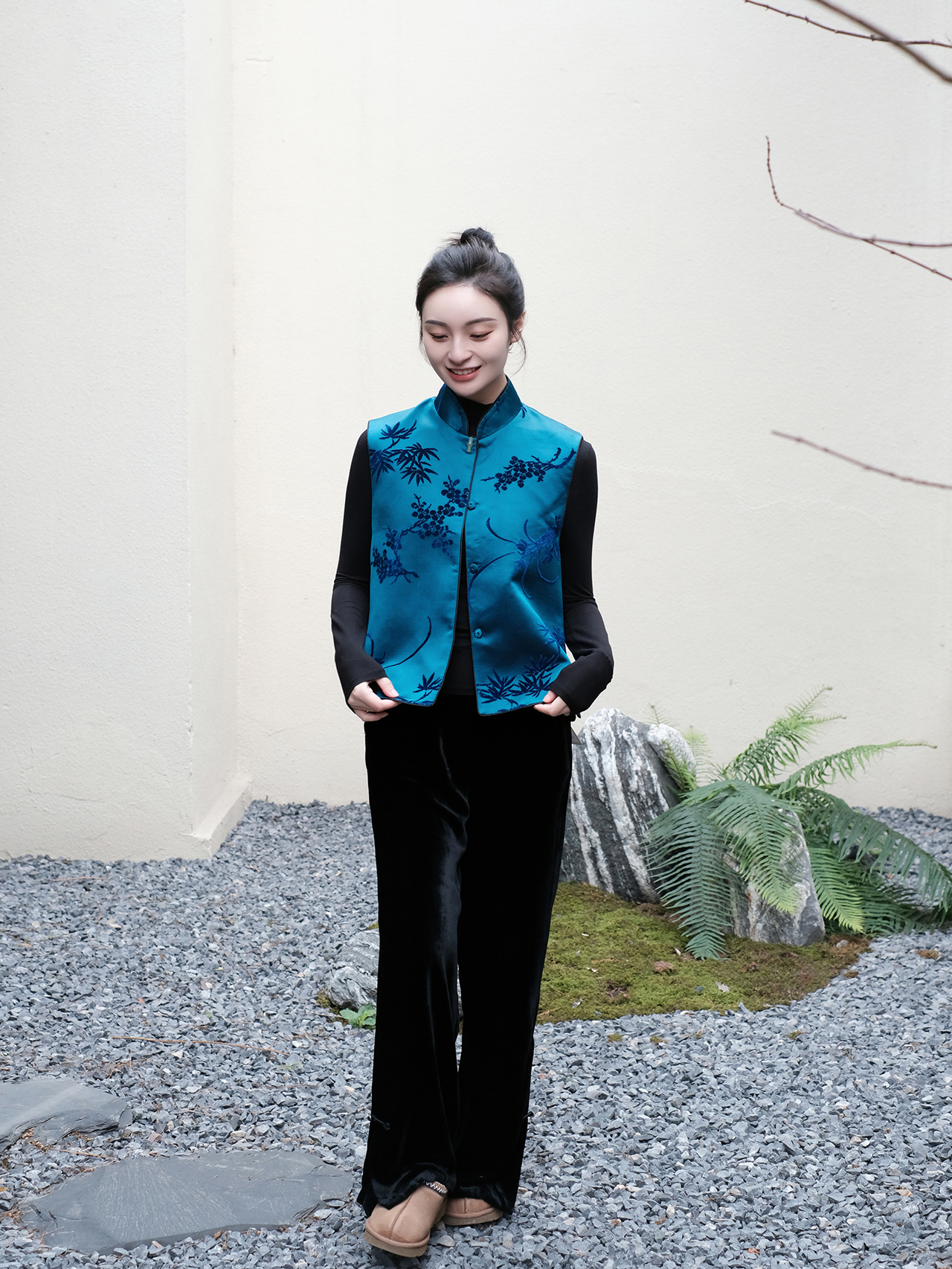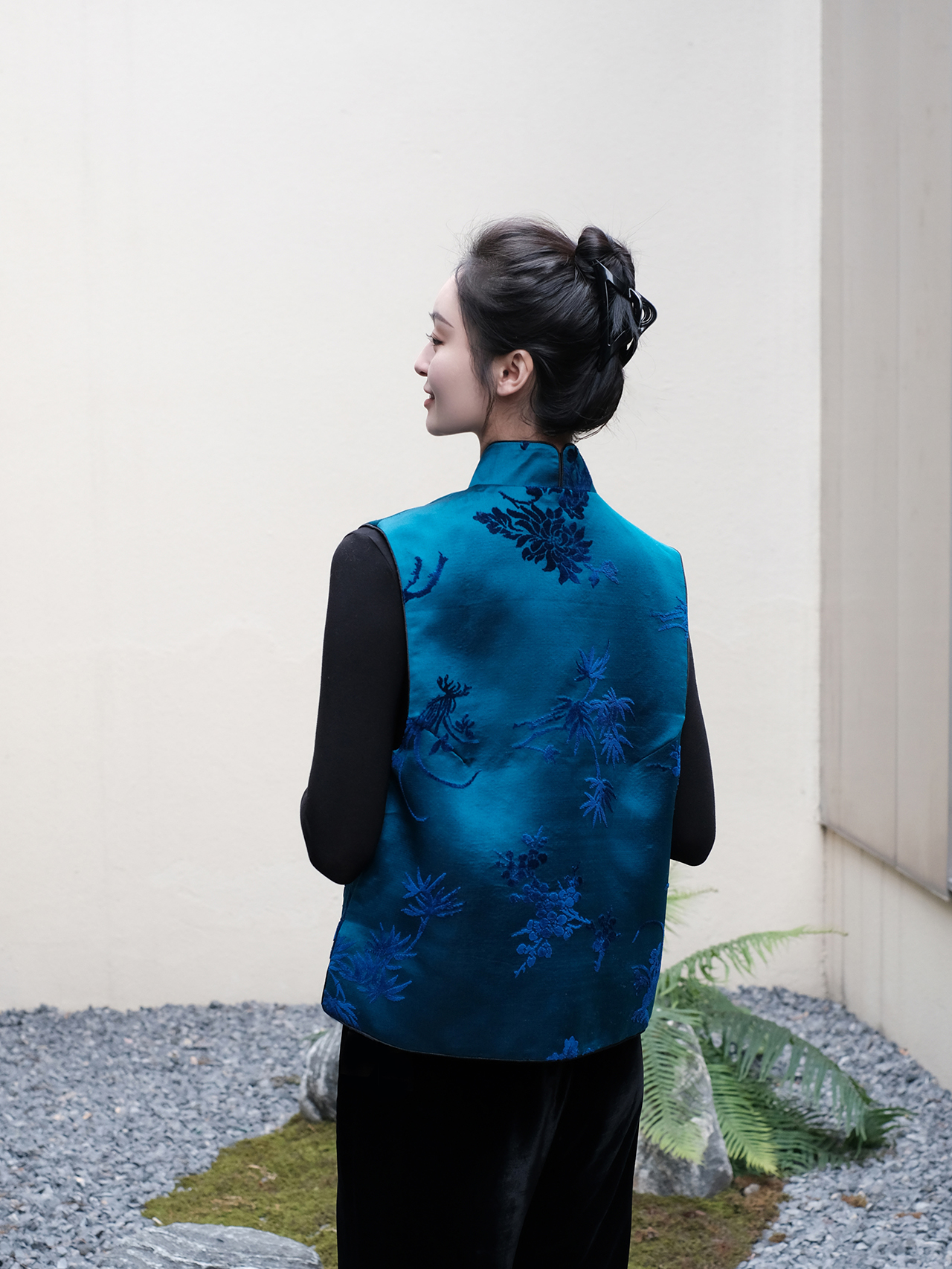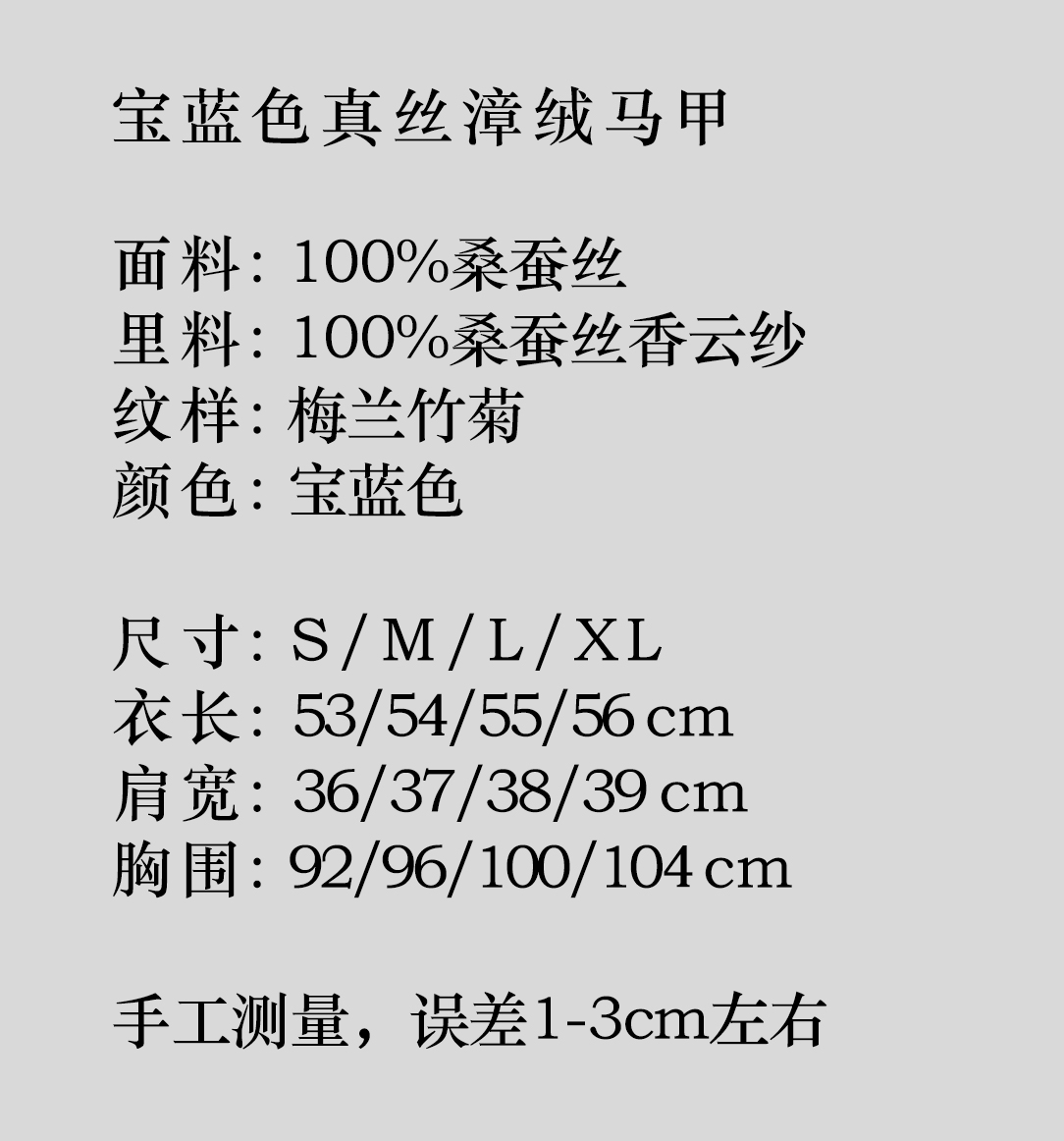 盛唐牡丹 |宝蓝色真丝漳绒马甲