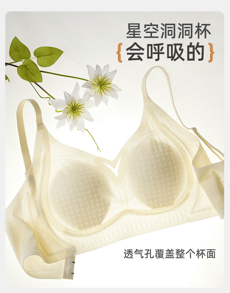 雅黛俪内衣女夏季薄款冰丝无痕美背文胸小胸聚拢洞洞杯透气胸罩