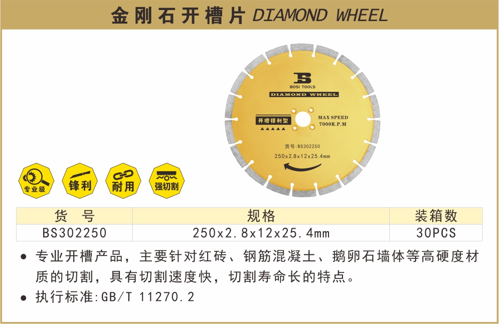 波斯 金刚石开槽片(锋利型) 250*2.8*12*25.4 BS302250