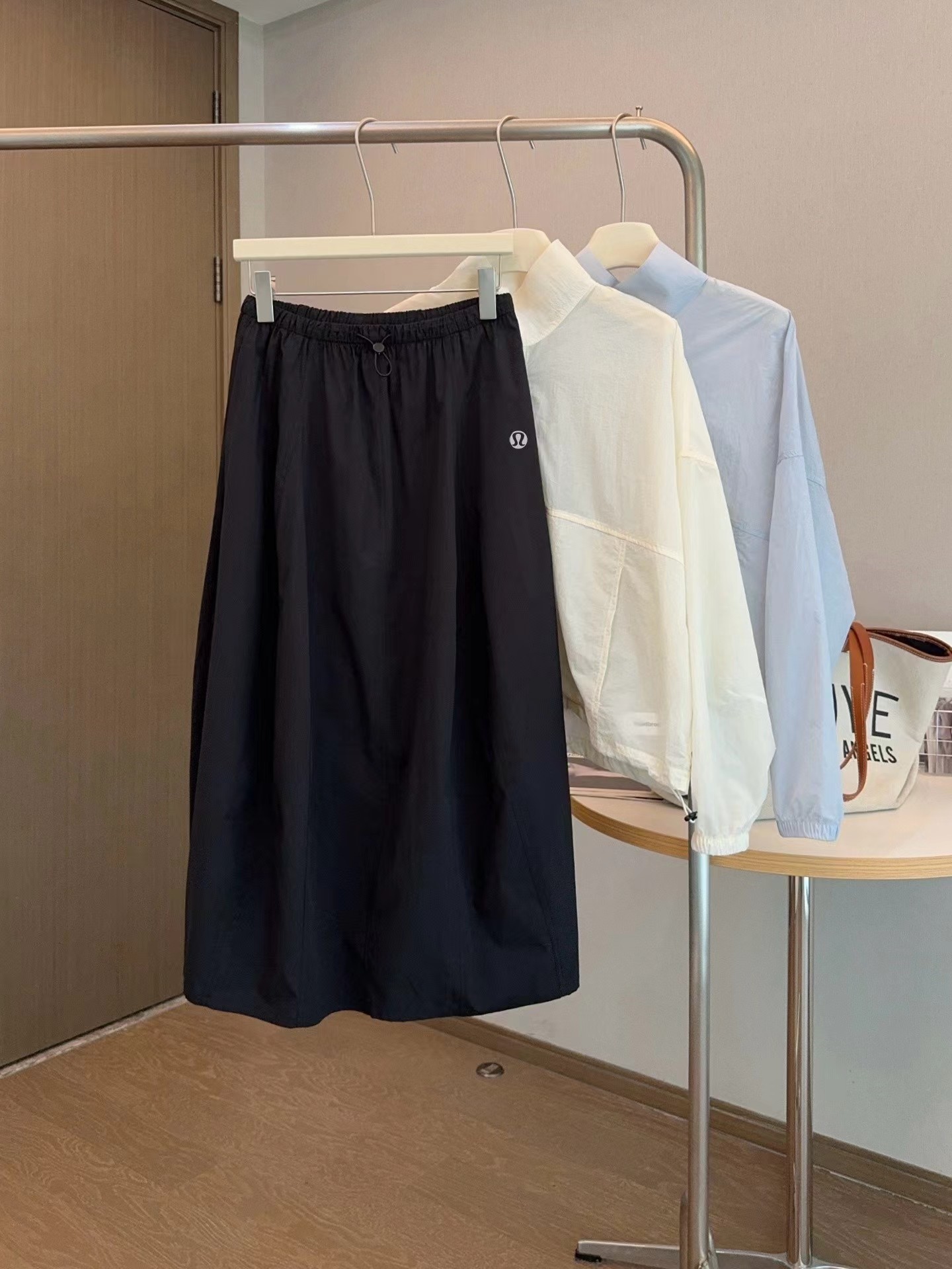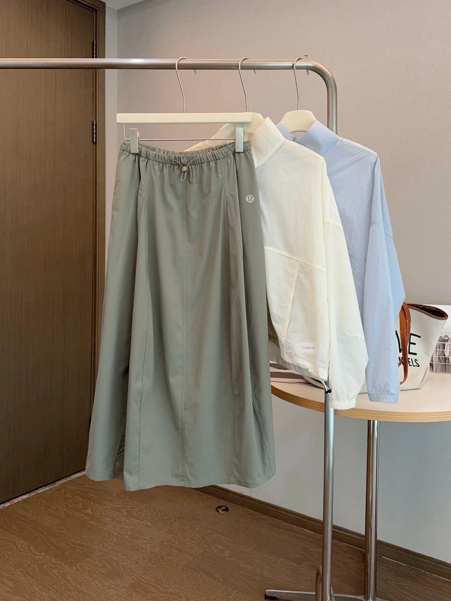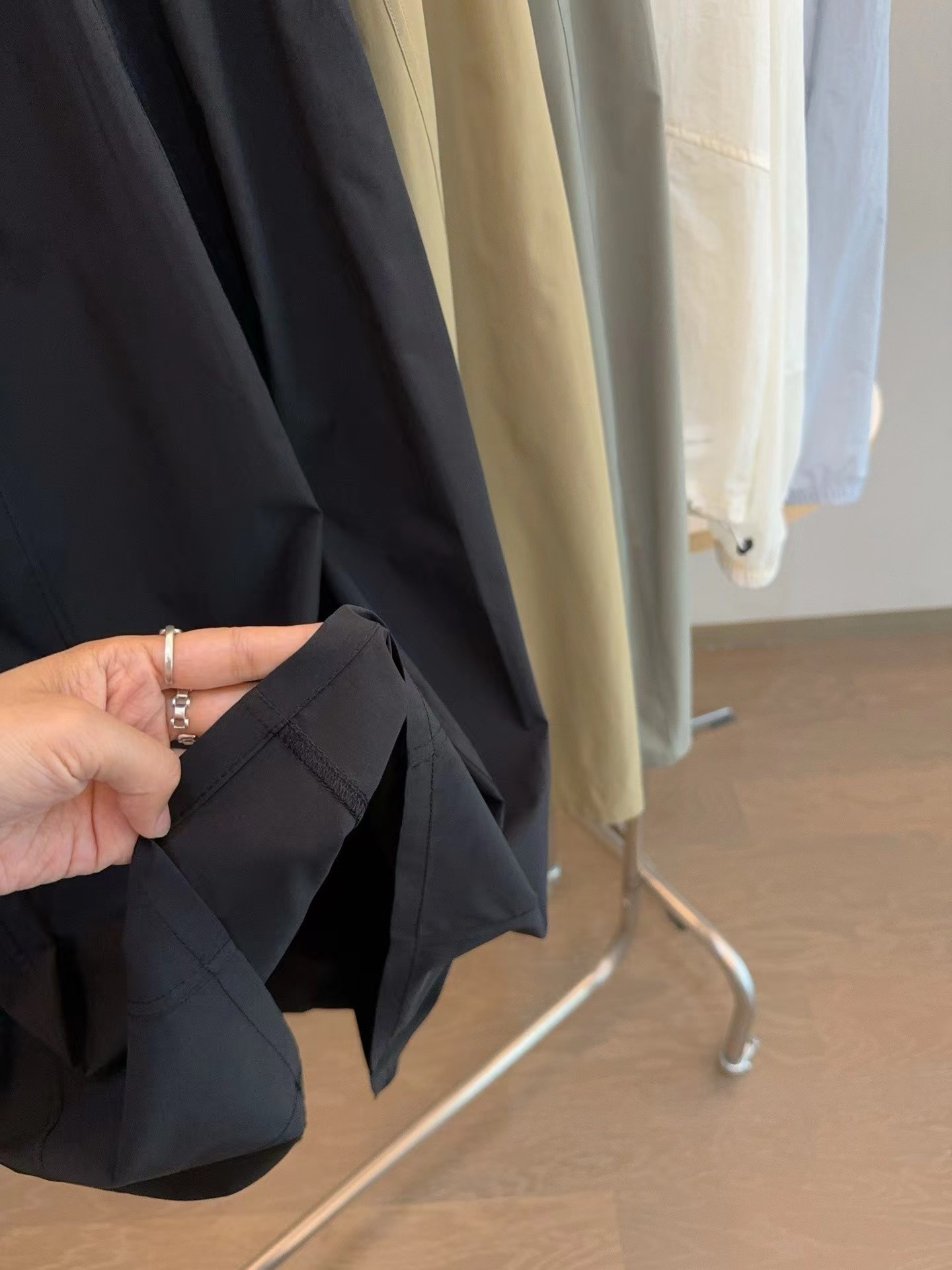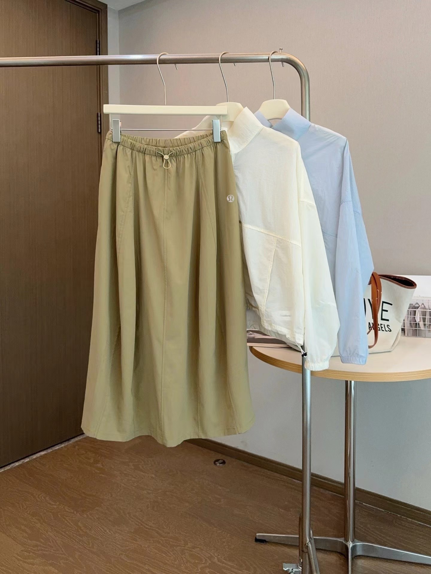 轻量复合防晒松紧腰A字宽松百搭工装半身裙,松紧腰设计?腰部细节做的非常好?没有任何毛边?内置弹力绳?可调节腰围?包容性更强?地雷扣点缀?更加时髦休闲?整体偏A字版型?裙身多处分割拼接?下摆微微内收?呈花苞状?非常显瘦又遮肉?裙长刚刚好到小腿肚的位置