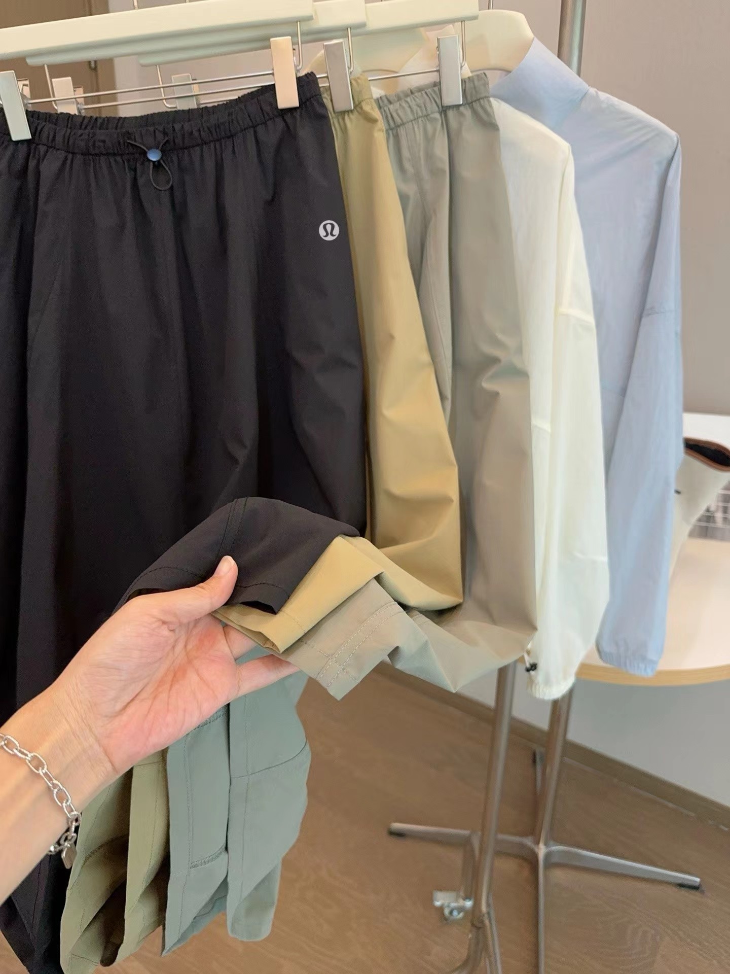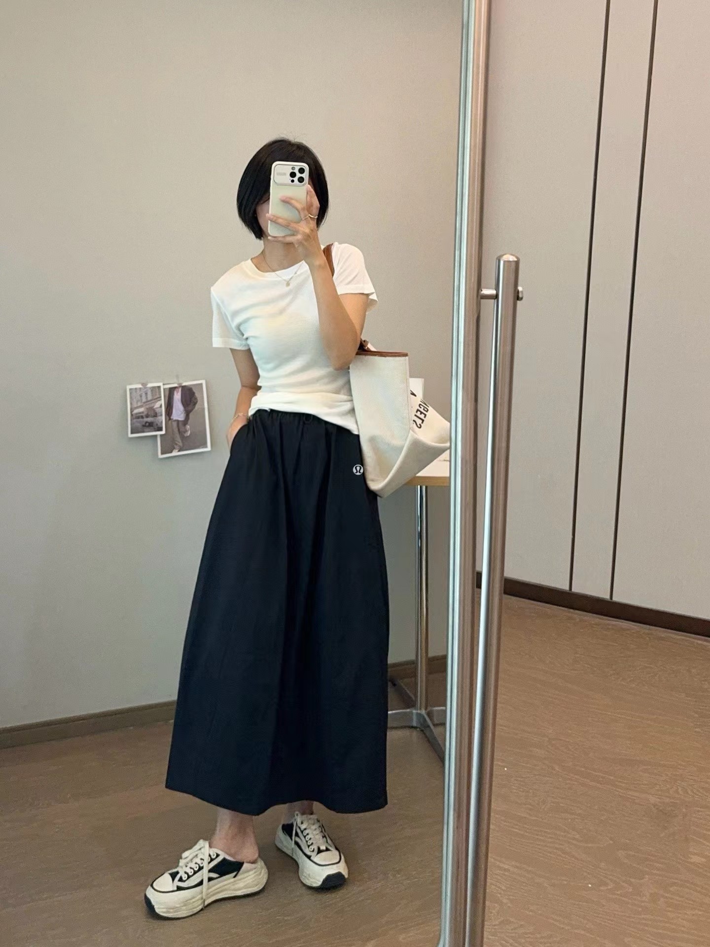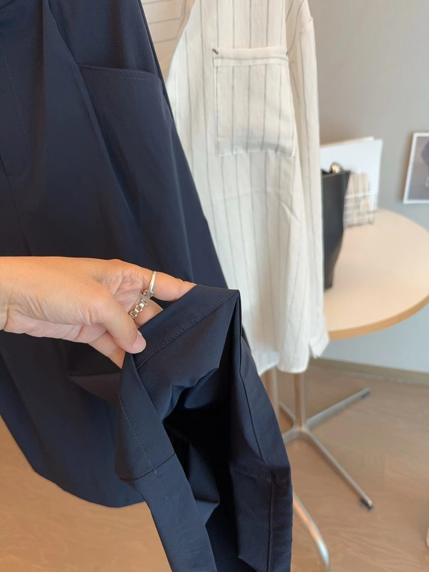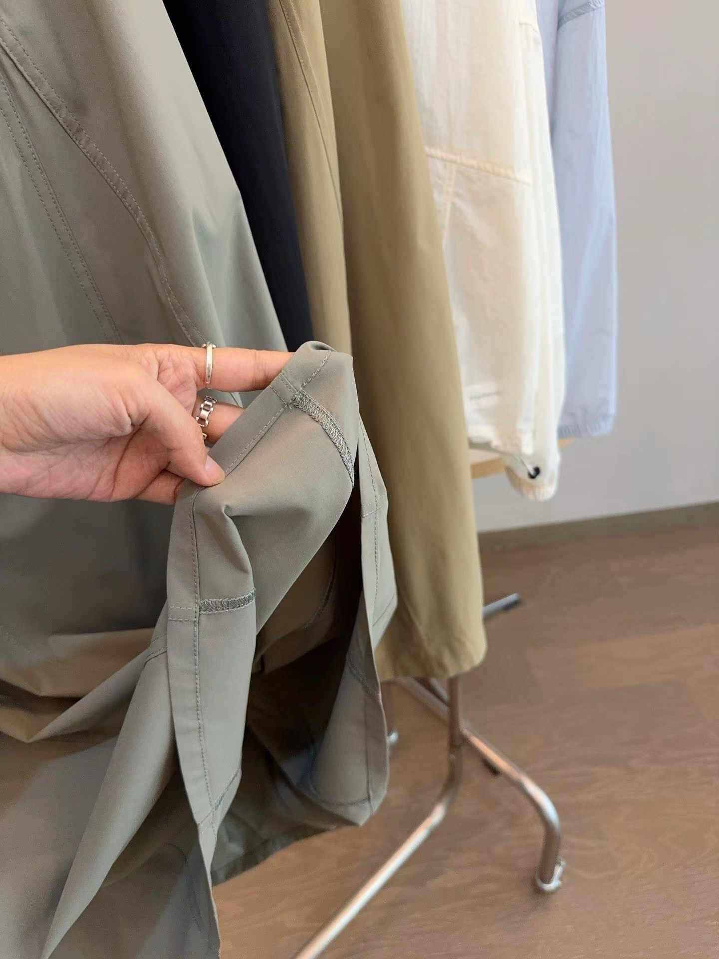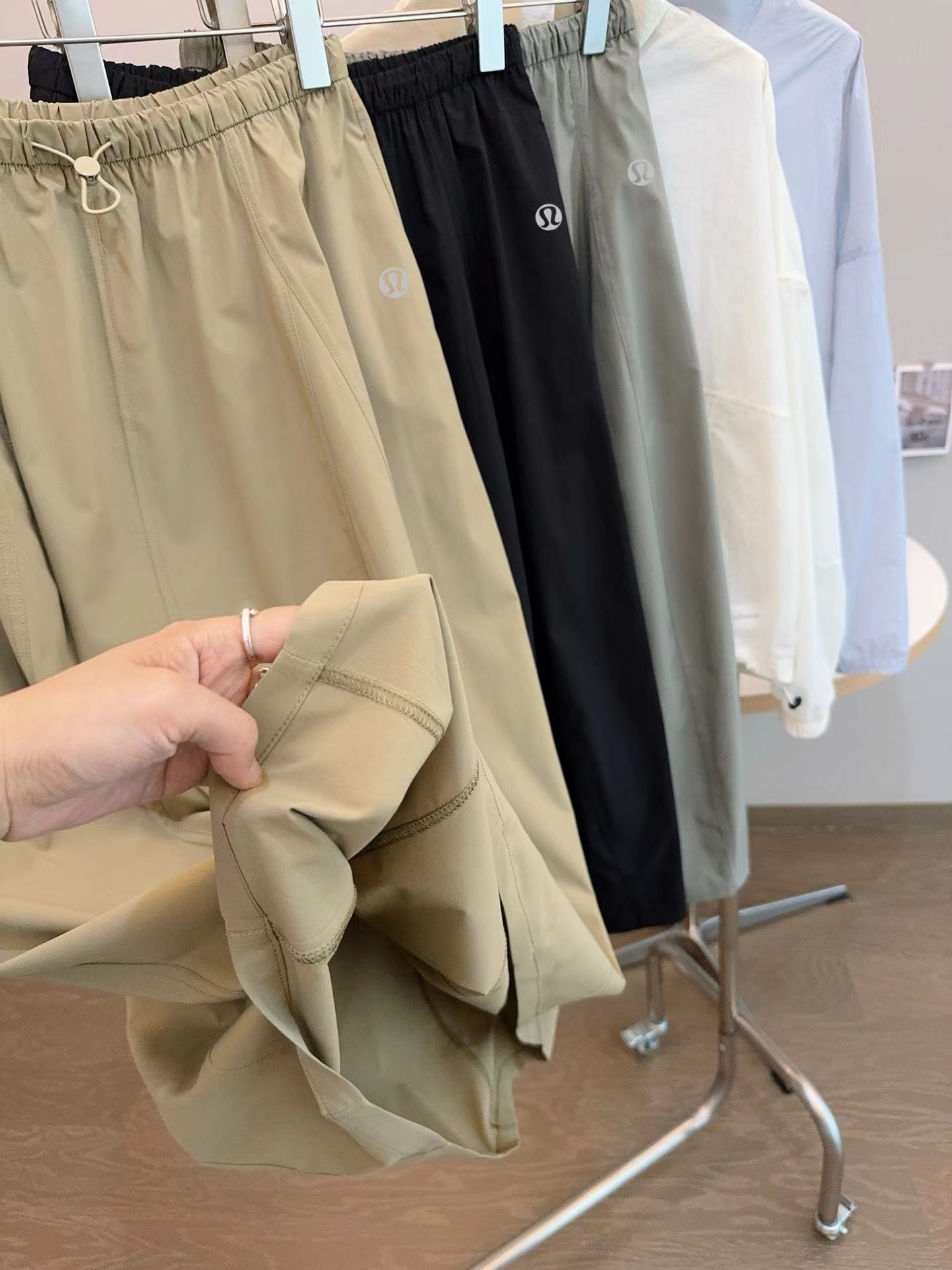 轻量复合防晒松紧腰A字宽松百搭工装半身裙,松紧腰设计?腰部细节做的非常好?没有任何毛边?内置弹力绳?可调节腰围?包容性更强?地雷扣点缀?更加时髦休闲?整体偏A字版型?裙身多处分割拼接?下摆微微内收?呈花苞状?非常显瘦又遮肉?裙长刚刚好到小腿肚的位置