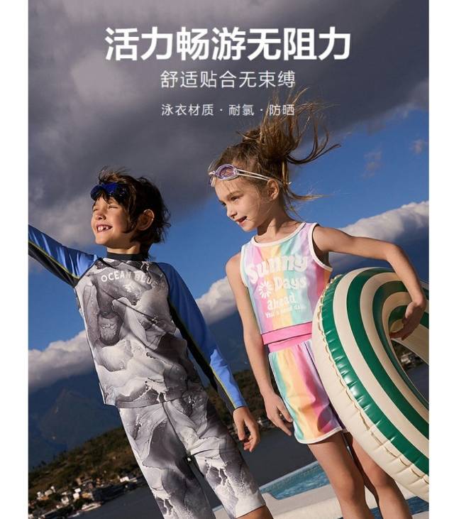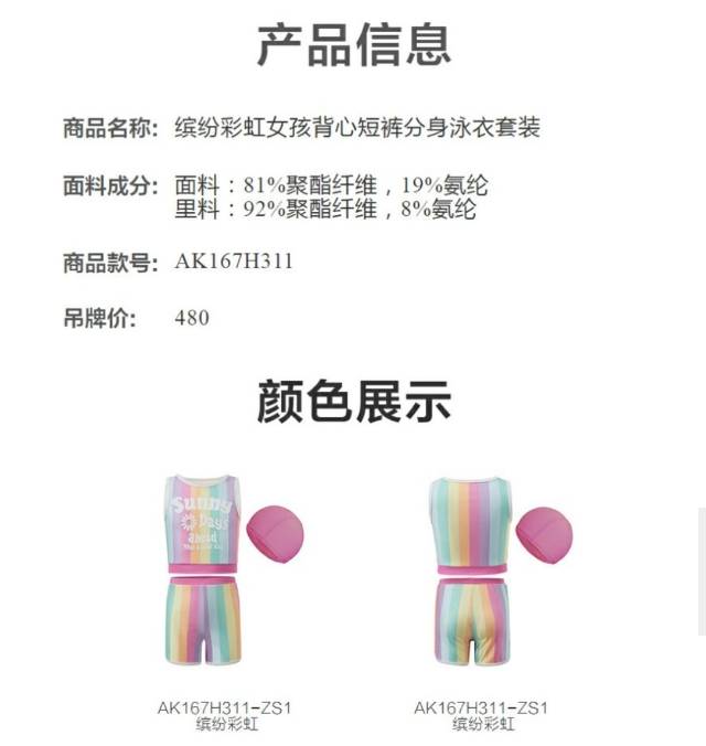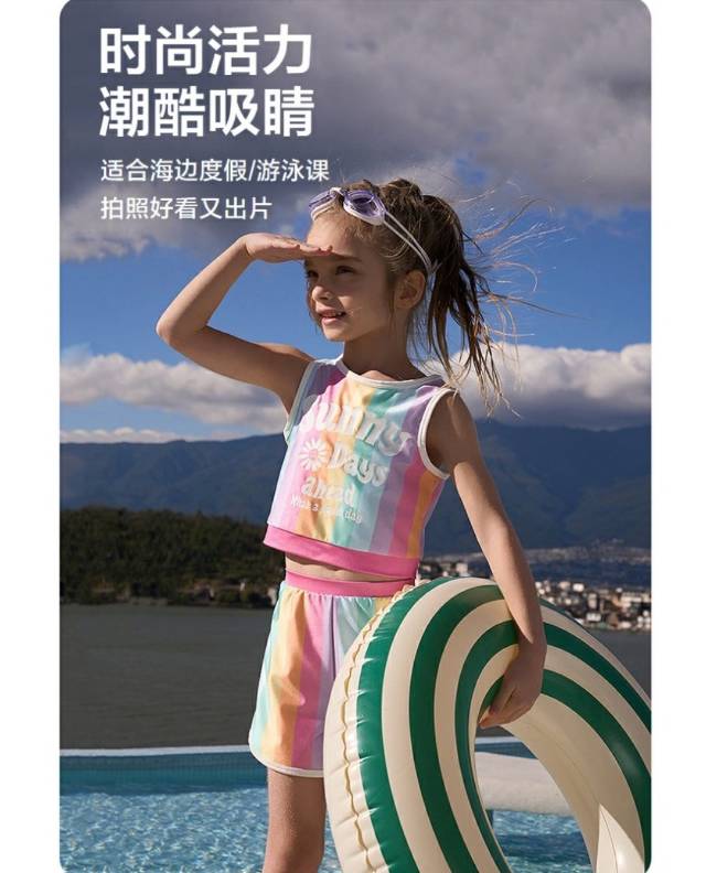 【春上新】8楼爱慕儿童Aimer Kids女孩3件装-缤纷彩虹背心短裤分身泳衣套装AK167H311,吊牌价480元