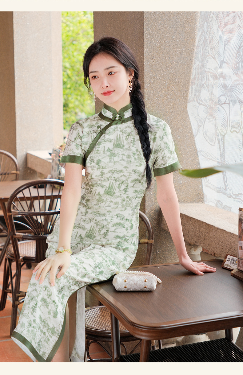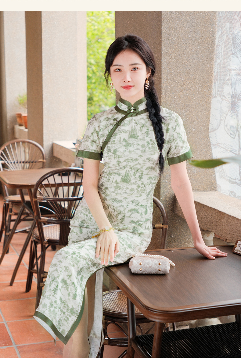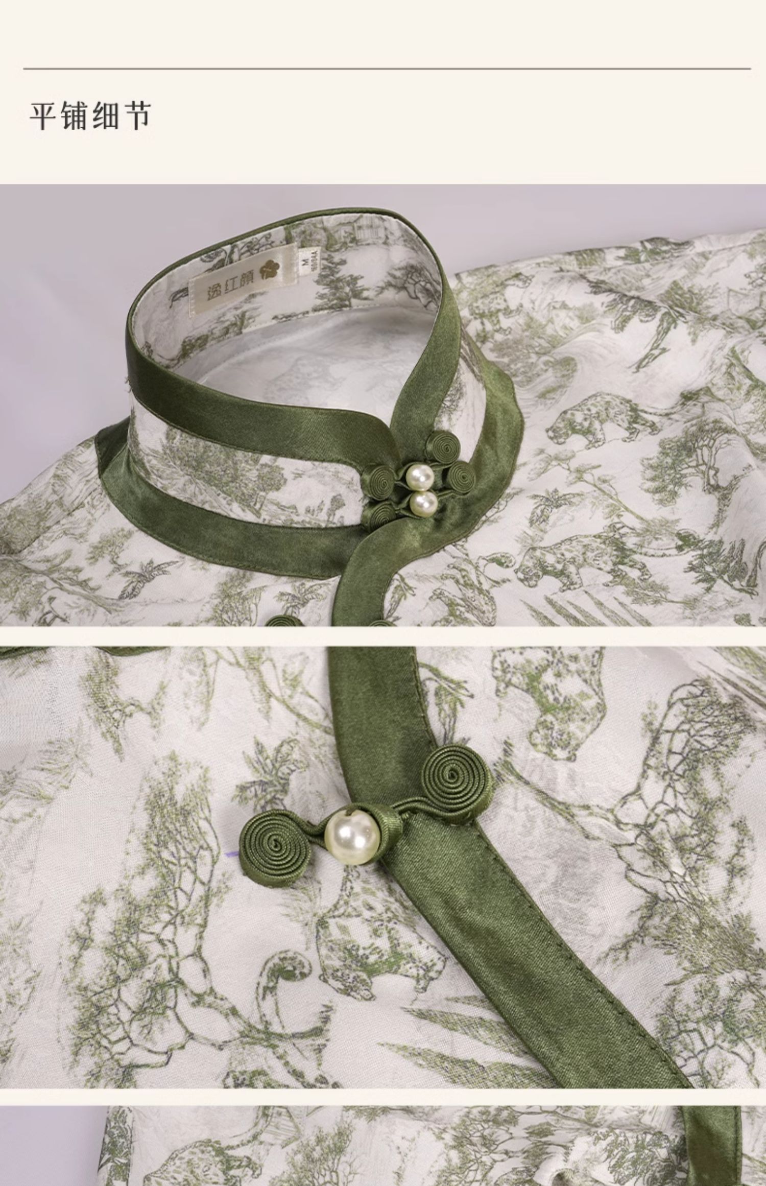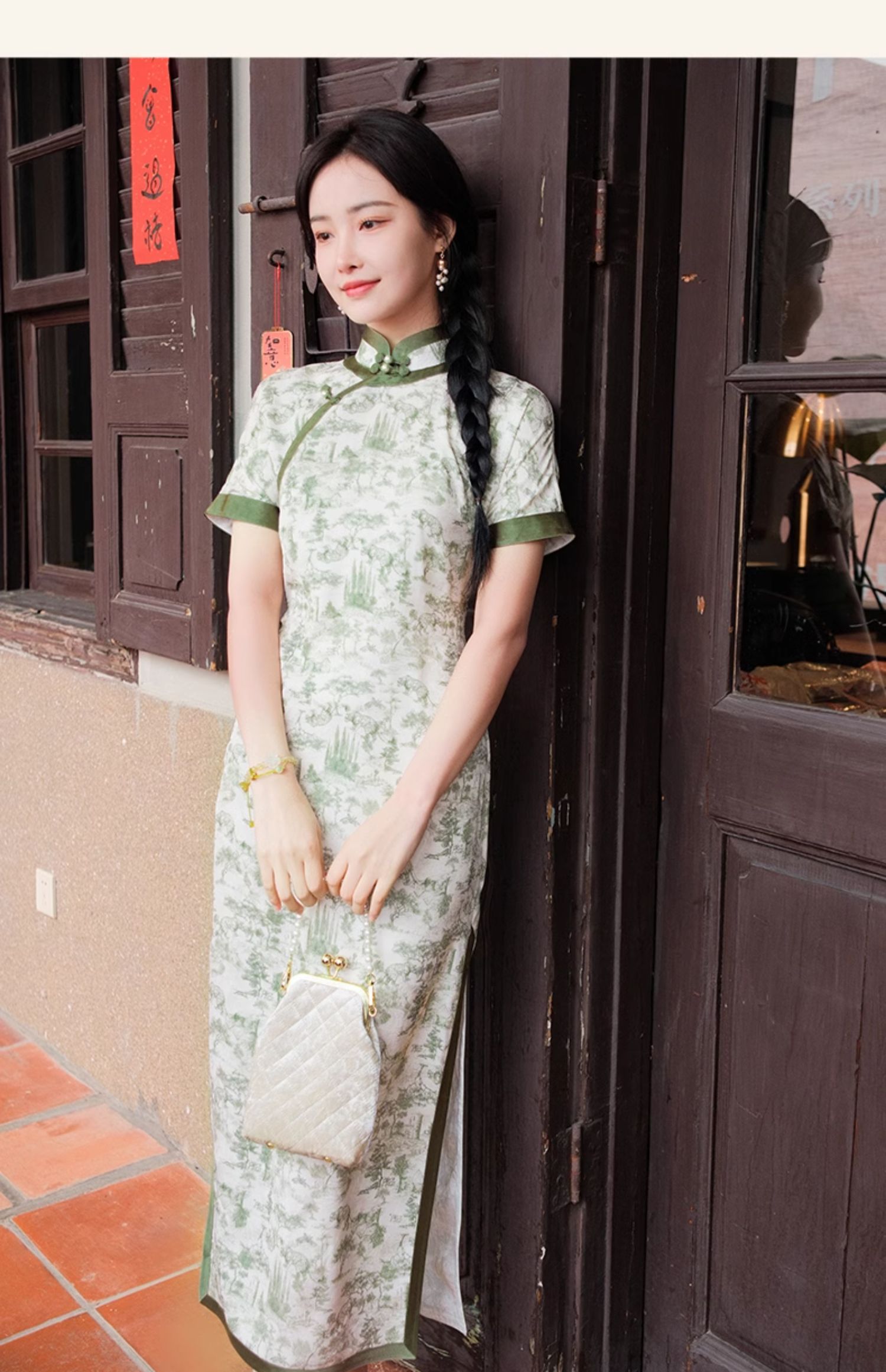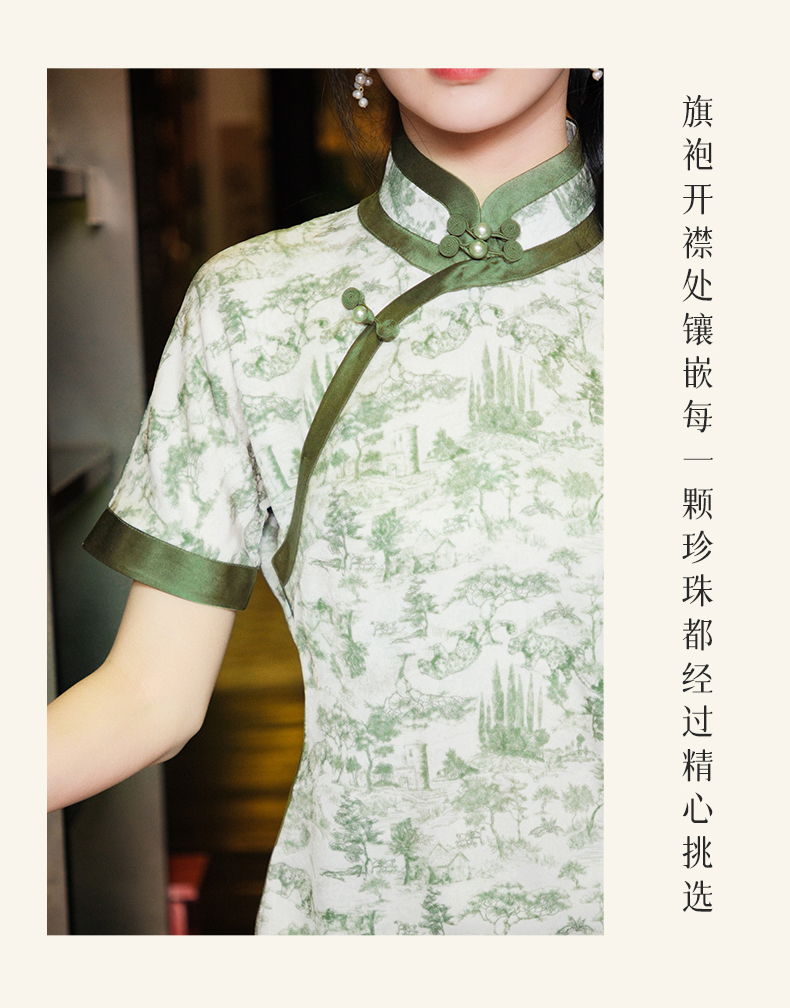 上海逸红颜清沐2025夏季新款提花手工醋酸圆襟包边新中式文艺旗袍