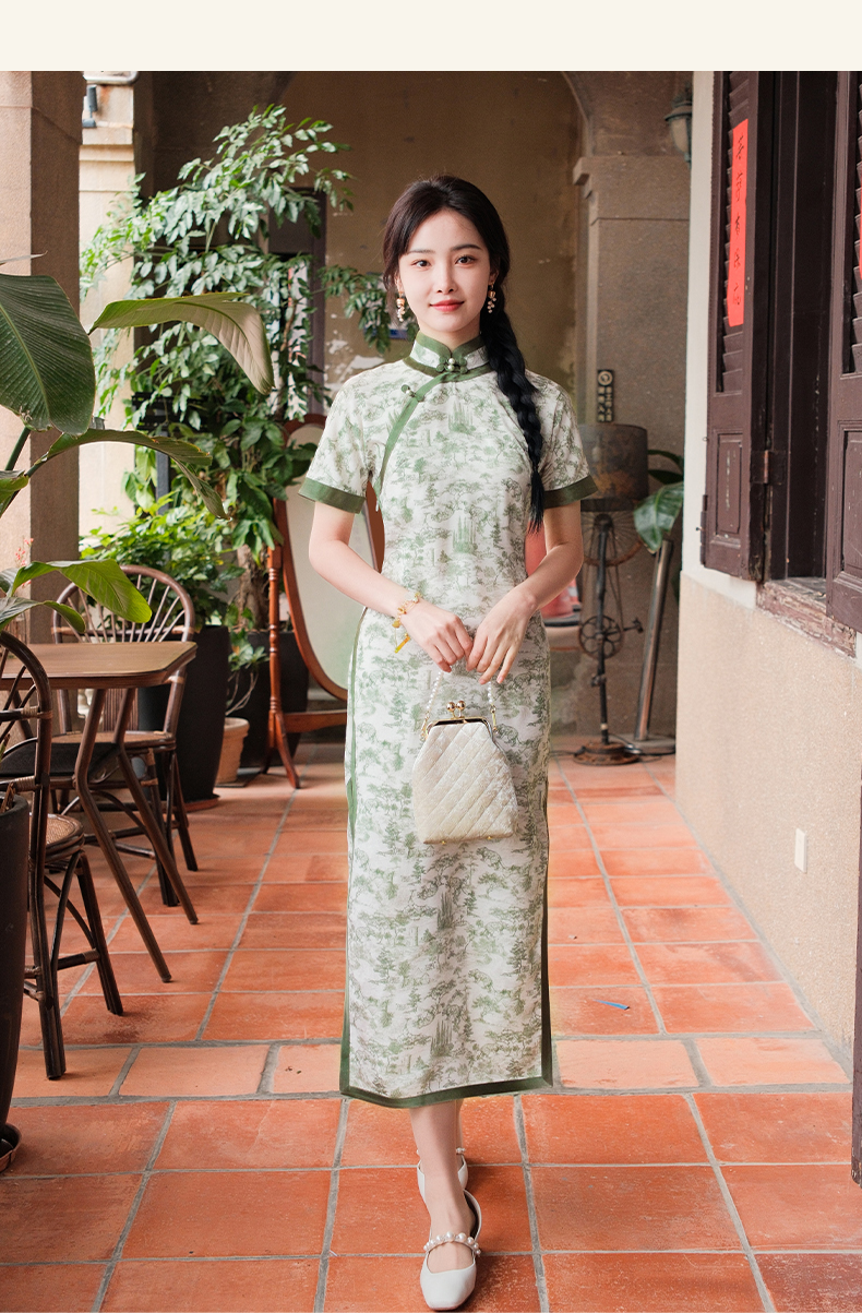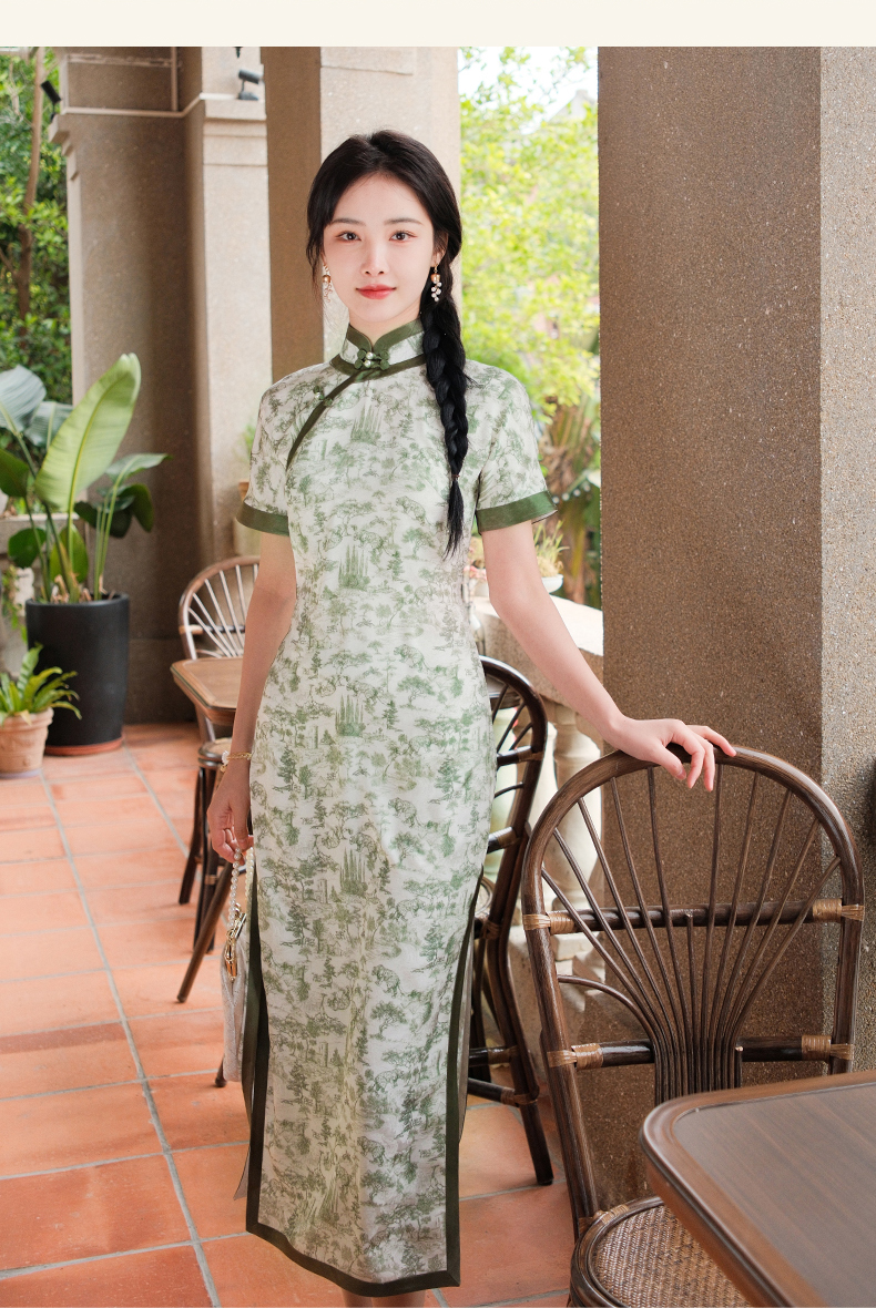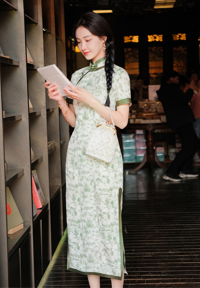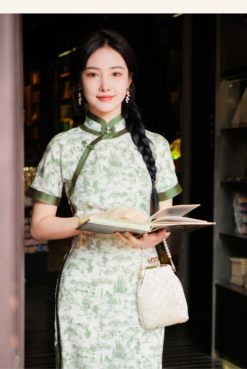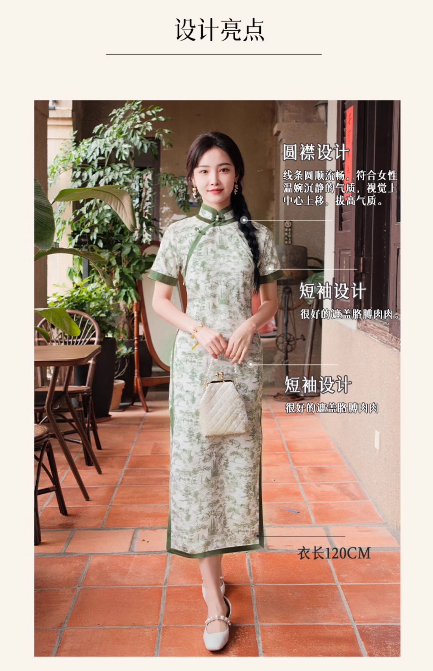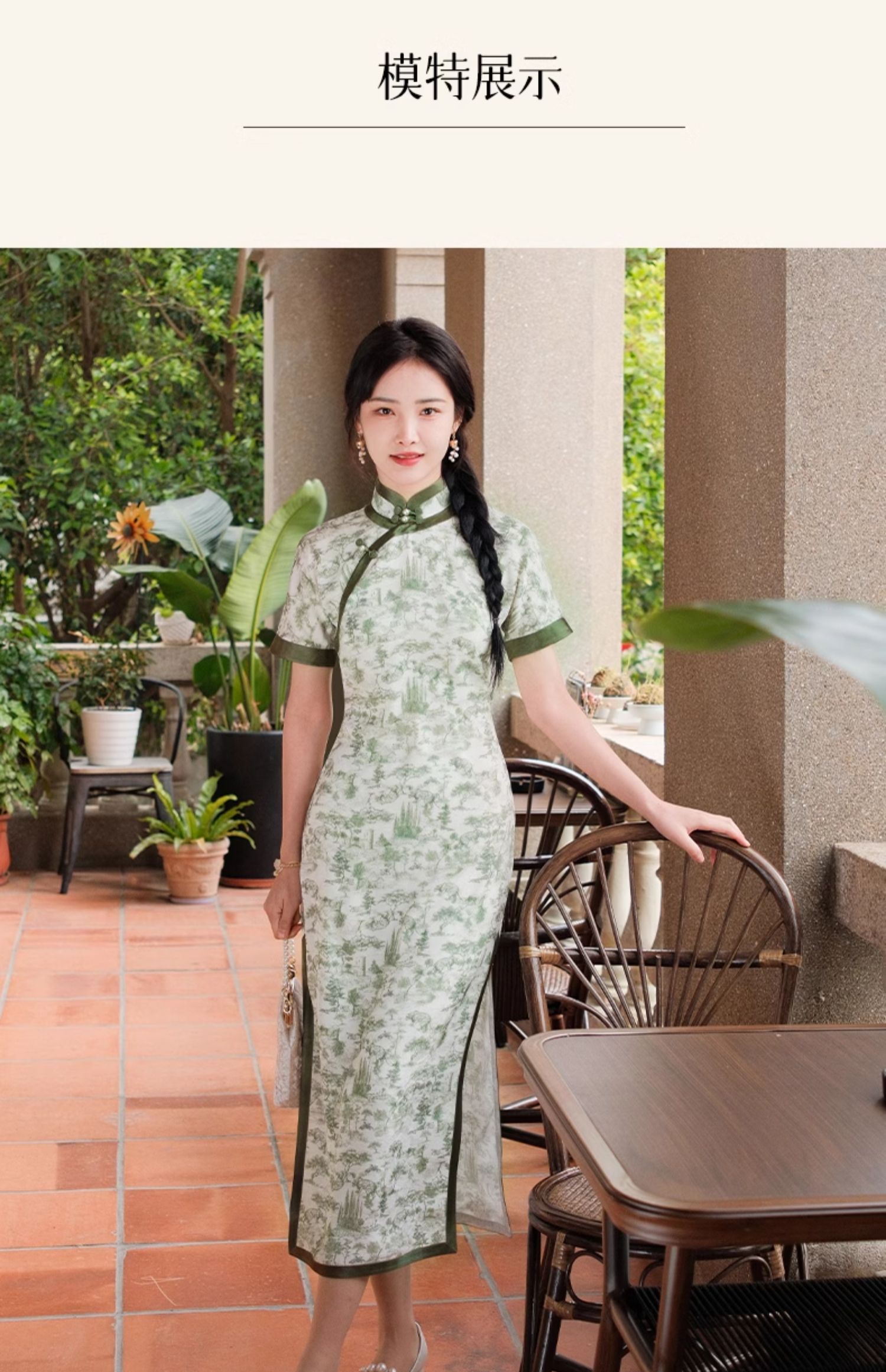 上海逸红颜清沐2025夏季新款提花手工醋酸圆襟包边新中式文艺旗袍
