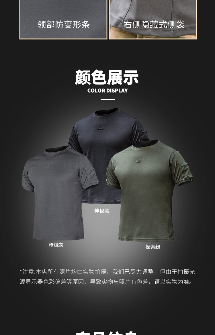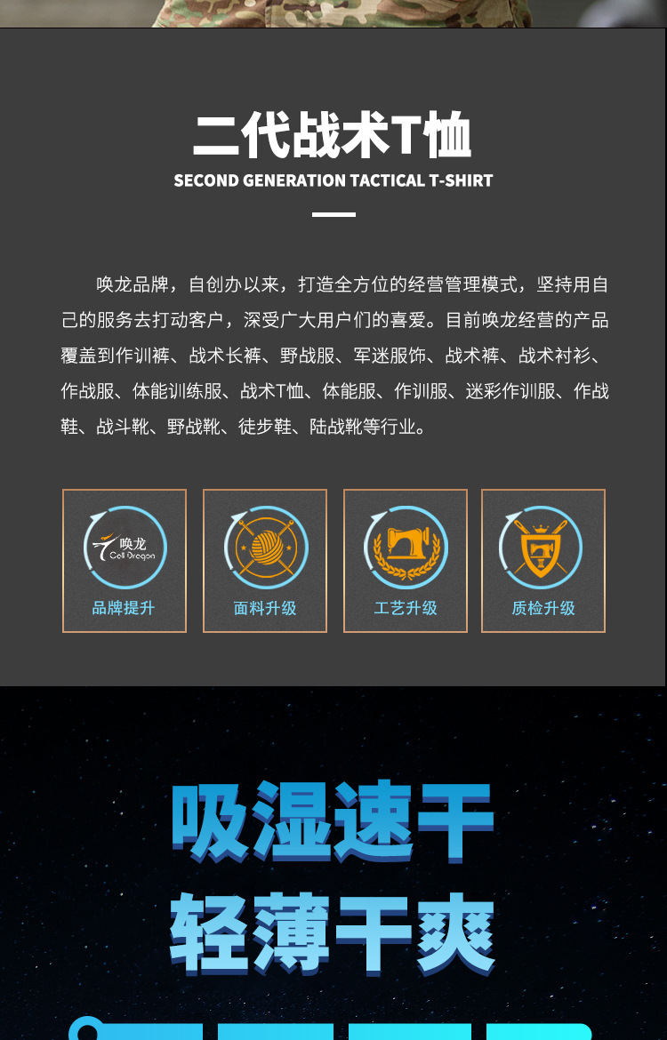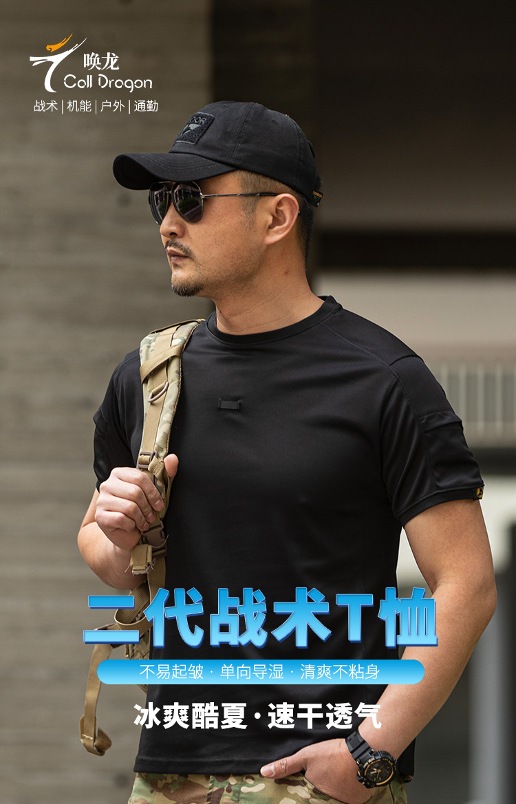 唤龙圆领2代速干短袖男款夏季战术户外速干衣带口袋快干运动衣T恤