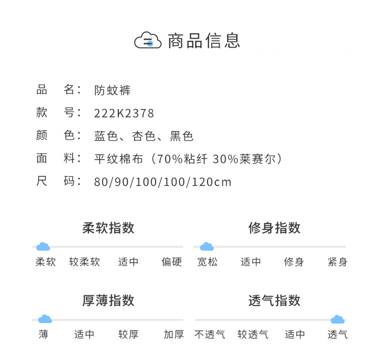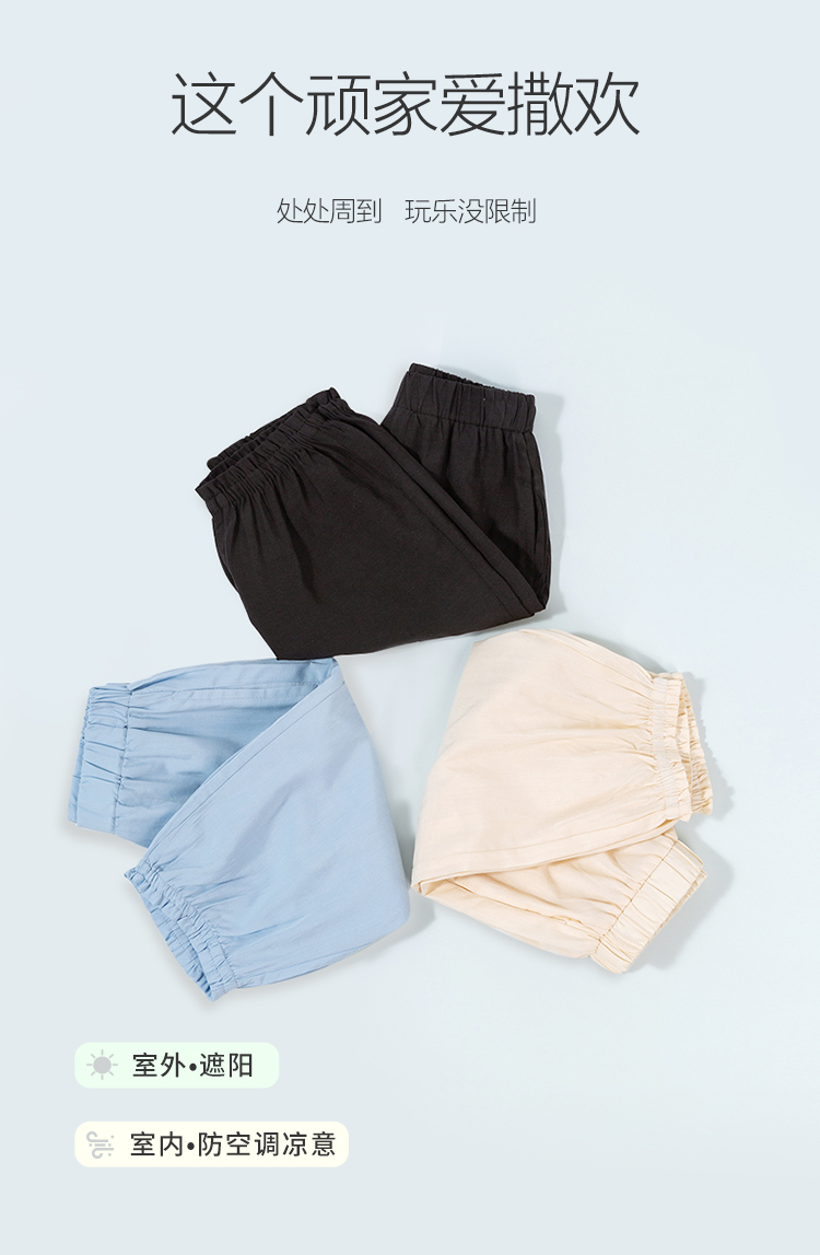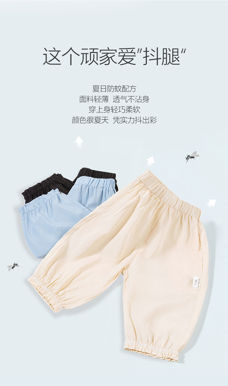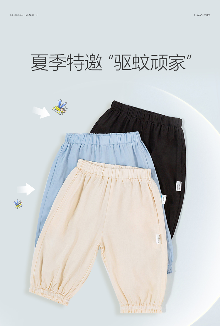 贝贝怡夏季儿童薄款休闲裤新款女童七分防蚊裤清凉时尚裤子222K2378