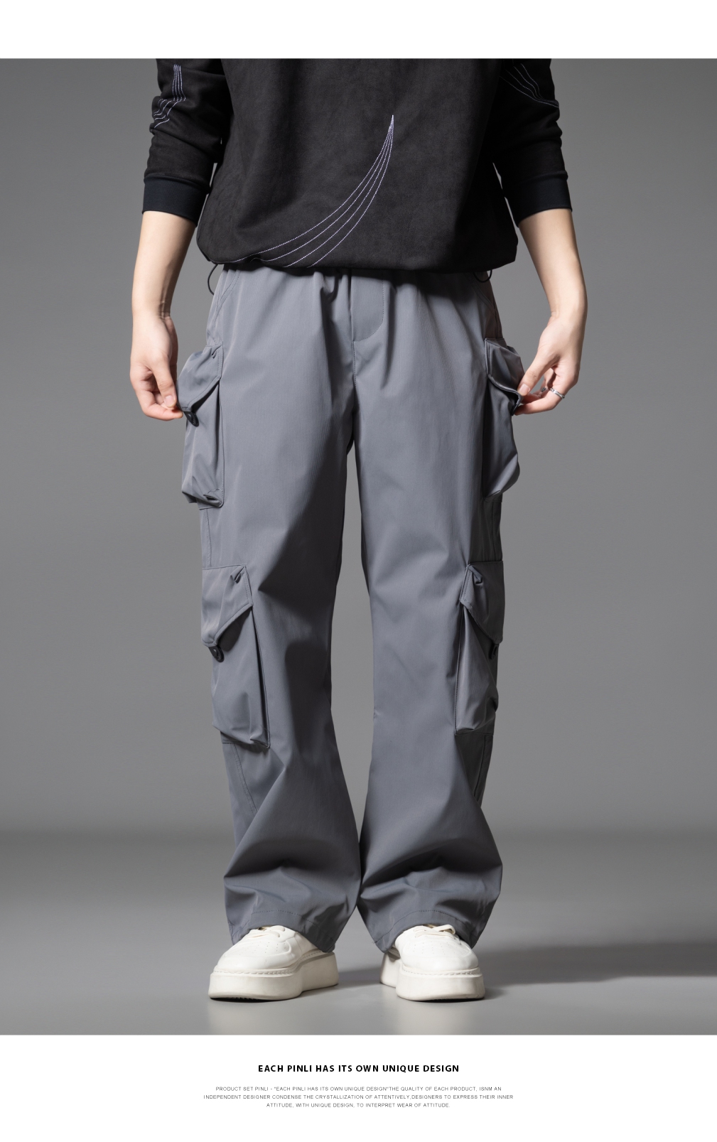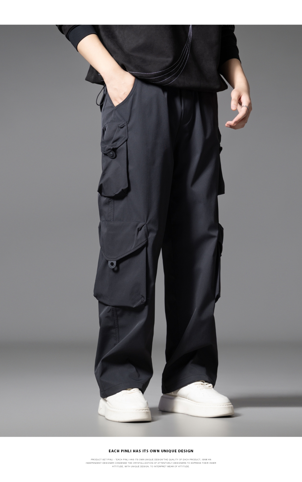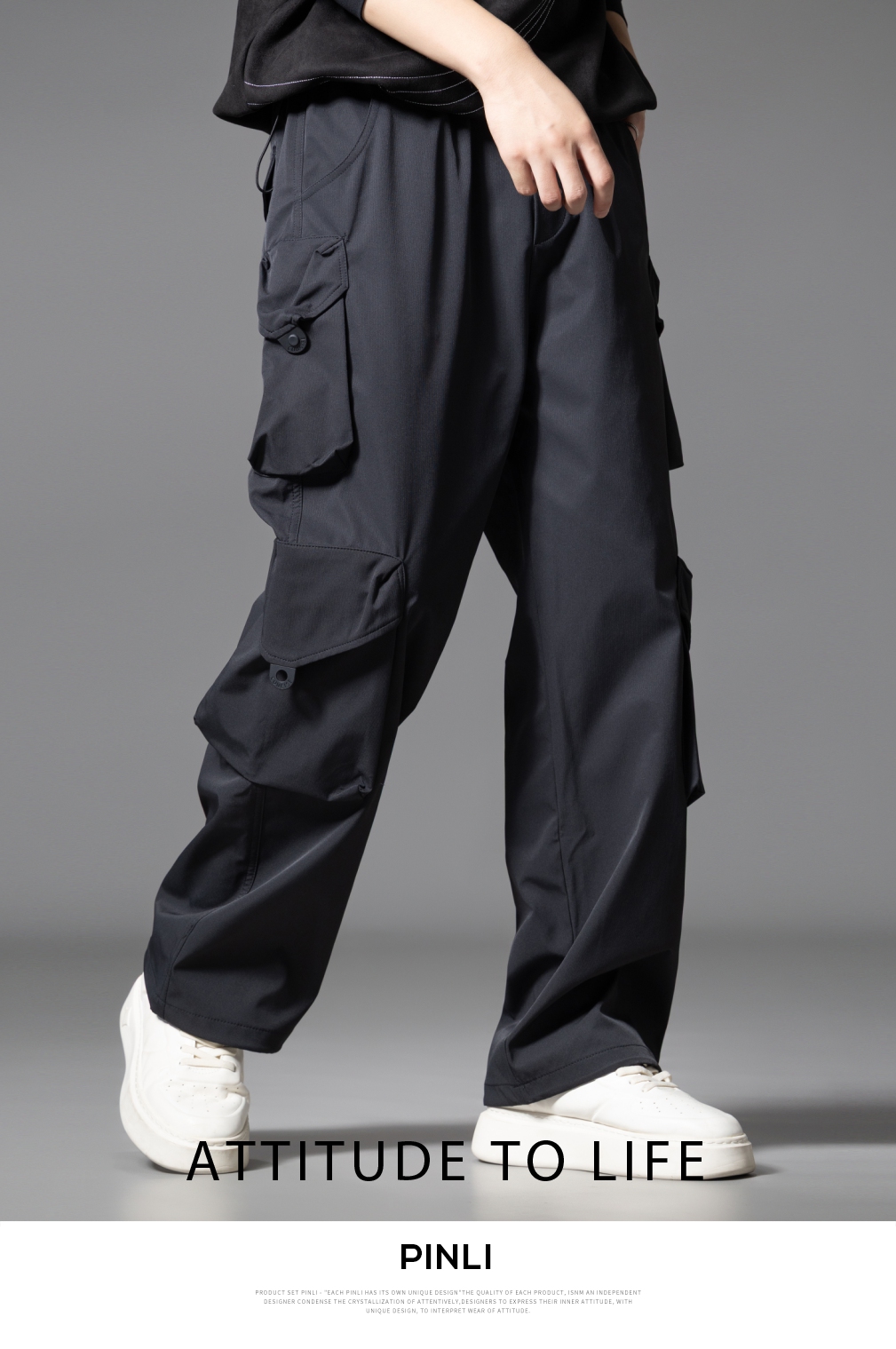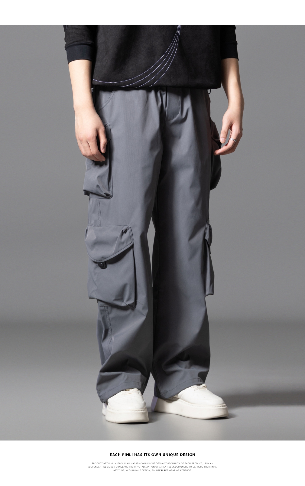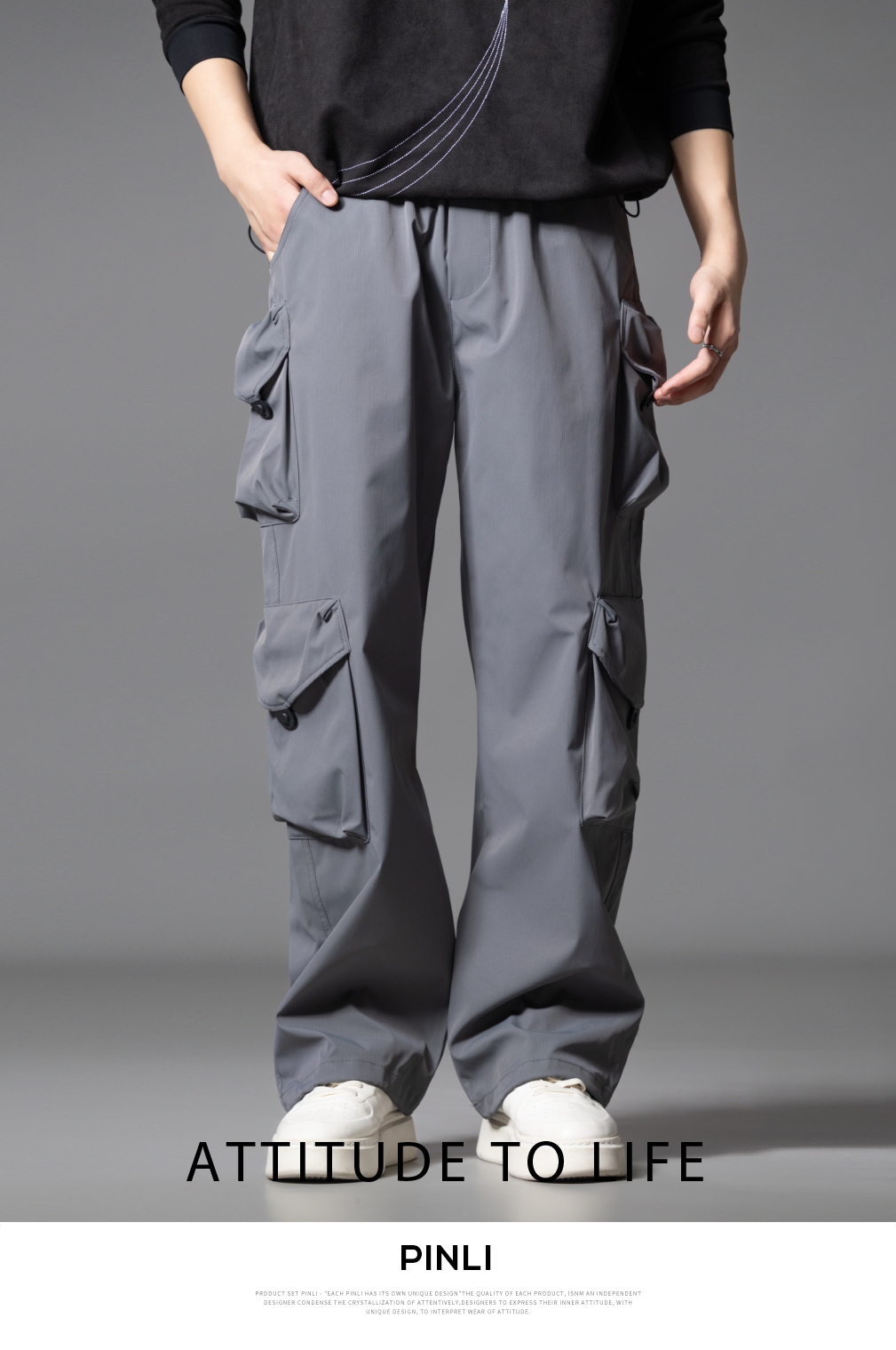 PINLI品立2025秋季新款潮牌户外工装裤男多口袋宽松直筒休闲长裤GD253117014