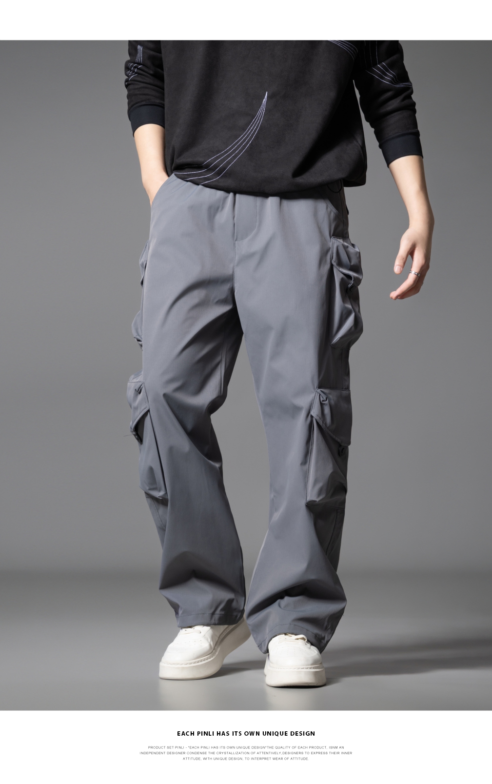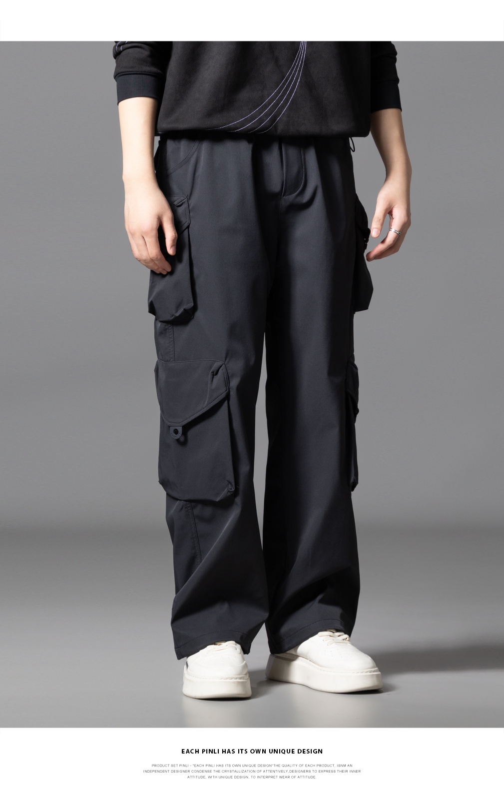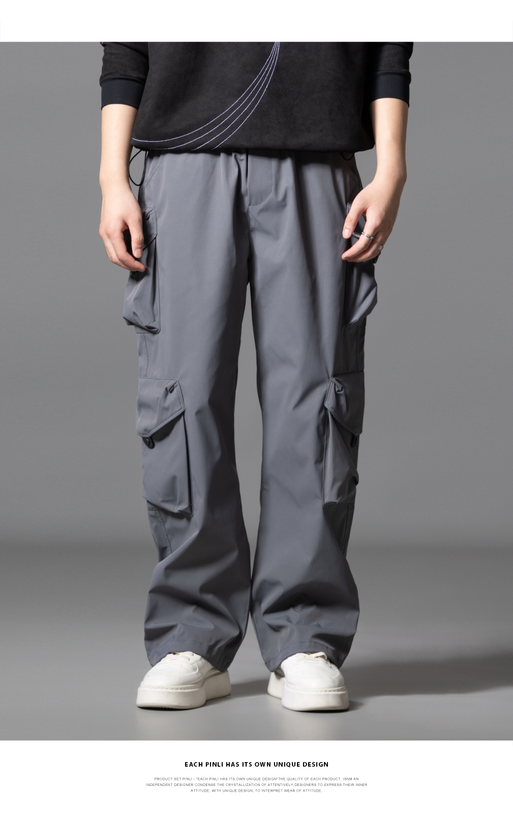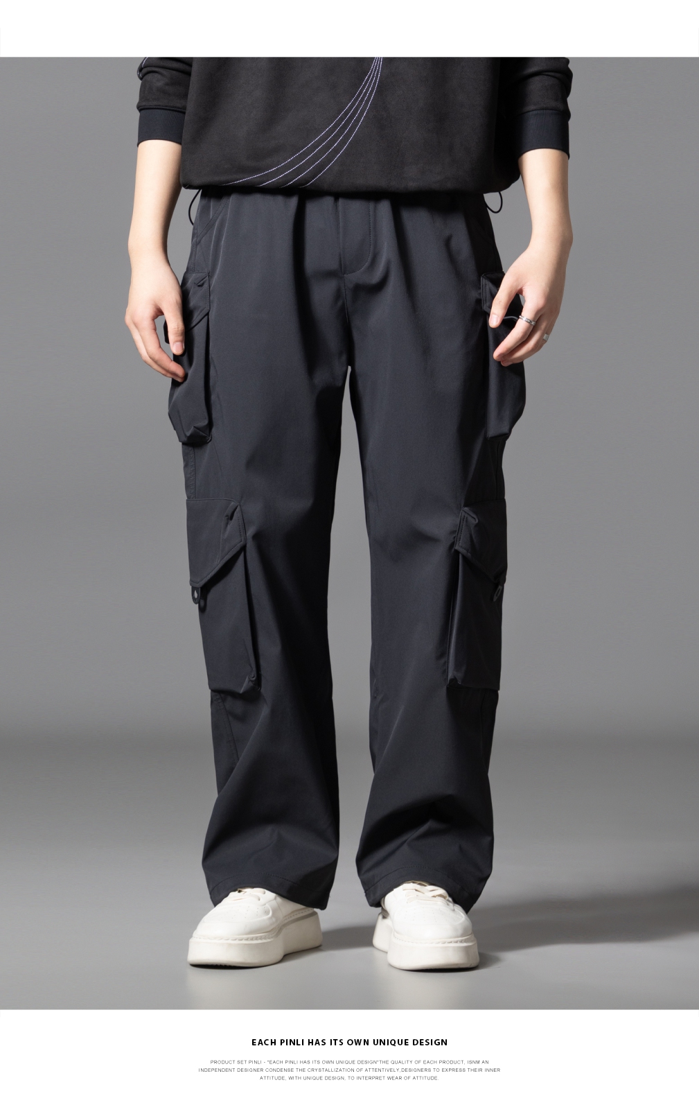 PINLI品立2025秋季新款潮牌户外工装裤男多口袋宽松直筒休闲长裤GD253117014