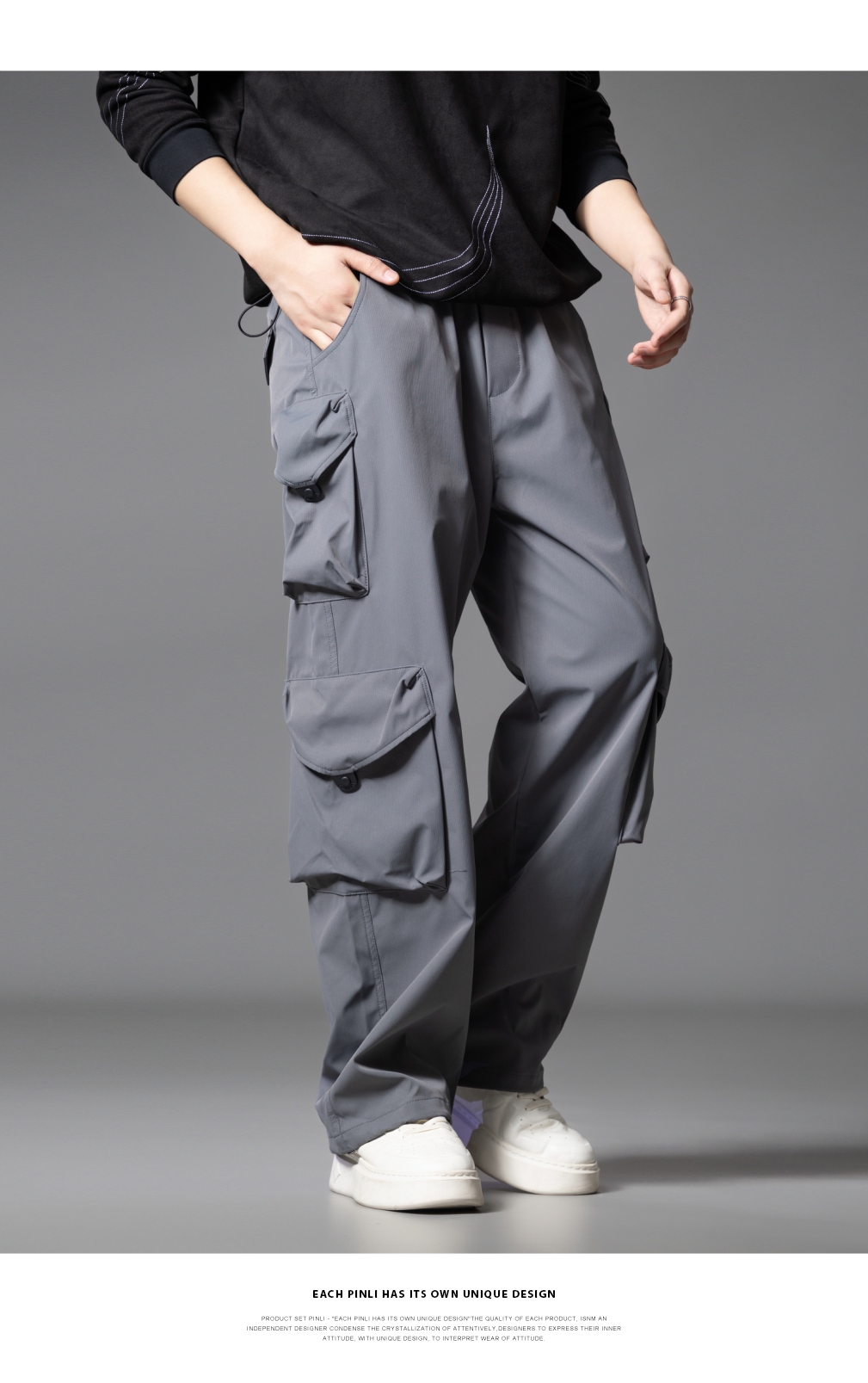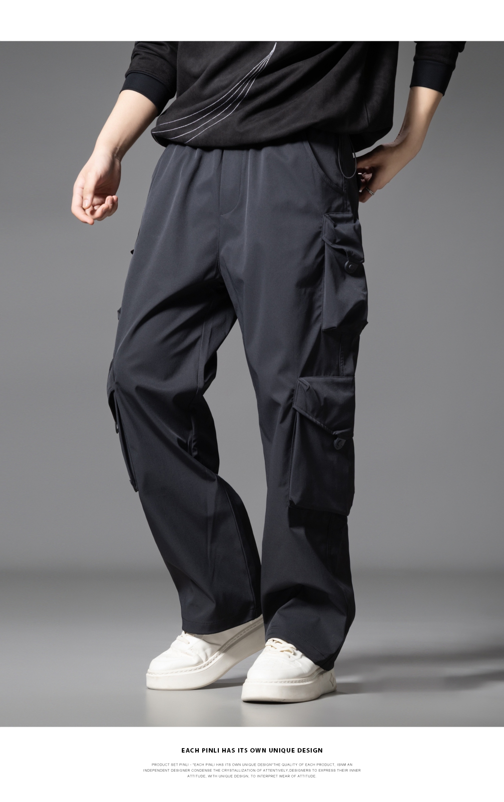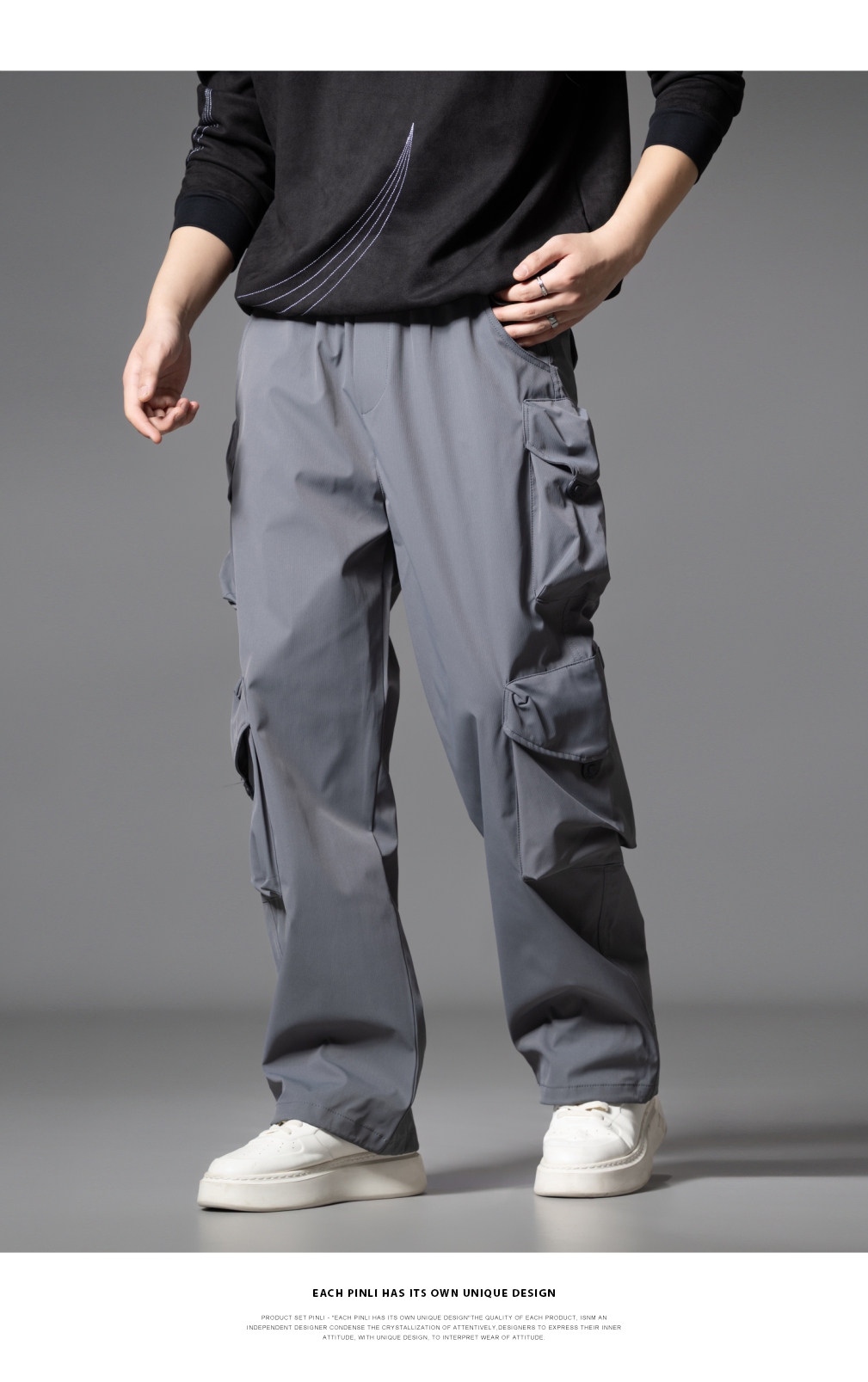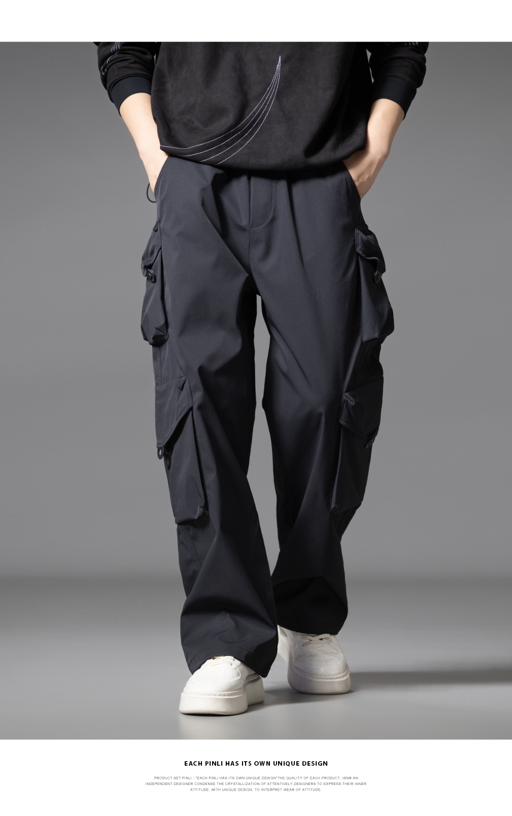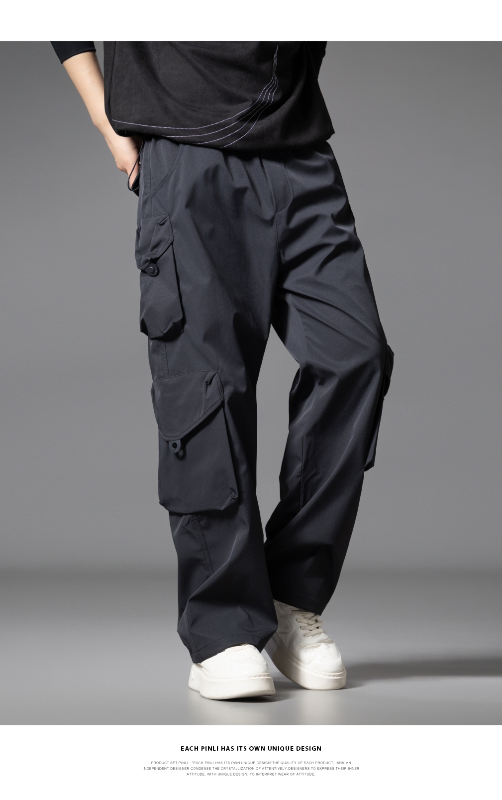 PINLI品立2025秋季新款潮牌户外工装裤男多口袋宽松直筒休闲长裤GD253117014