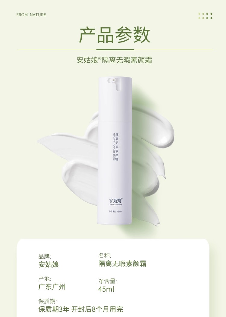 隔离无瑕素颜霜 植物自然不假白轻遮瑕 提亮肤色清透安姑娘净素