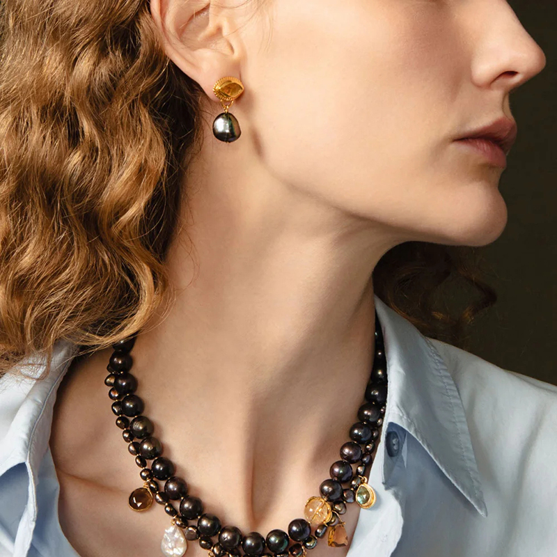 订购6周到|Chan Luu-Gaze-马眼形 淡水珍珠 黄水晶 吊坠 耳环[美国设计师]