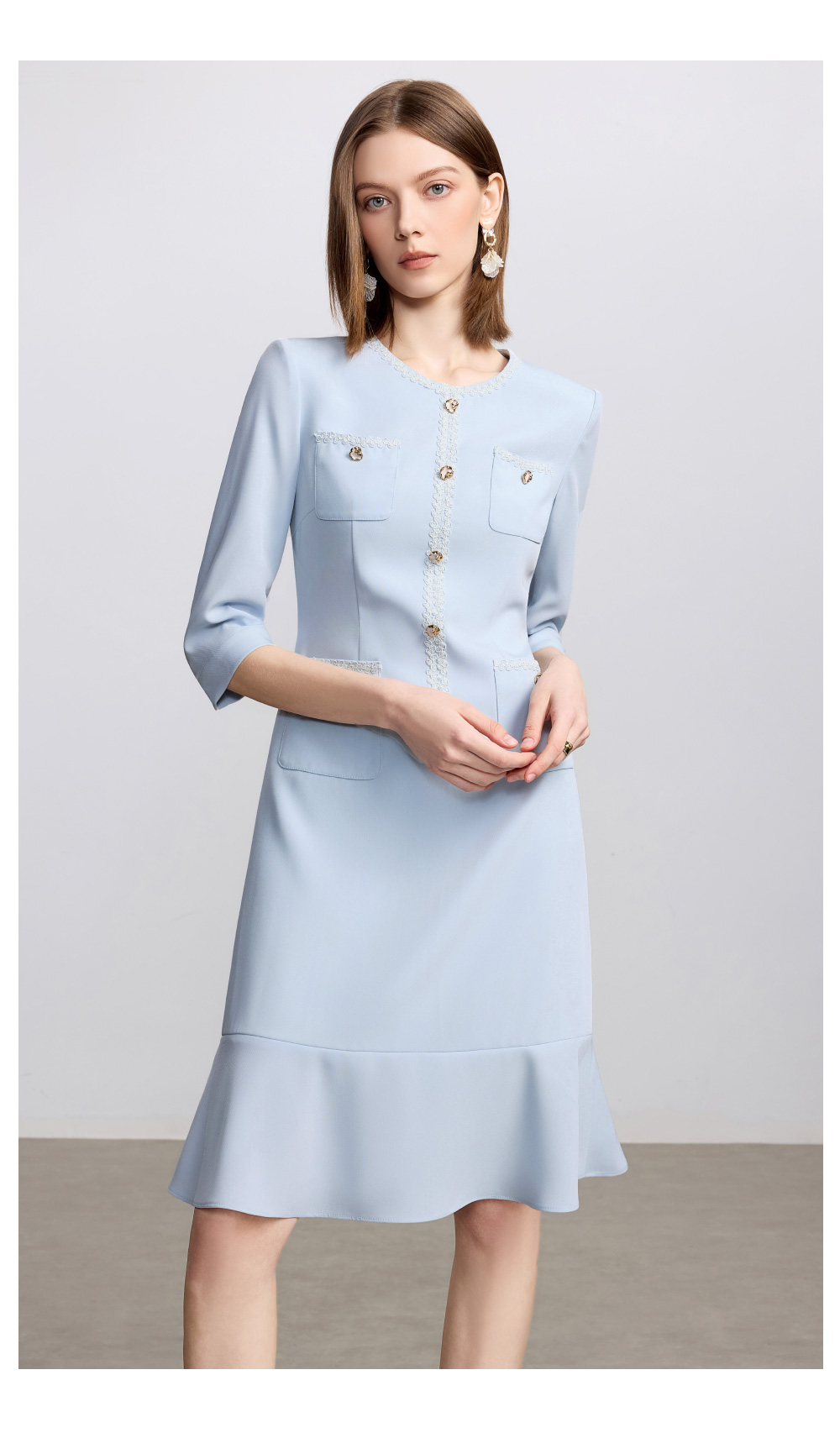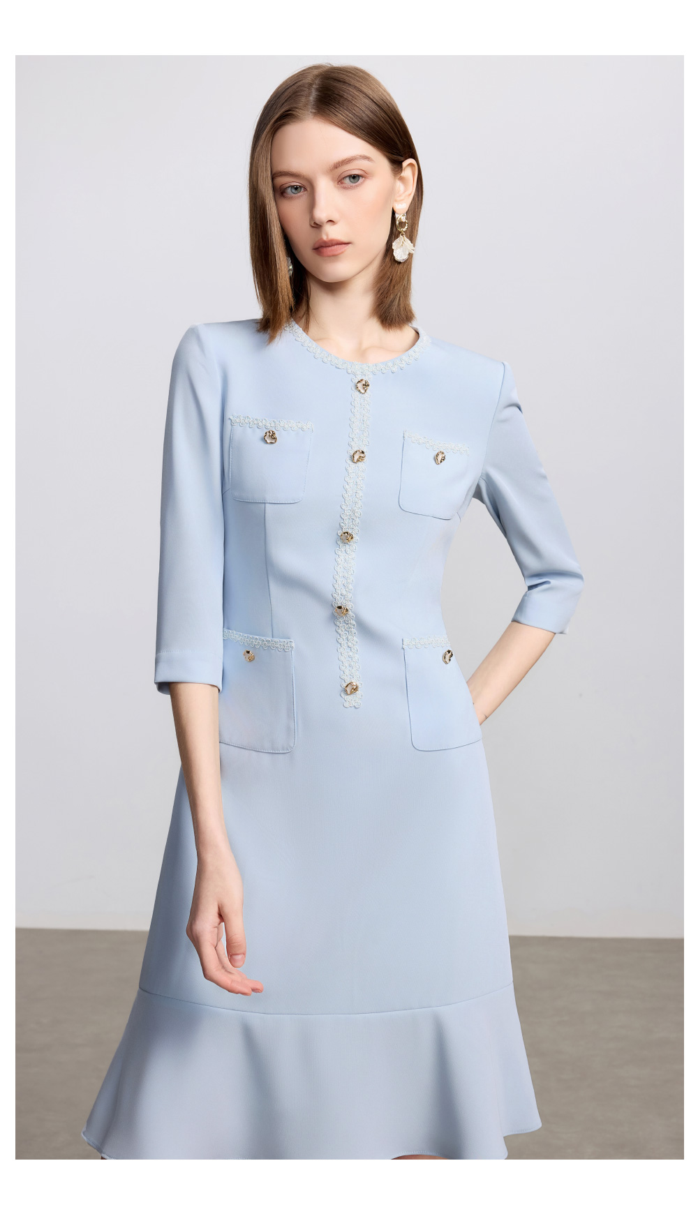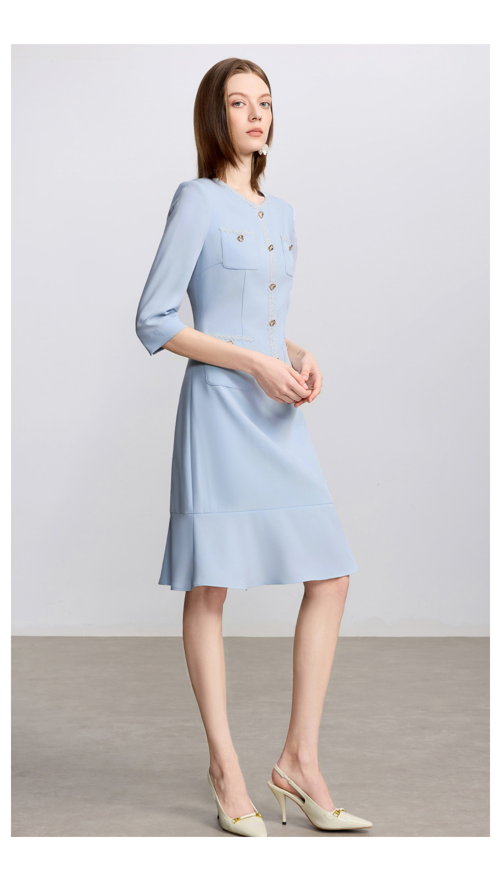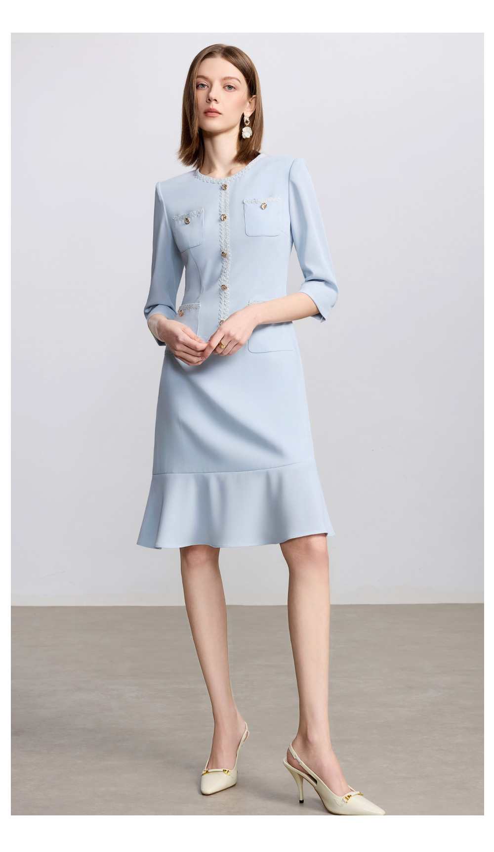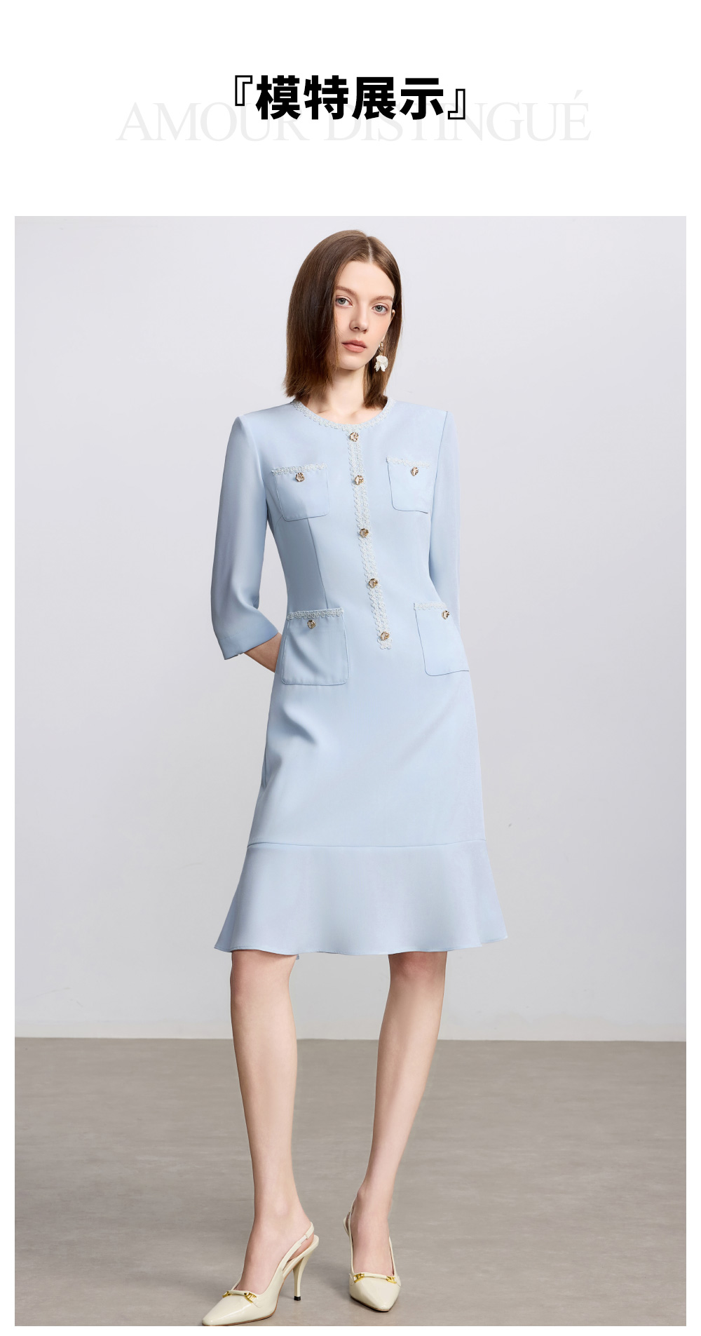 AD小香风圆领连衣裙女夏季新款收腰显瘦小个子高端通勤工作服西服
