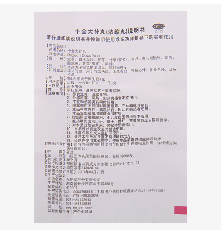 九芝堂十全大补丸200丸温补气血两虚面色苍白气短心悸头晕自汗