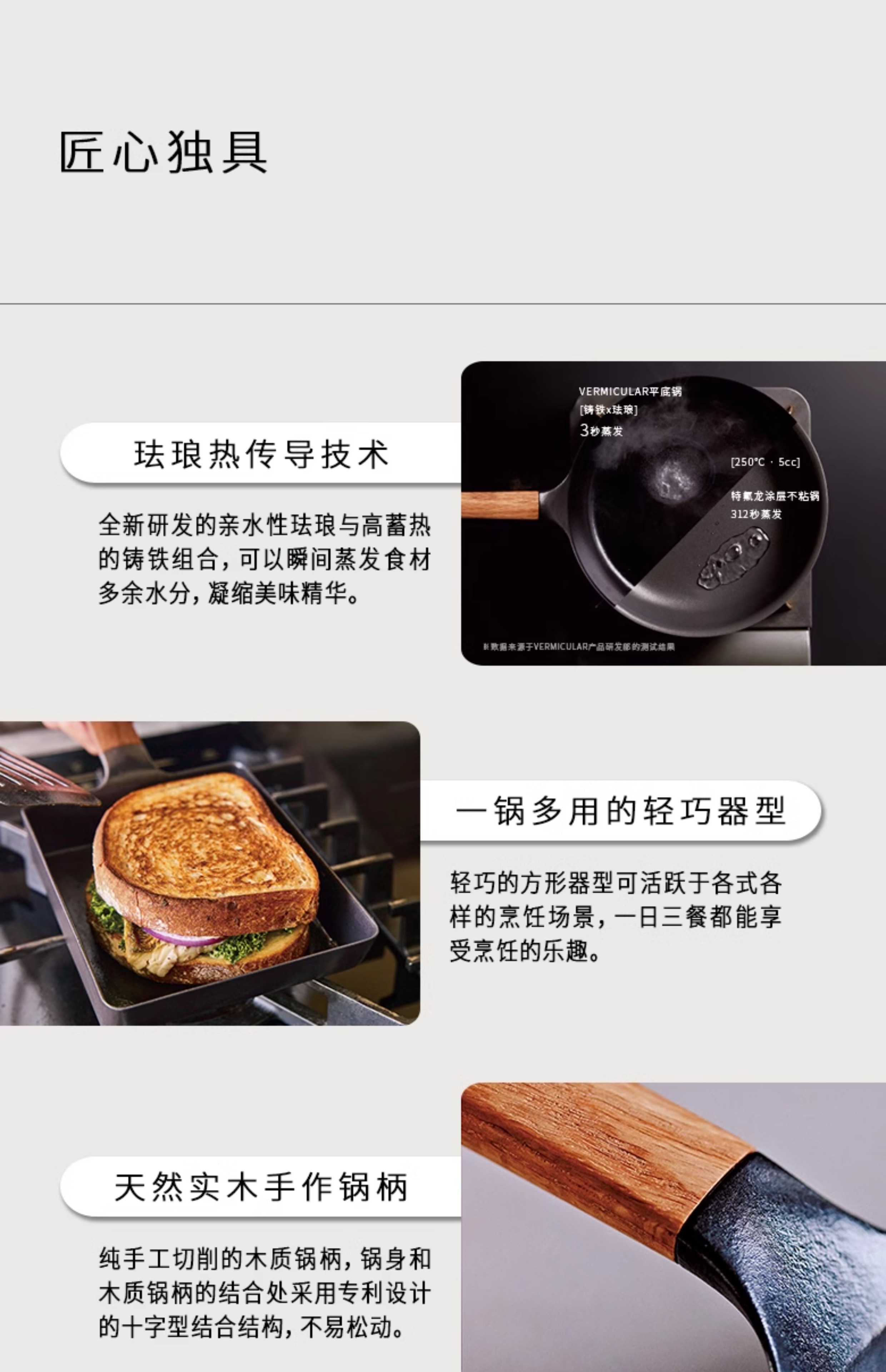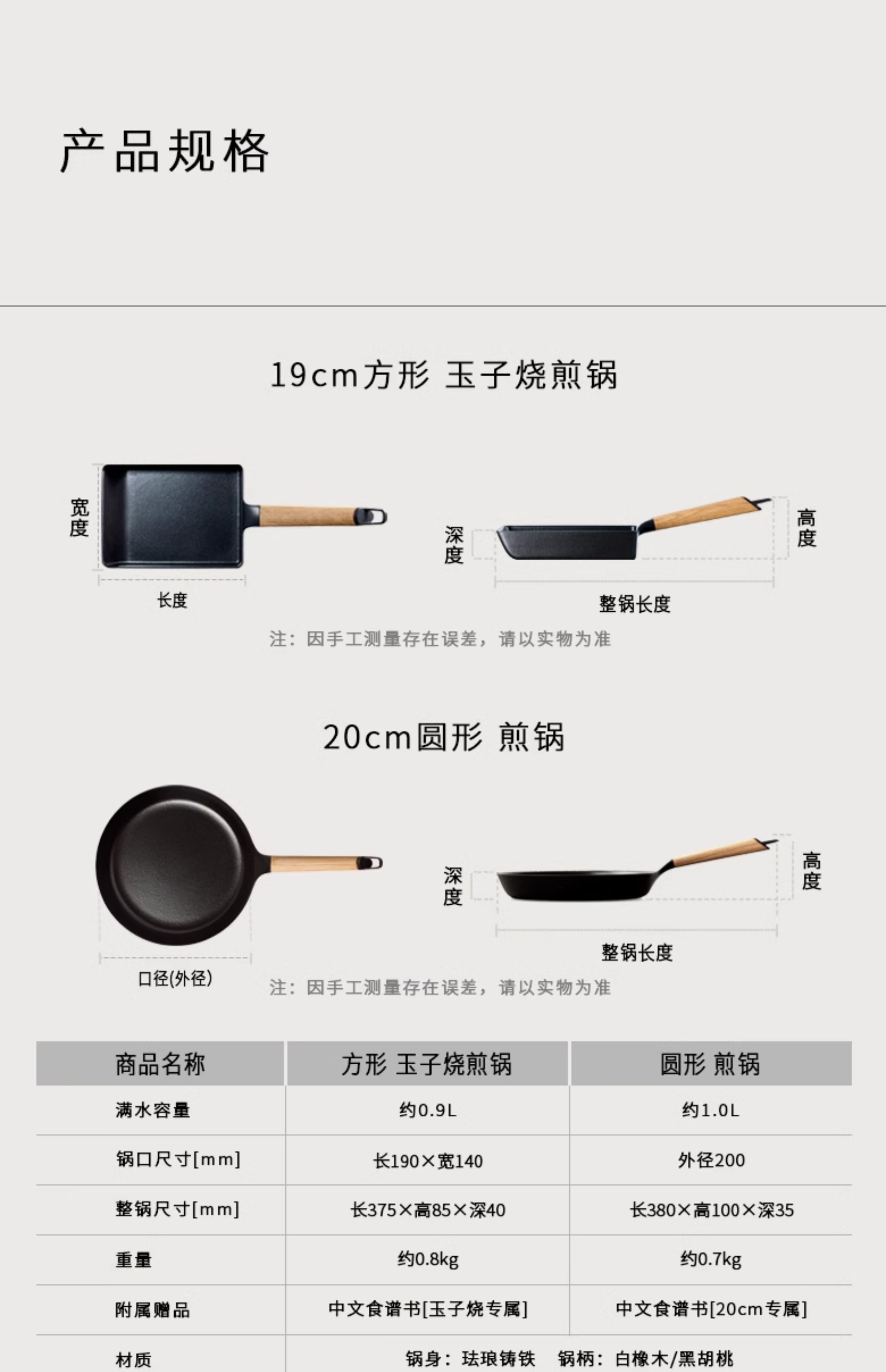 【小煎锅】日本唯米乐珐琅铸铁平底锅方形玉子烧厚蛋烧锅早餐小锅