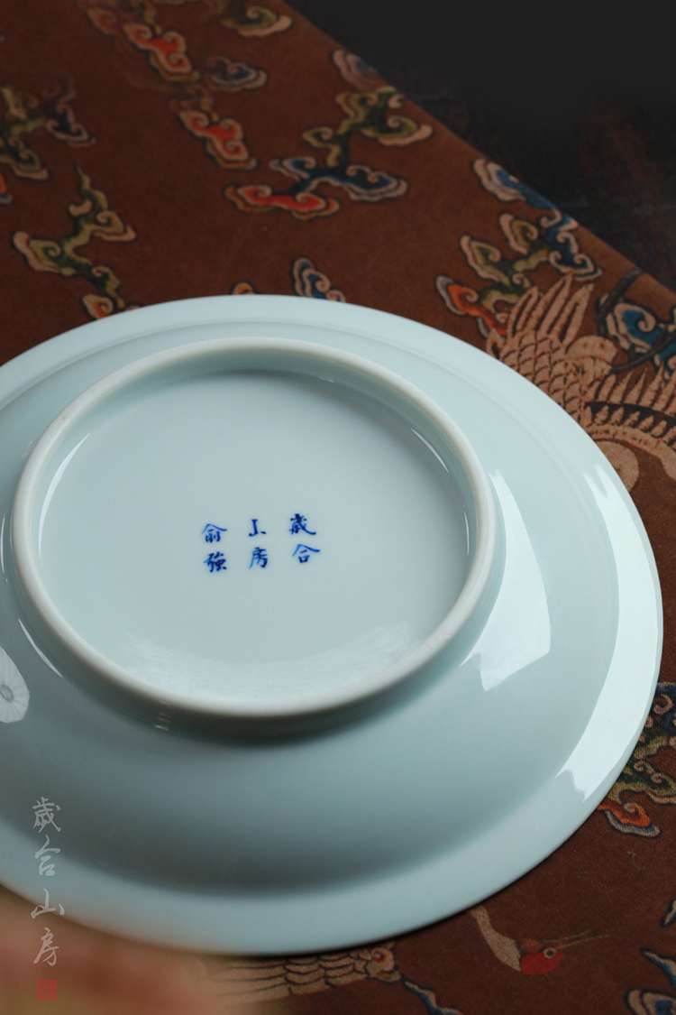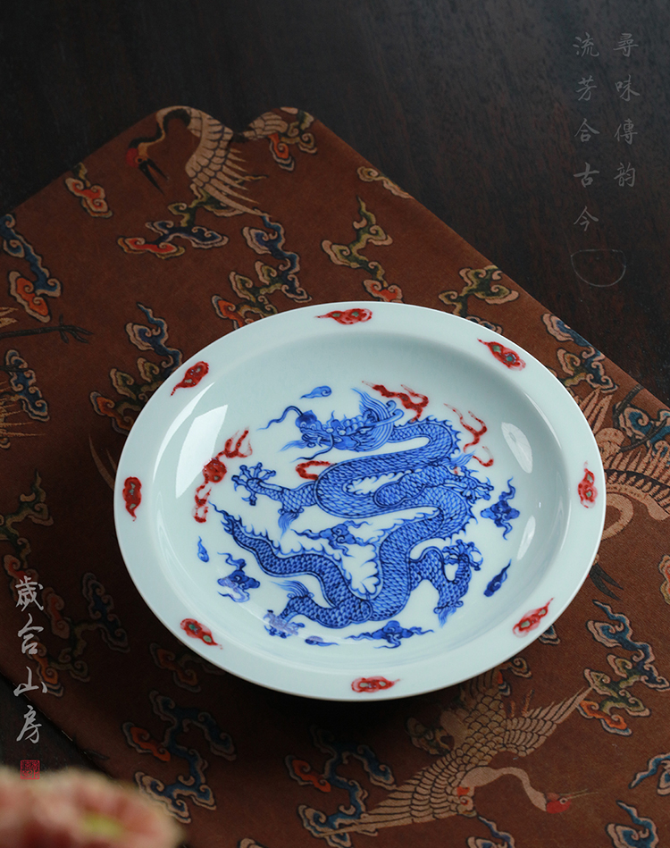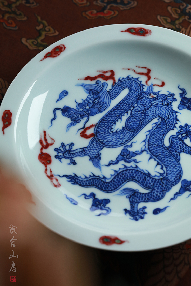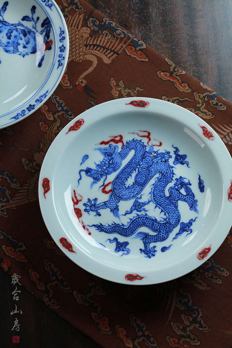 歲合山房俞强款青花釉里红龙纹盘