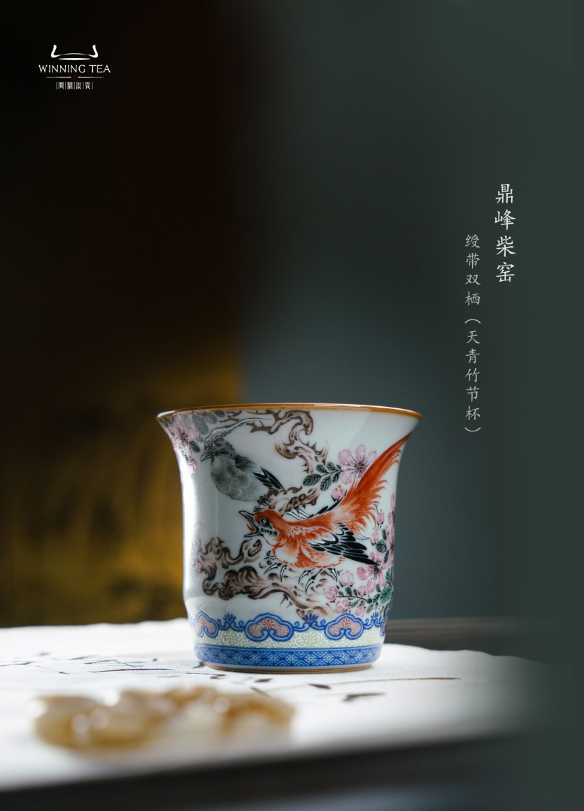问鼎汝瓷鼎峰柴窑天青竹节杯(绶带双栖)