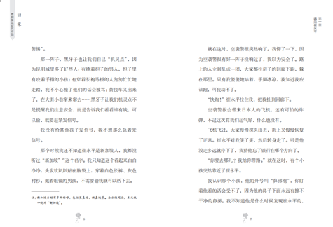 《回家》是第五届青铜葵花小说奖的优秀入围作品,作品以一个男孩的视角,讲述了1939年底到1940年初,为了支援抗战,一群往返在云南滇缅公路上机工们的故事。他们当中有人为了当机工支援抗战虚报年龄,有人不幸牺牲在运输物资的途中,而依靠着;为前线送去战略物资,支援祖国抗战的共同信念,大家一路上克服了各种难以想象的困难:恶劣的天气、难行的山路、敌人的破坏和疾病的侵扰