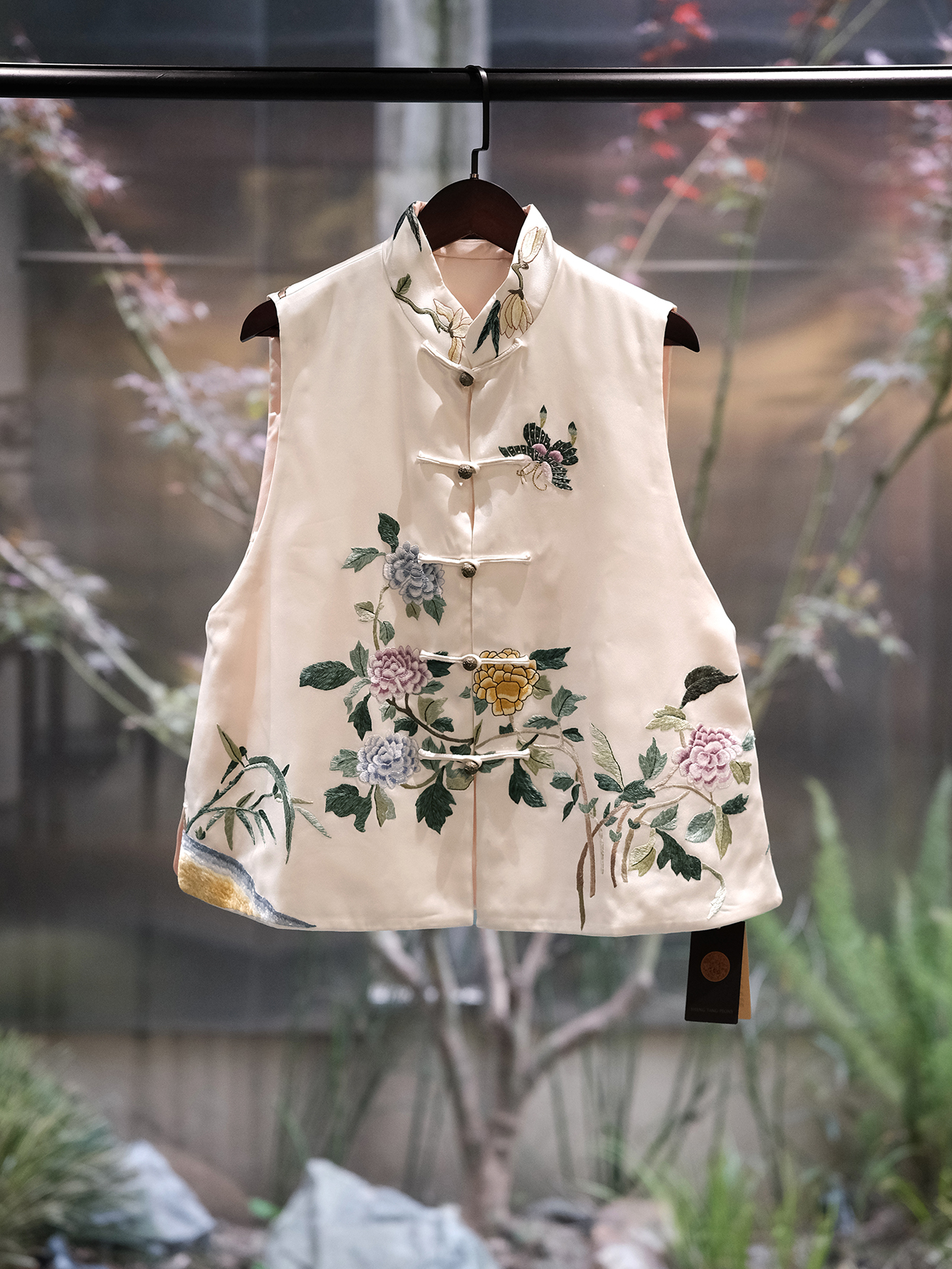 盛唐牡丹大师系列-王小潇 | 重缎真丝手绣薄棉马甲