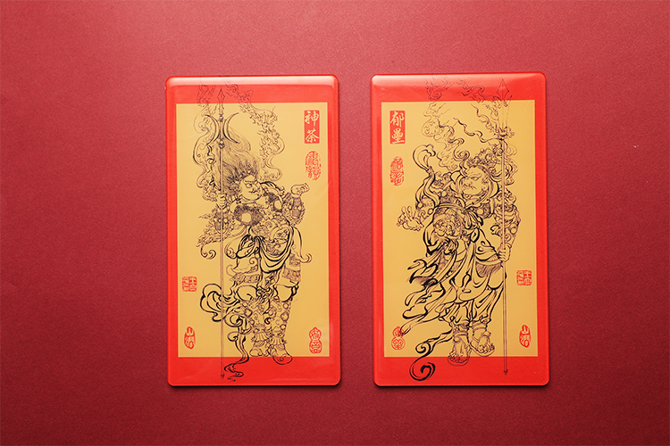 从古至今,贴门神、挂春联都是必不可少的年俗。相传黄帝时以神荼、郁垒二人,画于门户为古代的门神,取其驱鬼辟邪之功。清代富察敦崇《燕京岁时记》:“门神皆甲胄执戈,悬弧佩剑。”