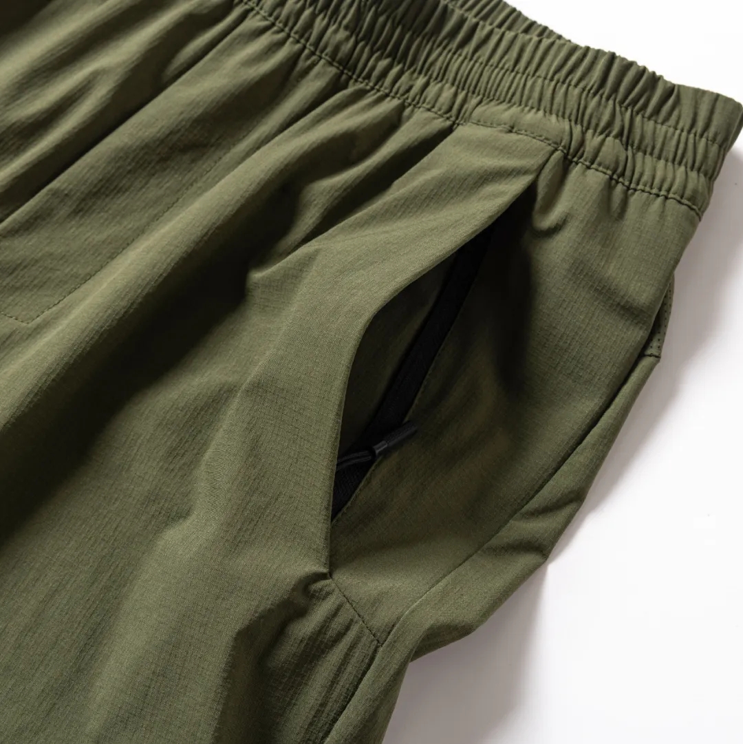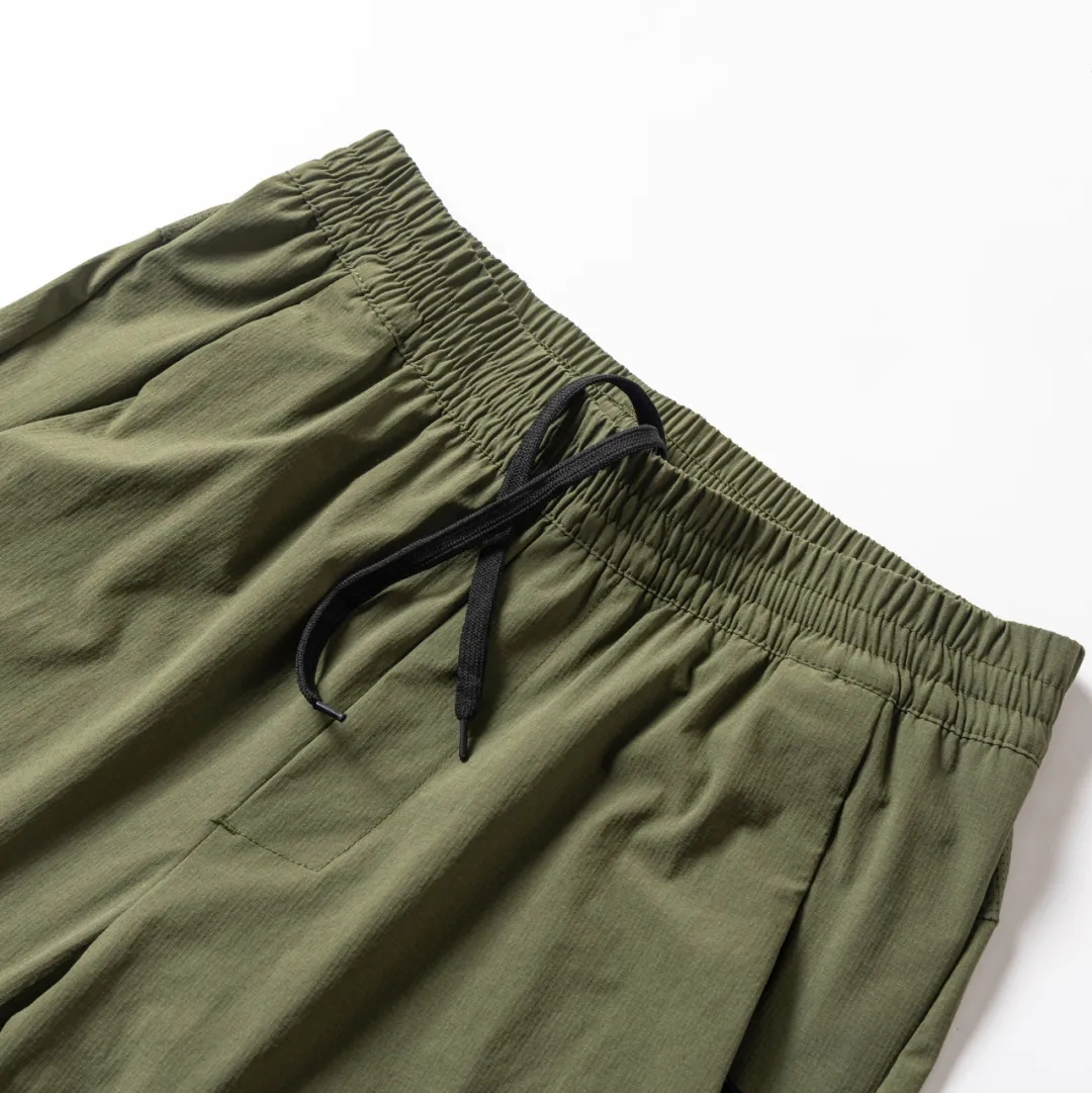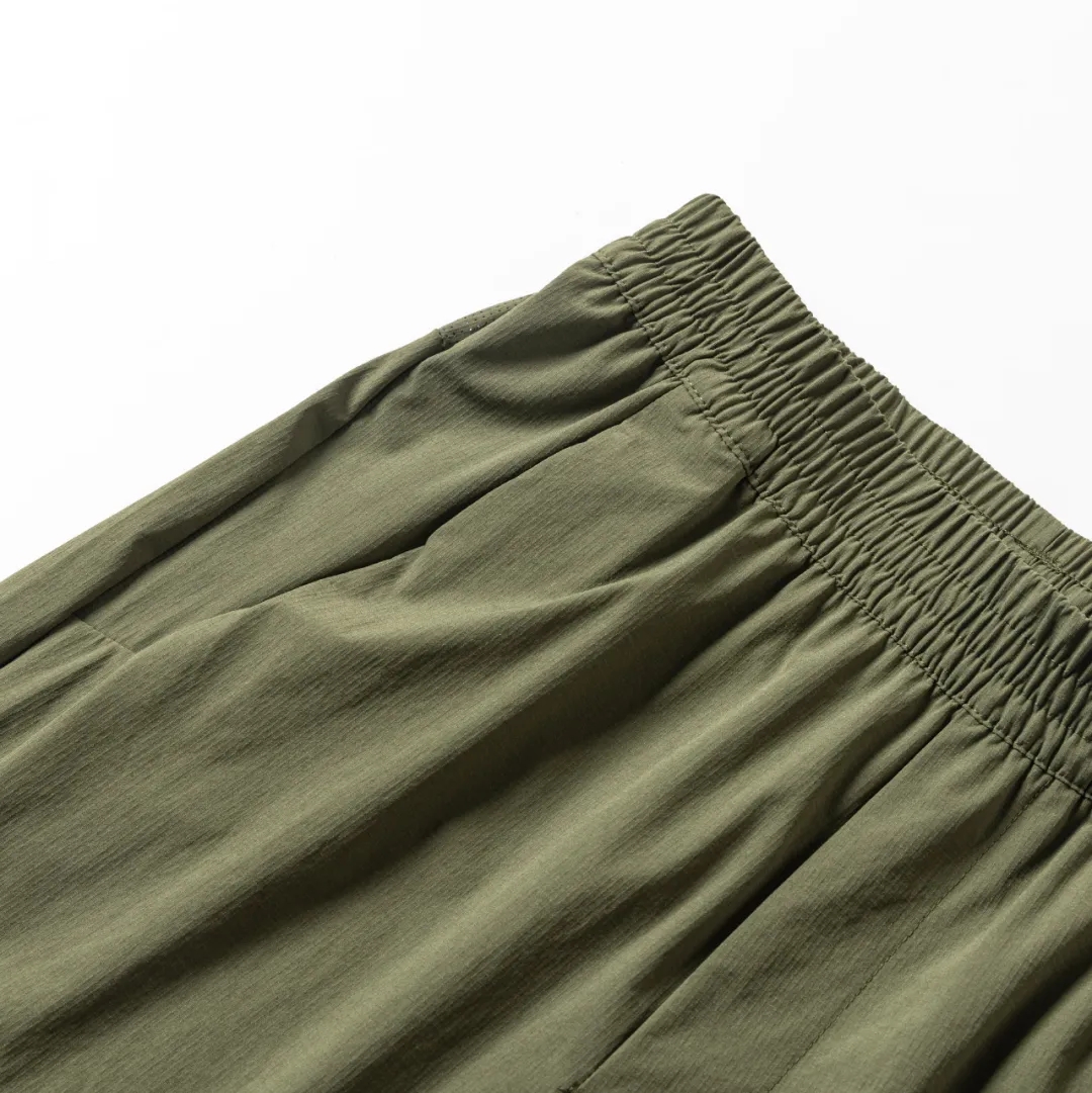 F033130夏季男士薄款3D立裁激光打孔透气速干松紧腰冰丝弹力纯色户外休闲裤